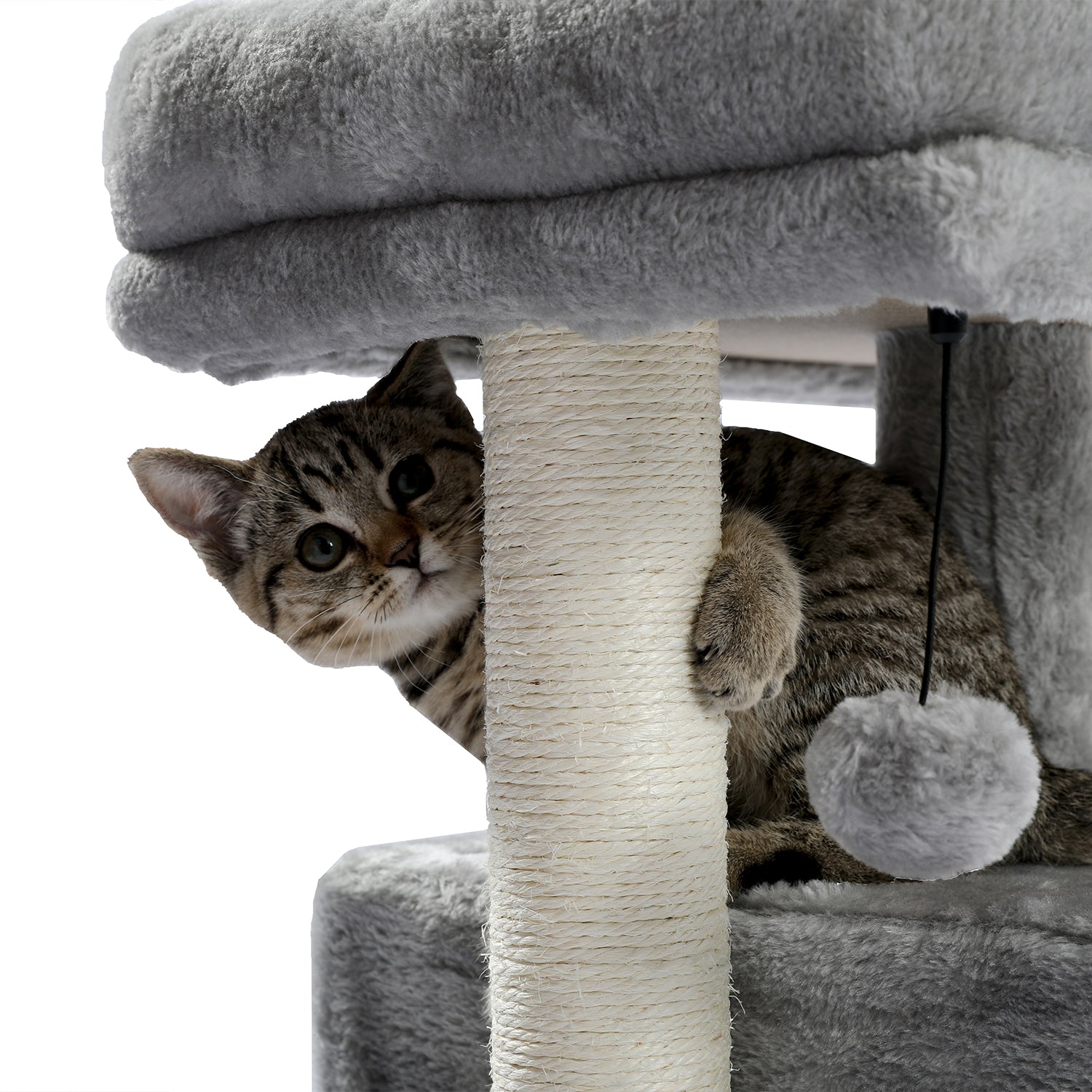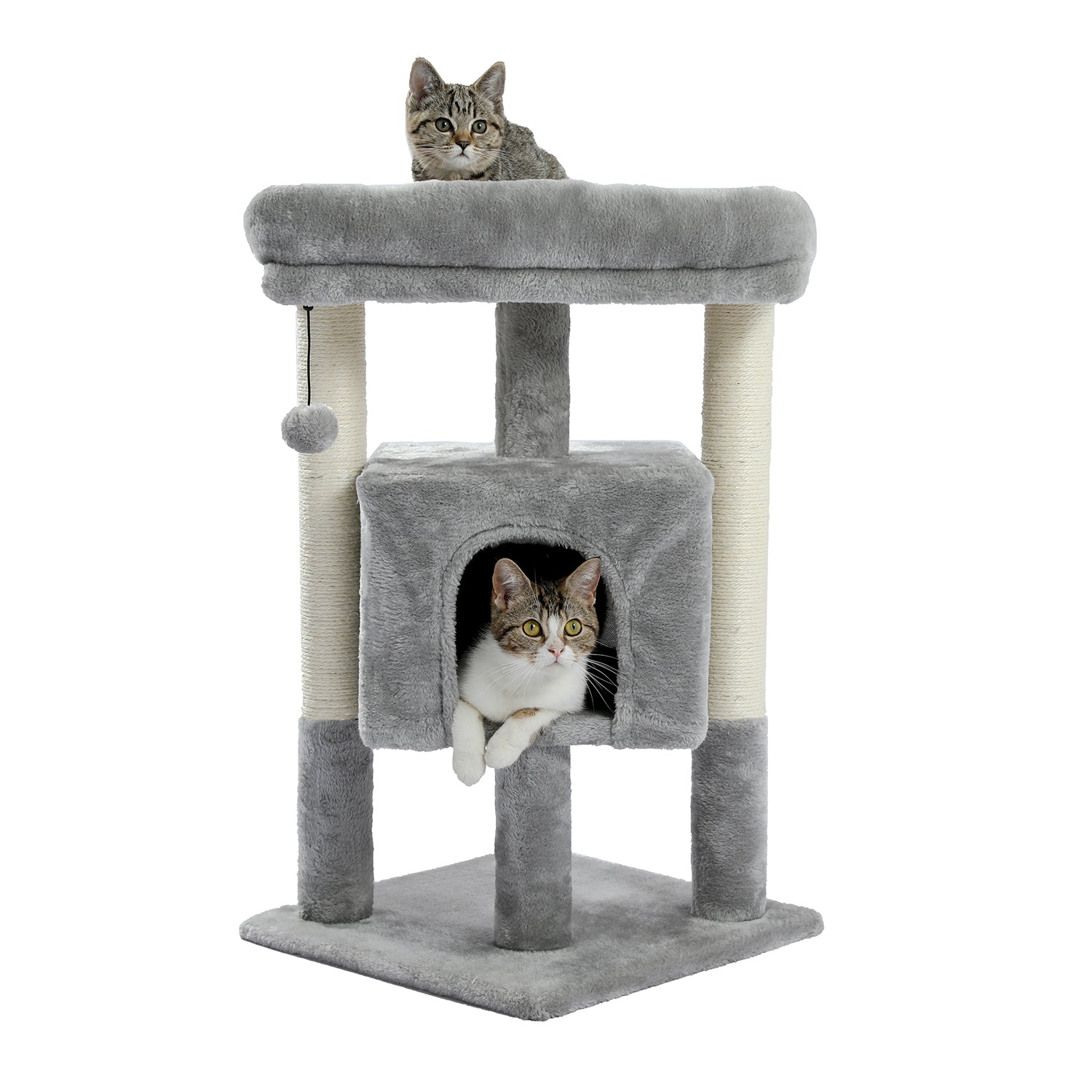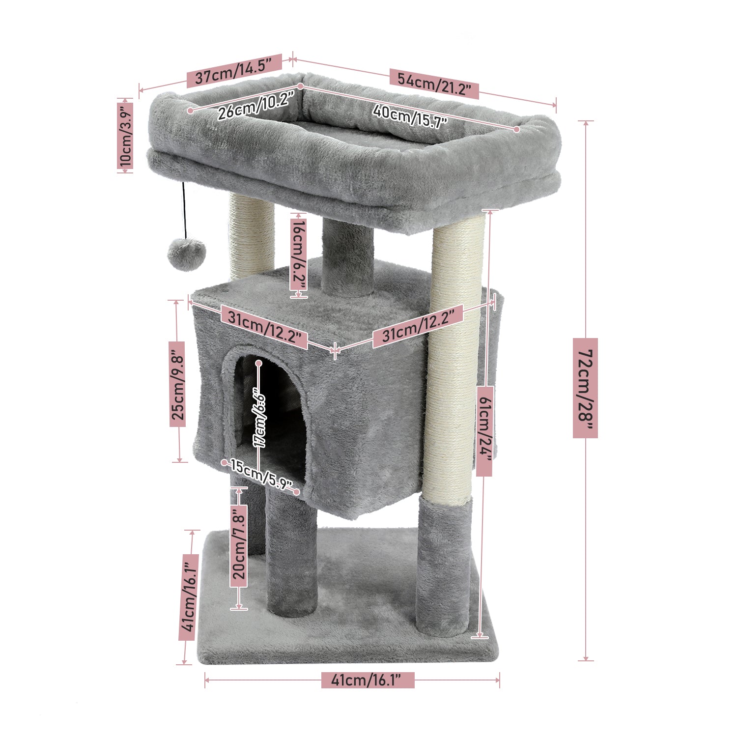 28.4 Inches Small Cat Tree for Indoor Cats Polyester Plush Cat Tower with Beige Condos, Spacious Perch,Scratching Sisal Posts Plush-covered posts and Replaceable Dangling Balls Gray
