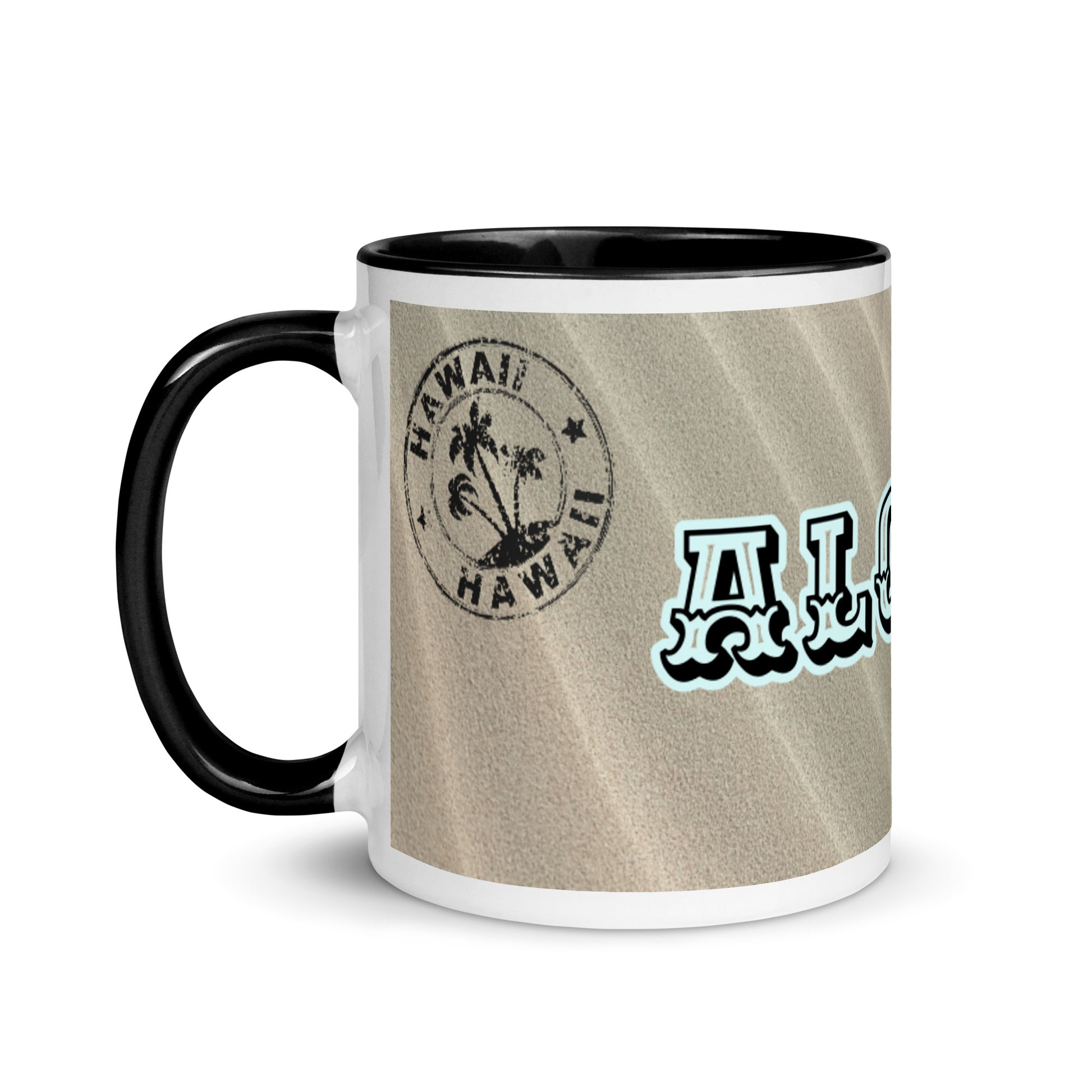 ALOHA Mug with HAWAIIN STAMP DESIGN & BLACK Color Inside