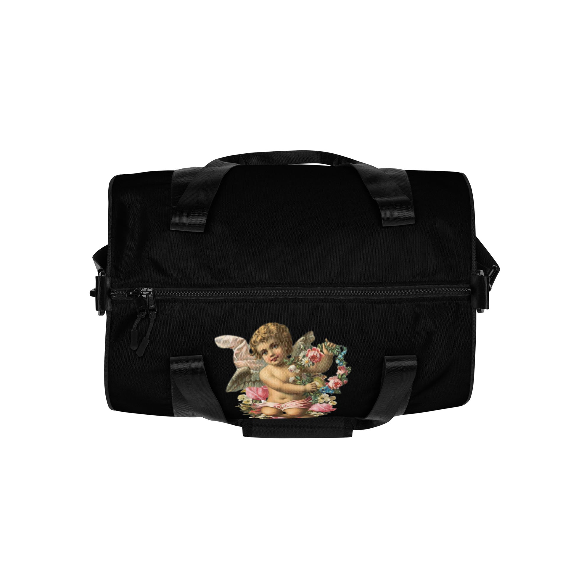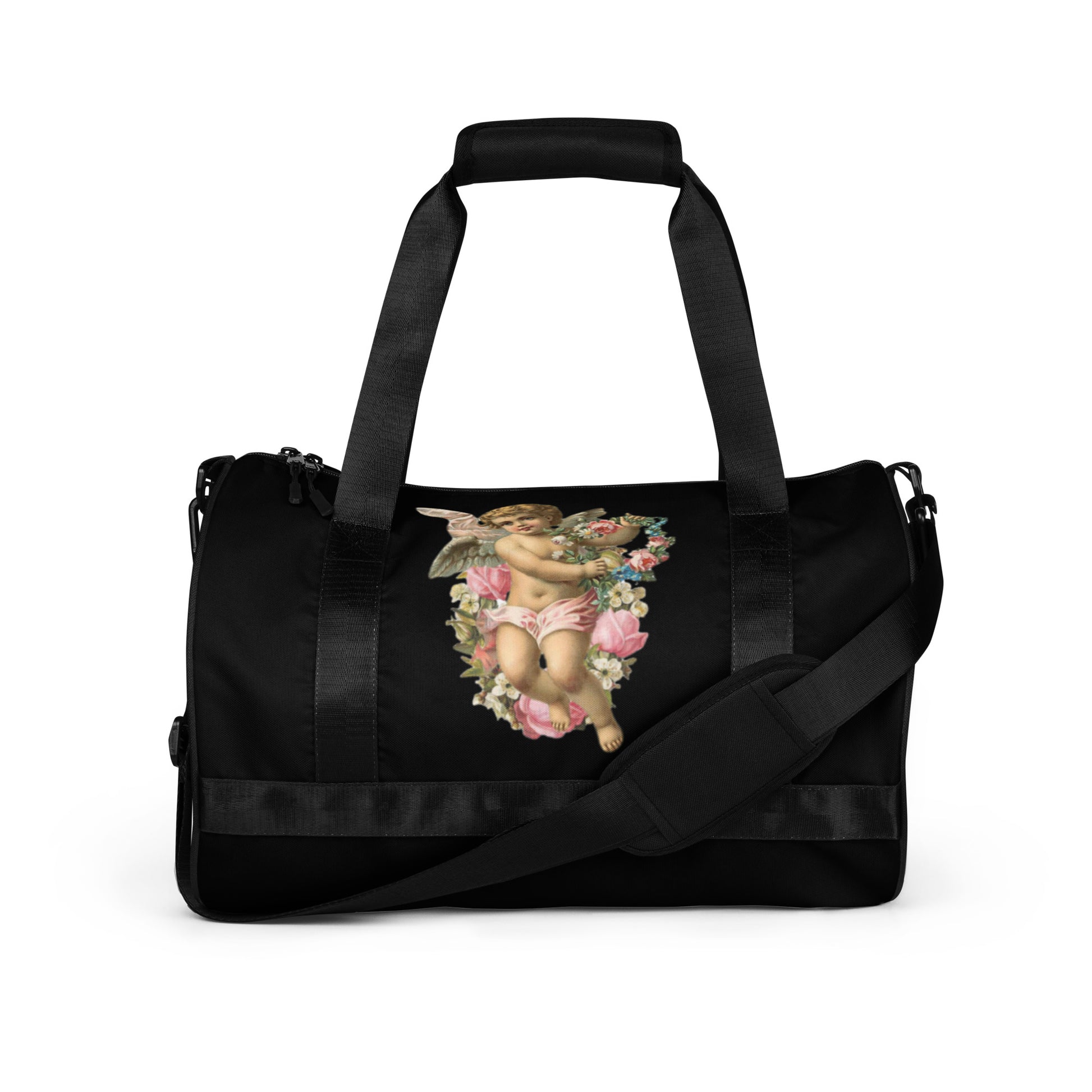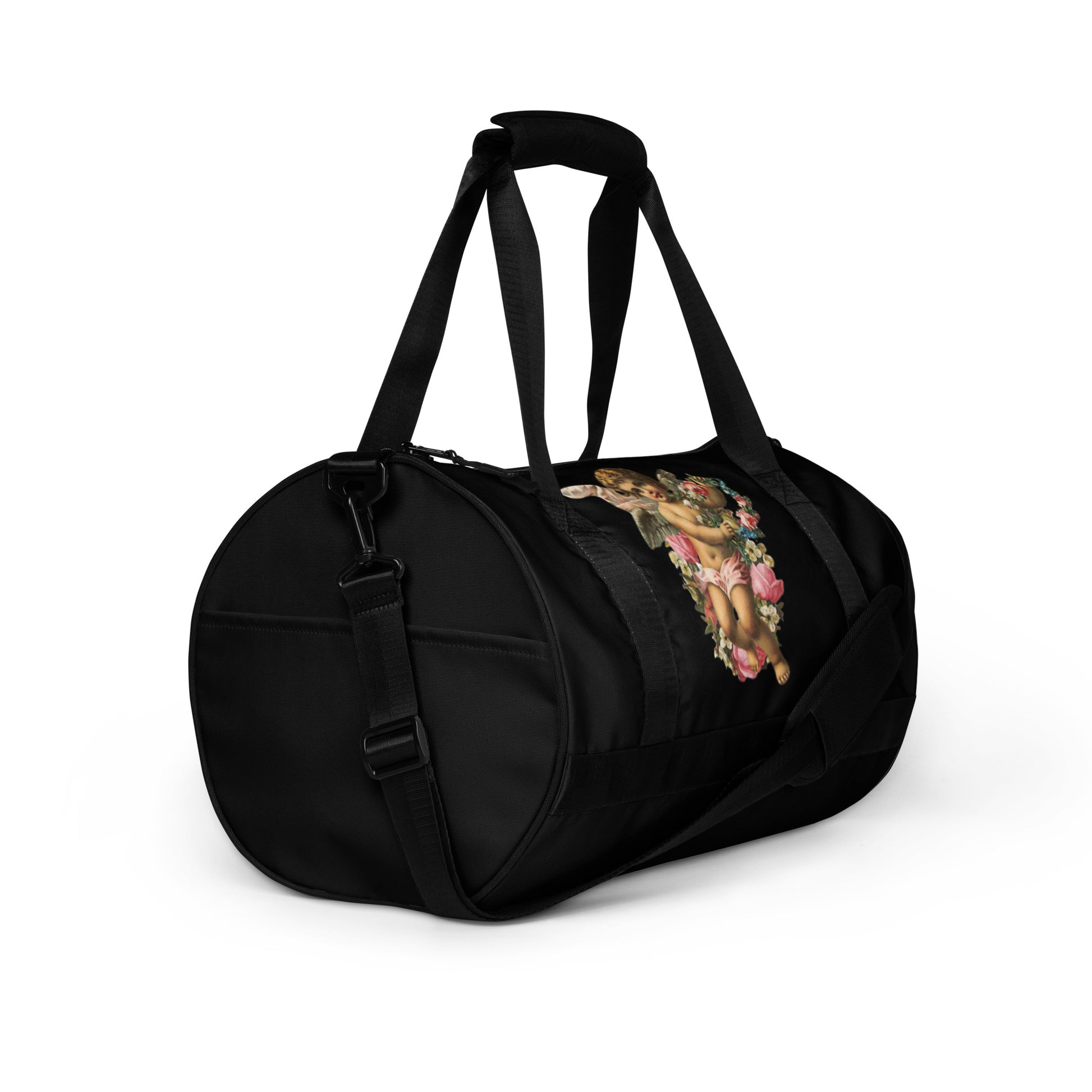 Ready to get your fitness on? Add some punch to pumping iron with this all-over print gym bag. Made from 100% polyester and sturdy, water-resistant fabric, this bag is fun meets function. And it’s got pockets!