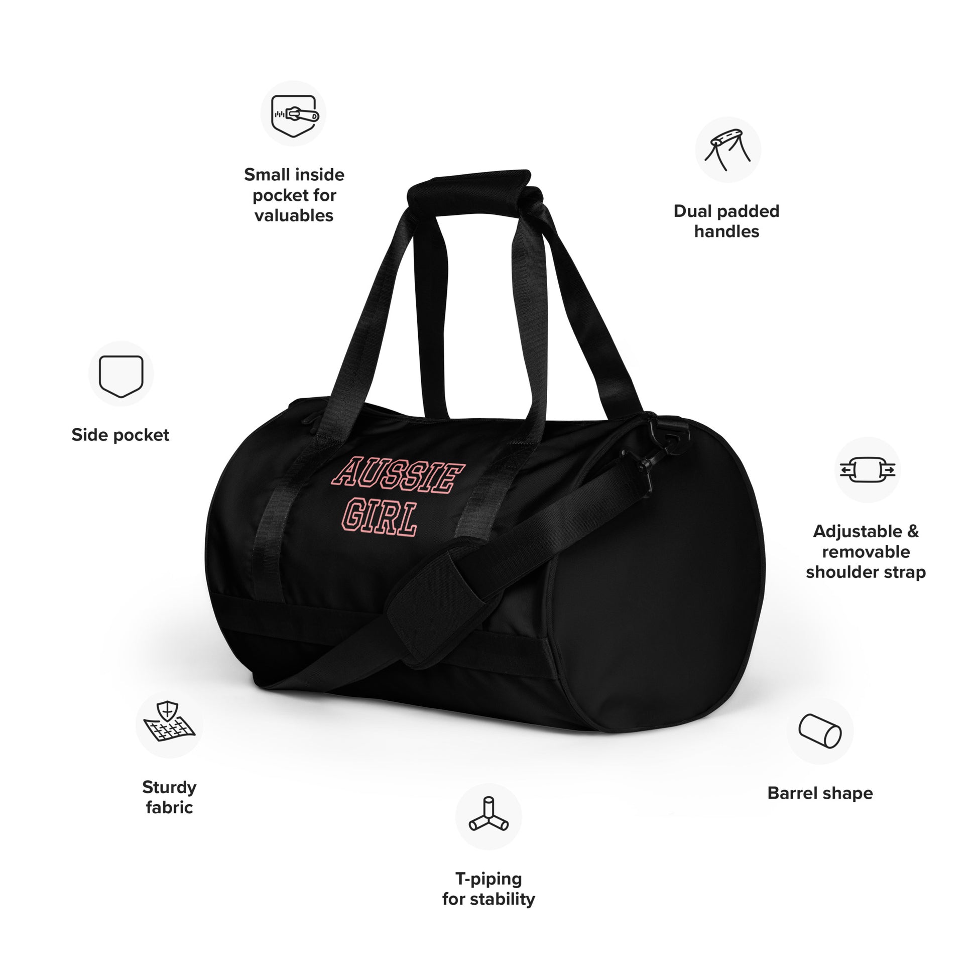 AUSSIE GIRL ESSENTIALS IN PINK WRITING--TRAVEL OR gym bag