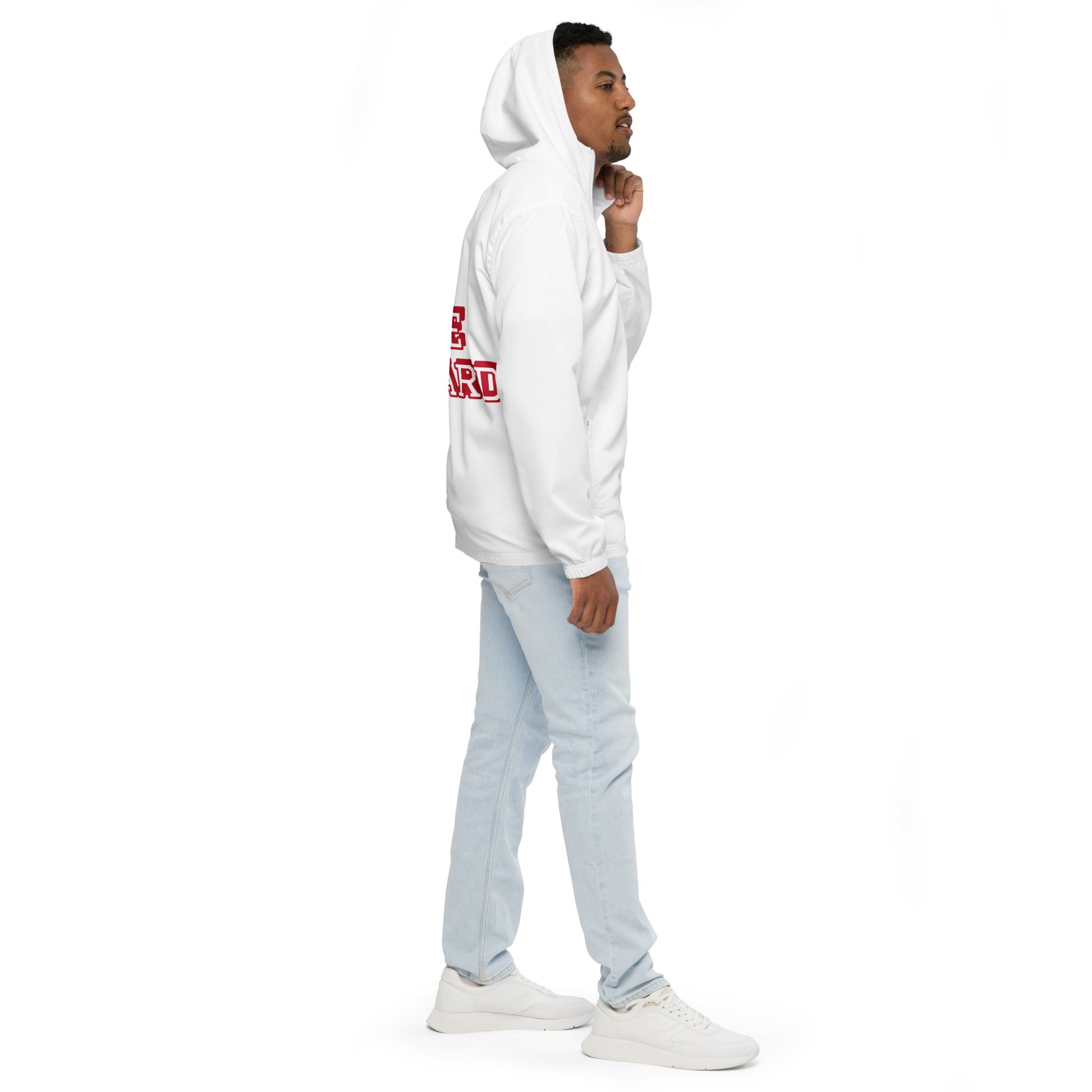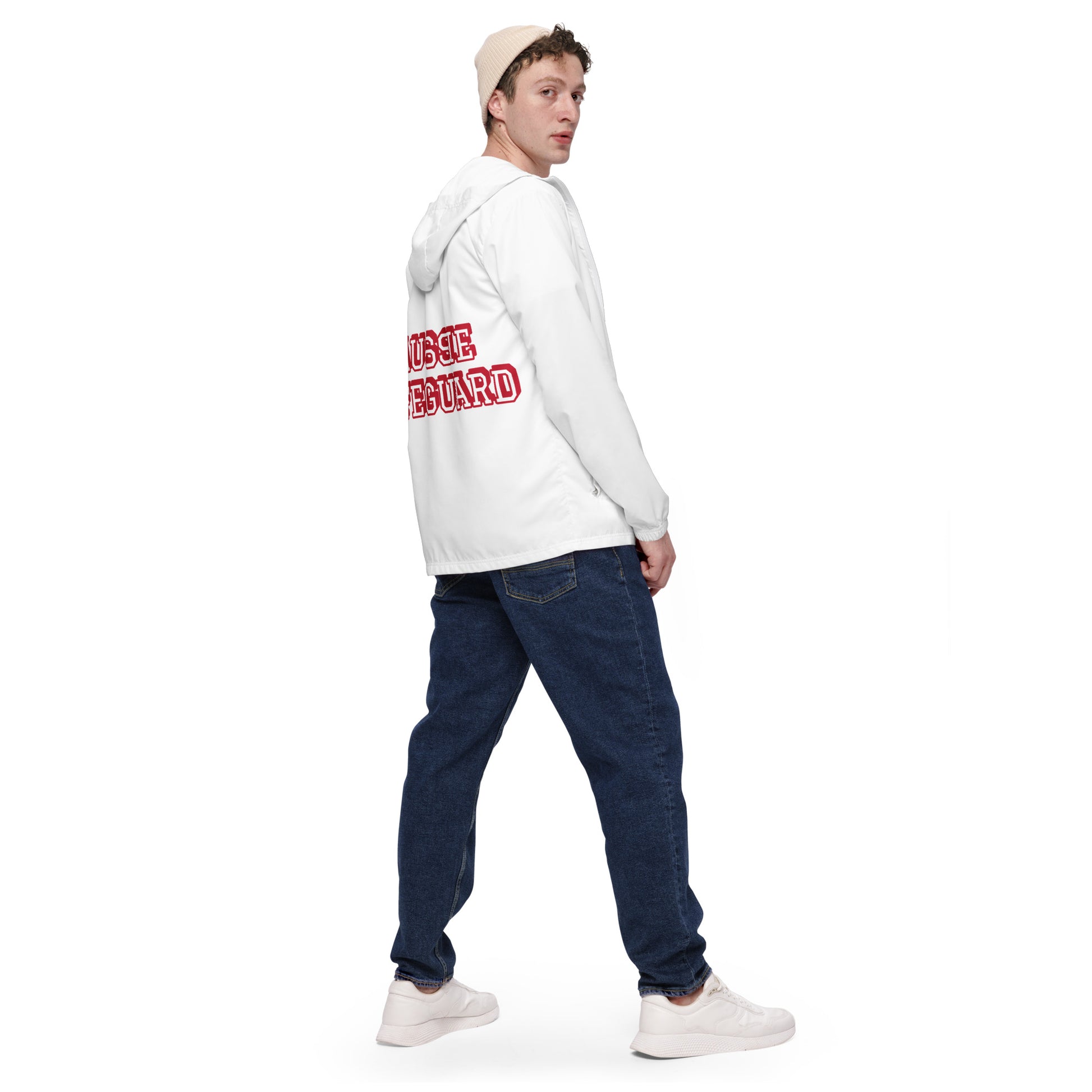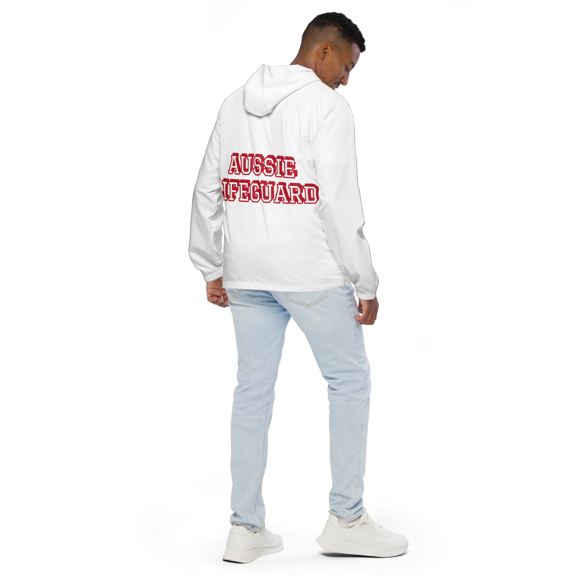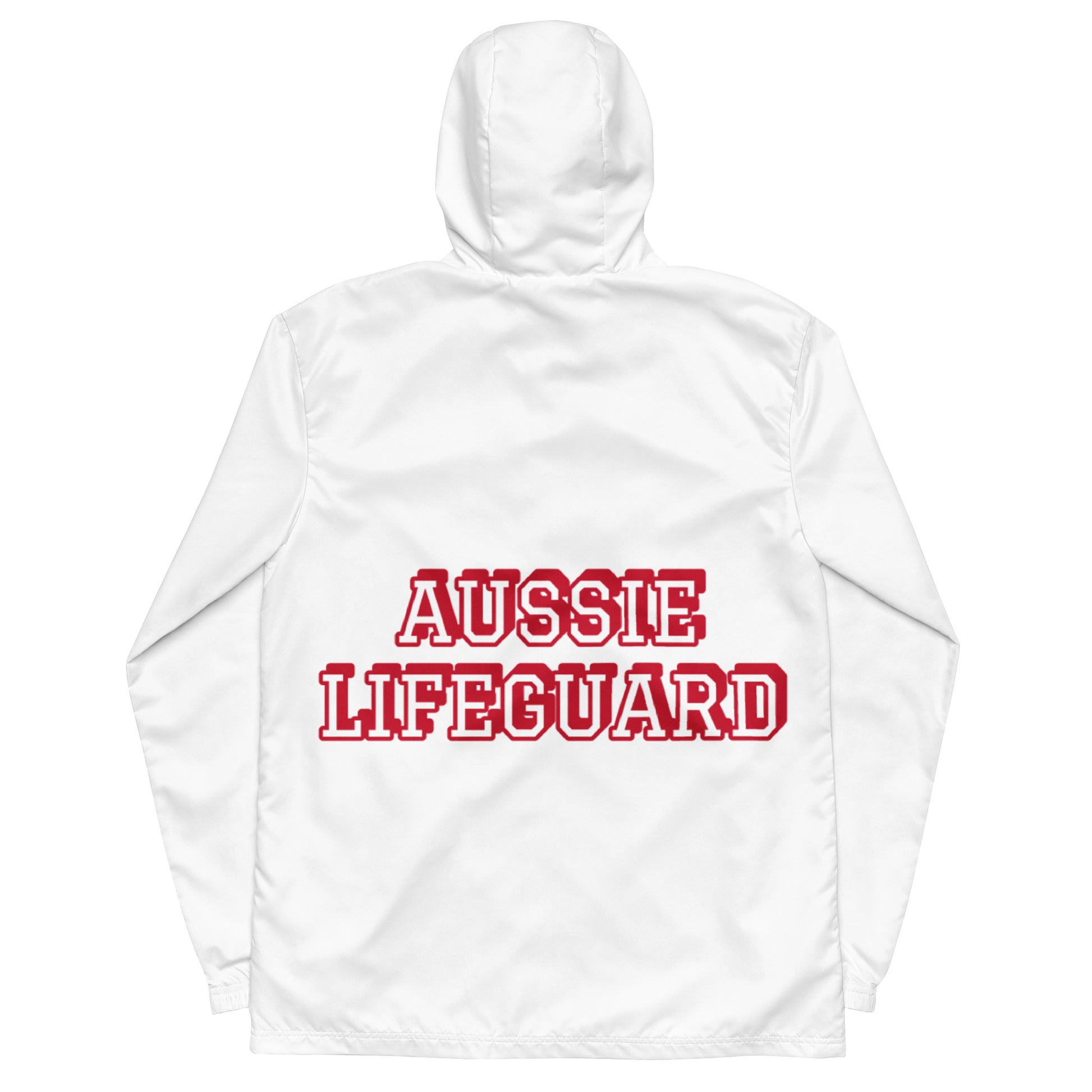 AUSSIE LIFEGUARD ---WHITE JACKET WITH RED TRIM WORDS---Men’s windbreaker