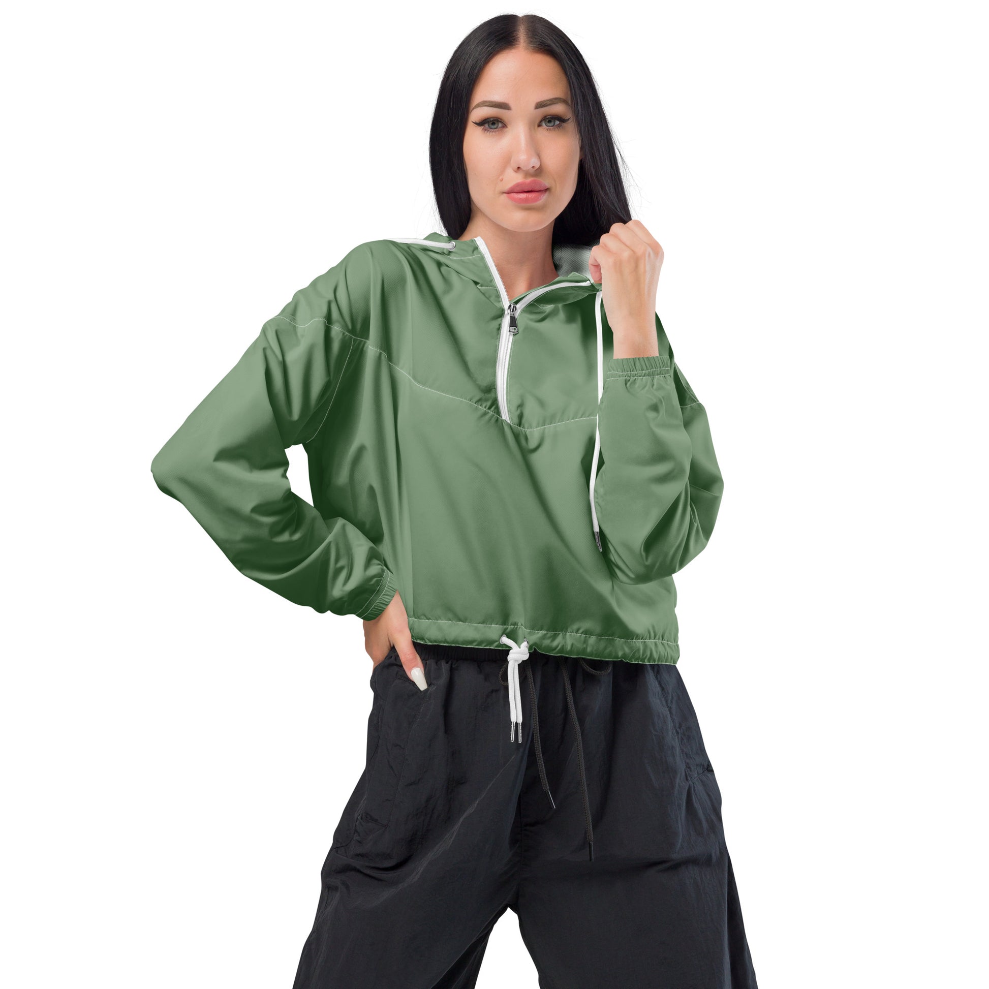 Hike in style without the rain getting in the way—this cropped windbreaker is lightweight, waterproof, and suitable for every kind of adventure. Features include side-slit pockets, breathable mesh lining, and adjustable drawcords on the hood and waist to support all your stylish outdoor looks.