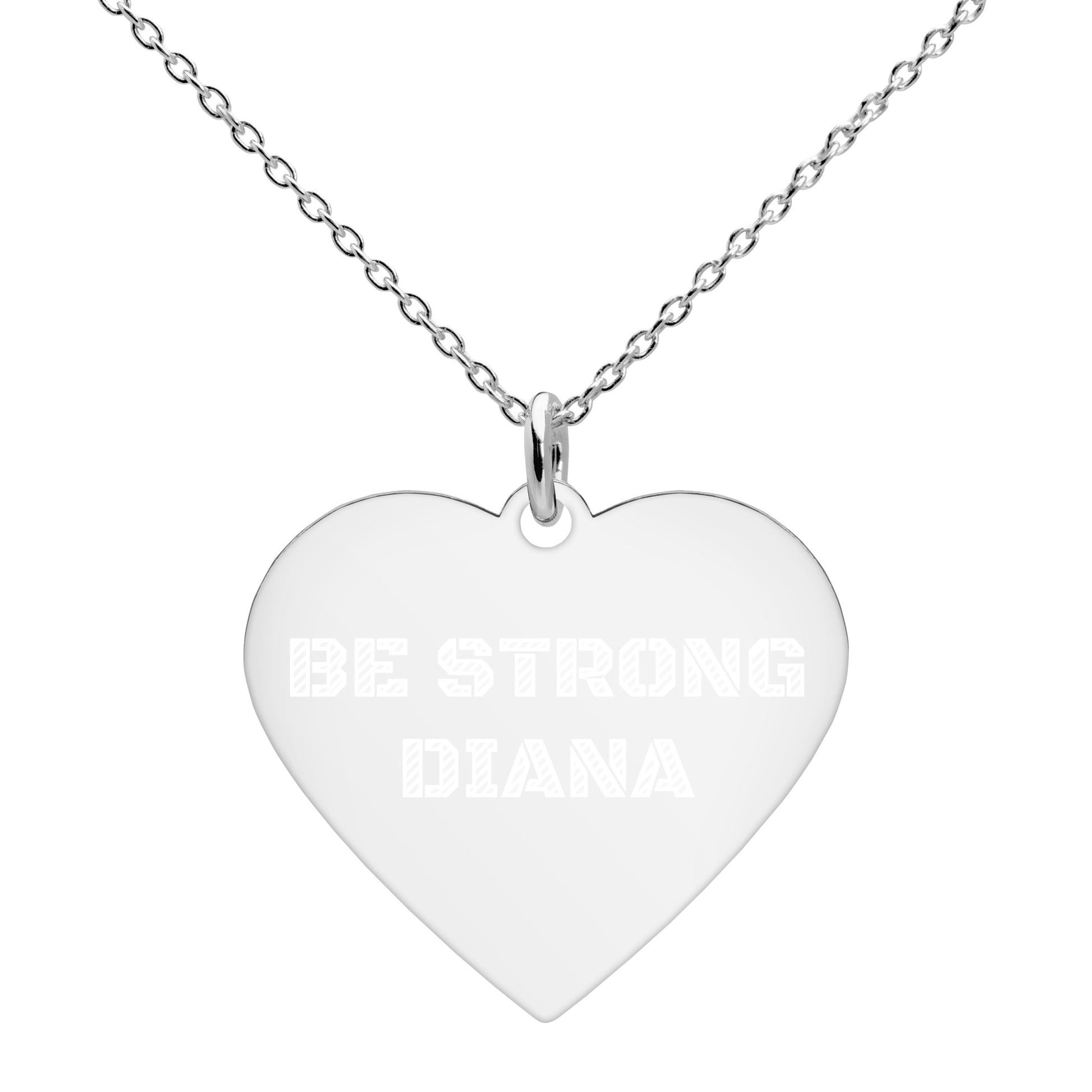 BE STRONG DIANA Engraved Silver Heart Necklace