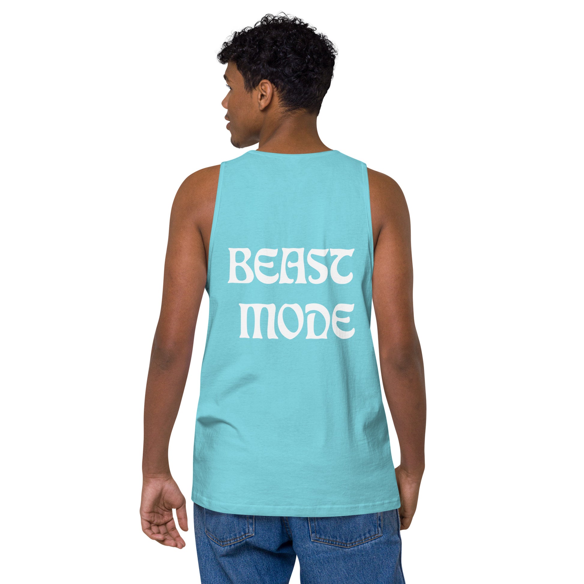BEAST MODE - BABY BLUE TANK TOP MUSCLE SHIRT WITH WHITE WRITING Men’s premium tank top