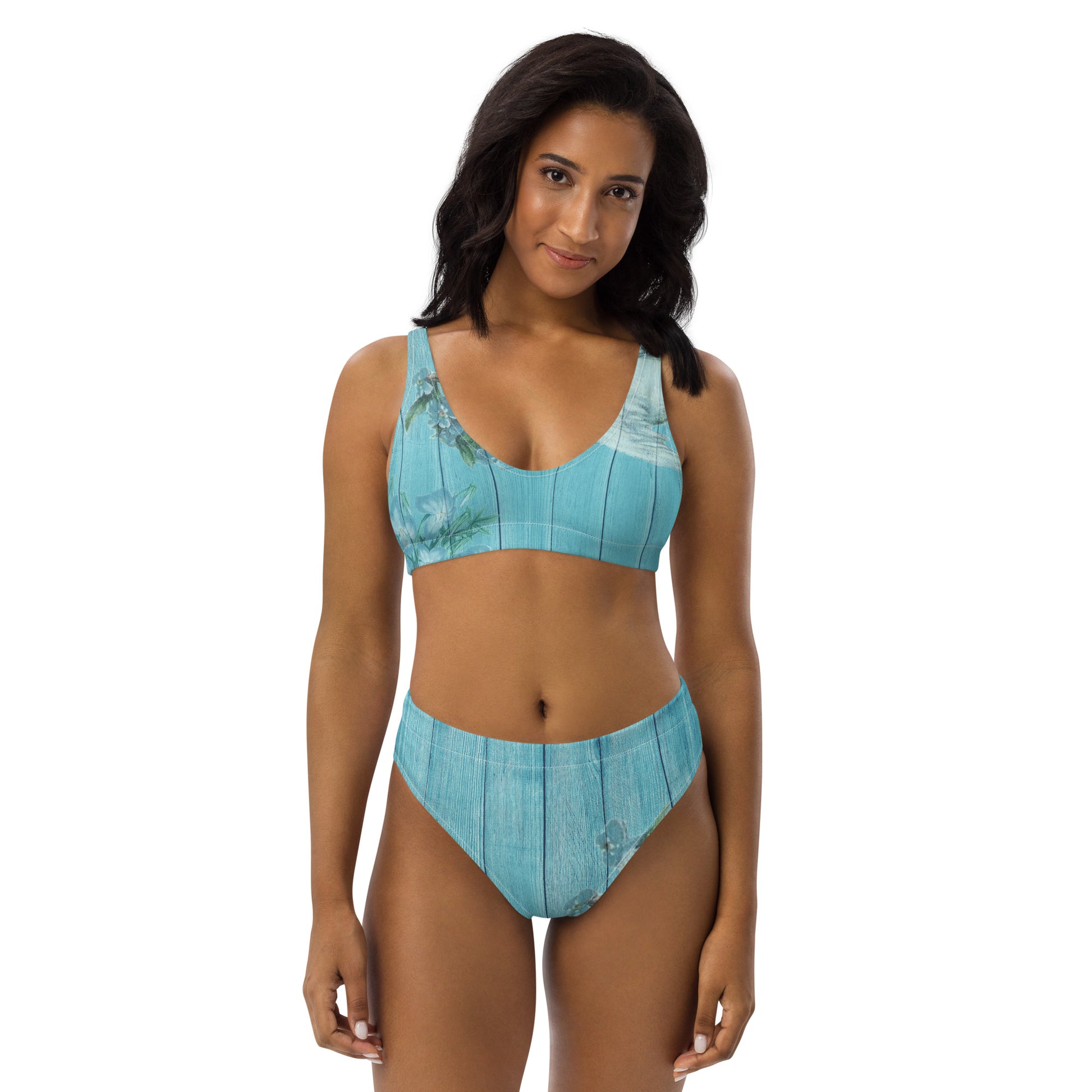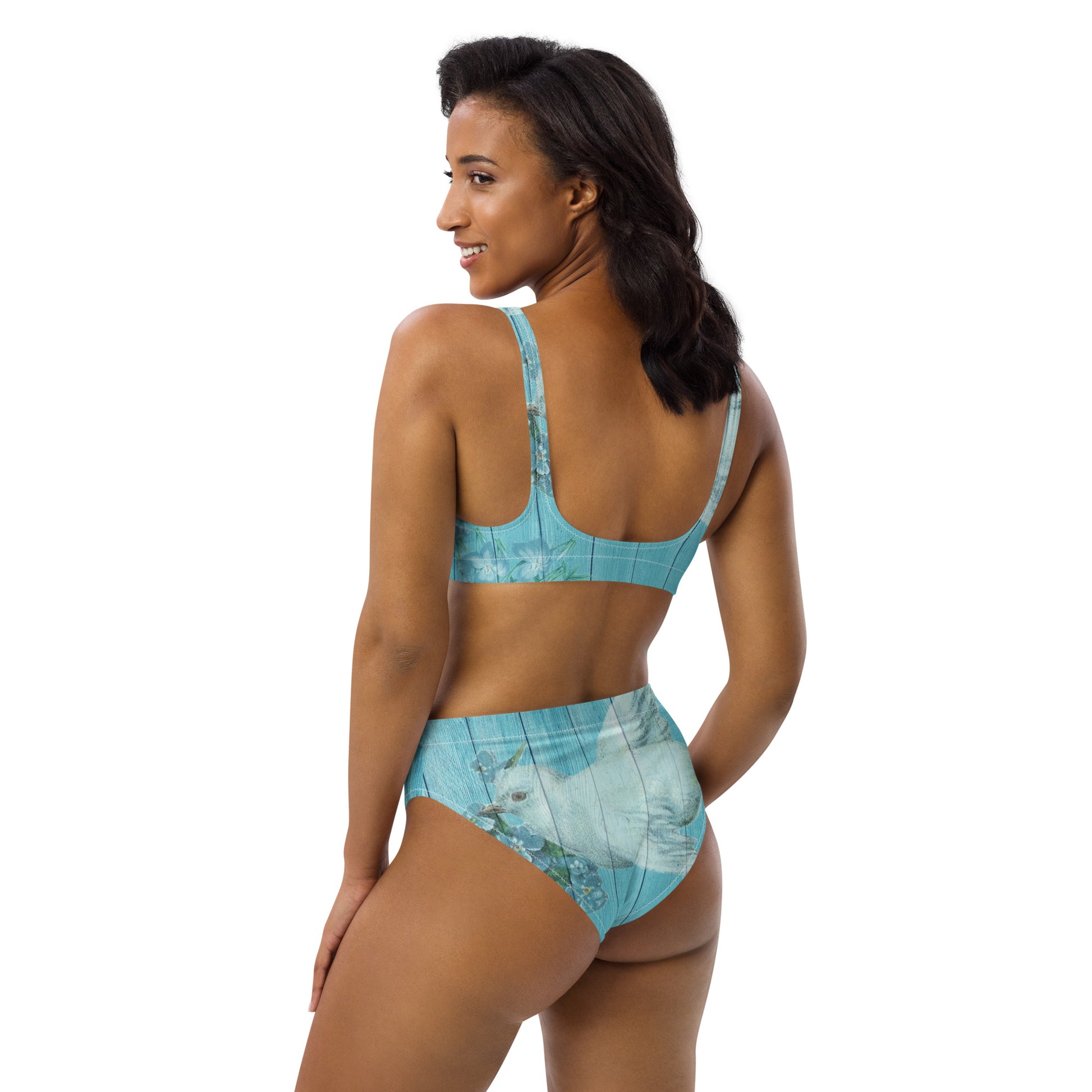 BIRD BIKINI- DOVE ON A BLUE BACKGROUND Recycled high-waisted bikini
