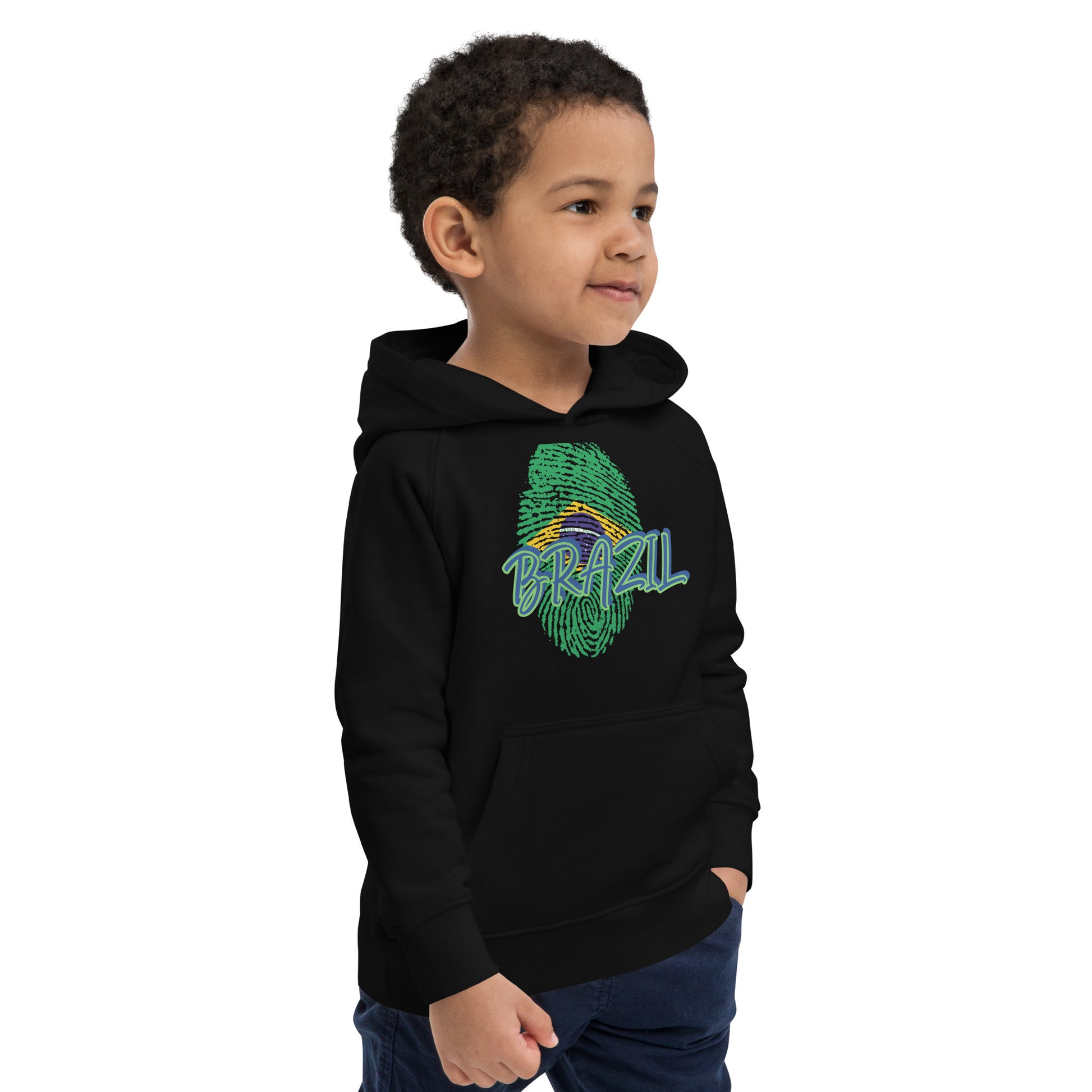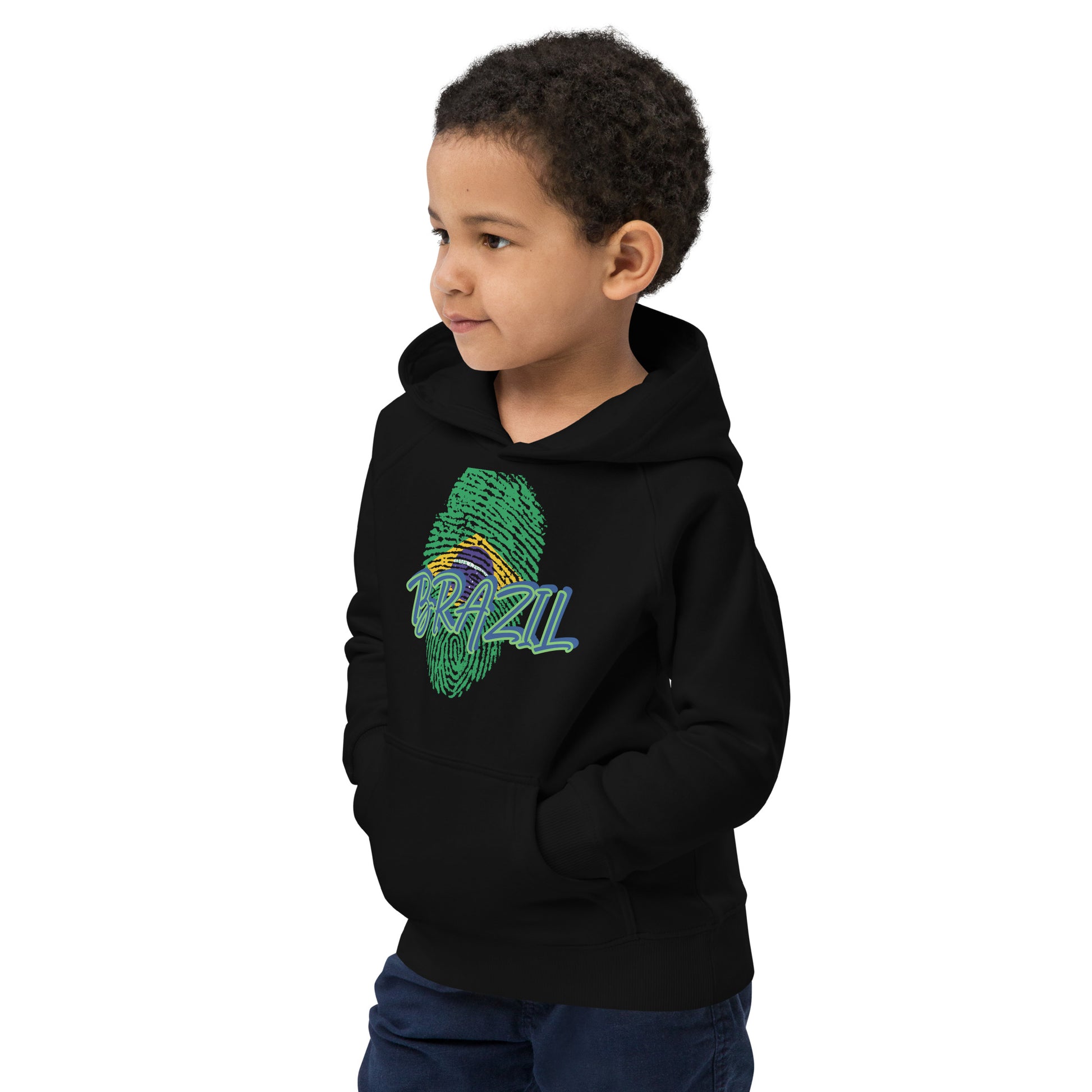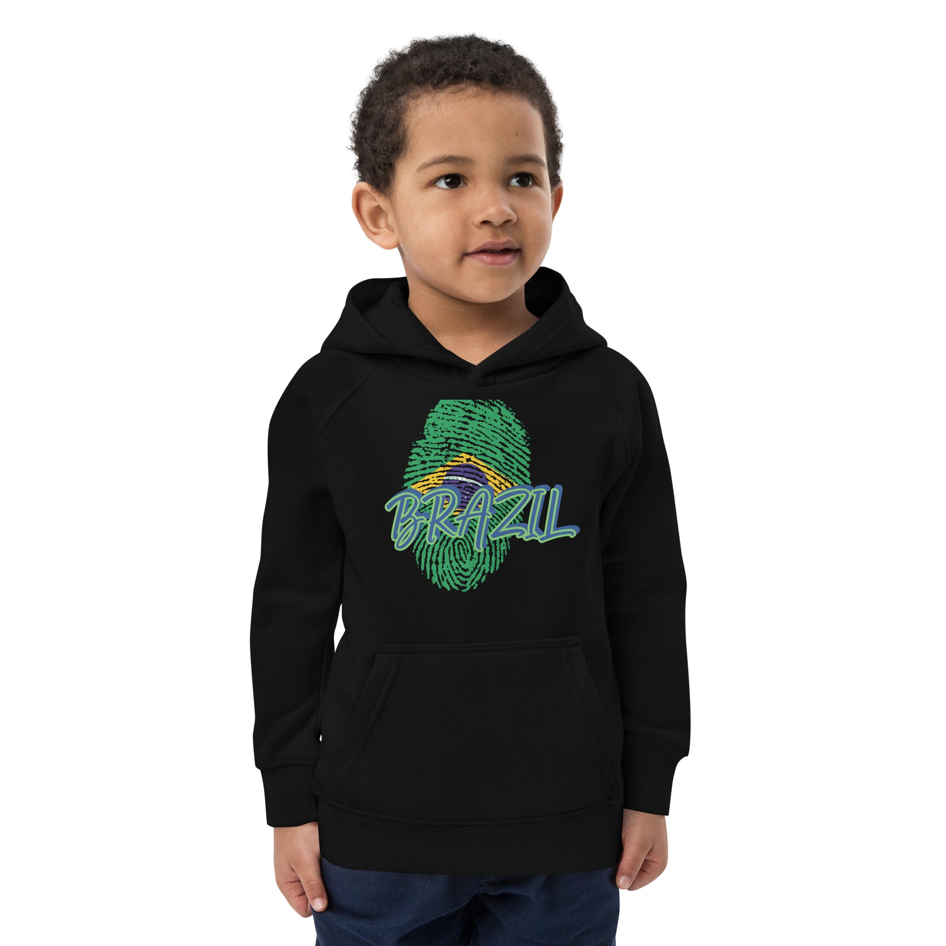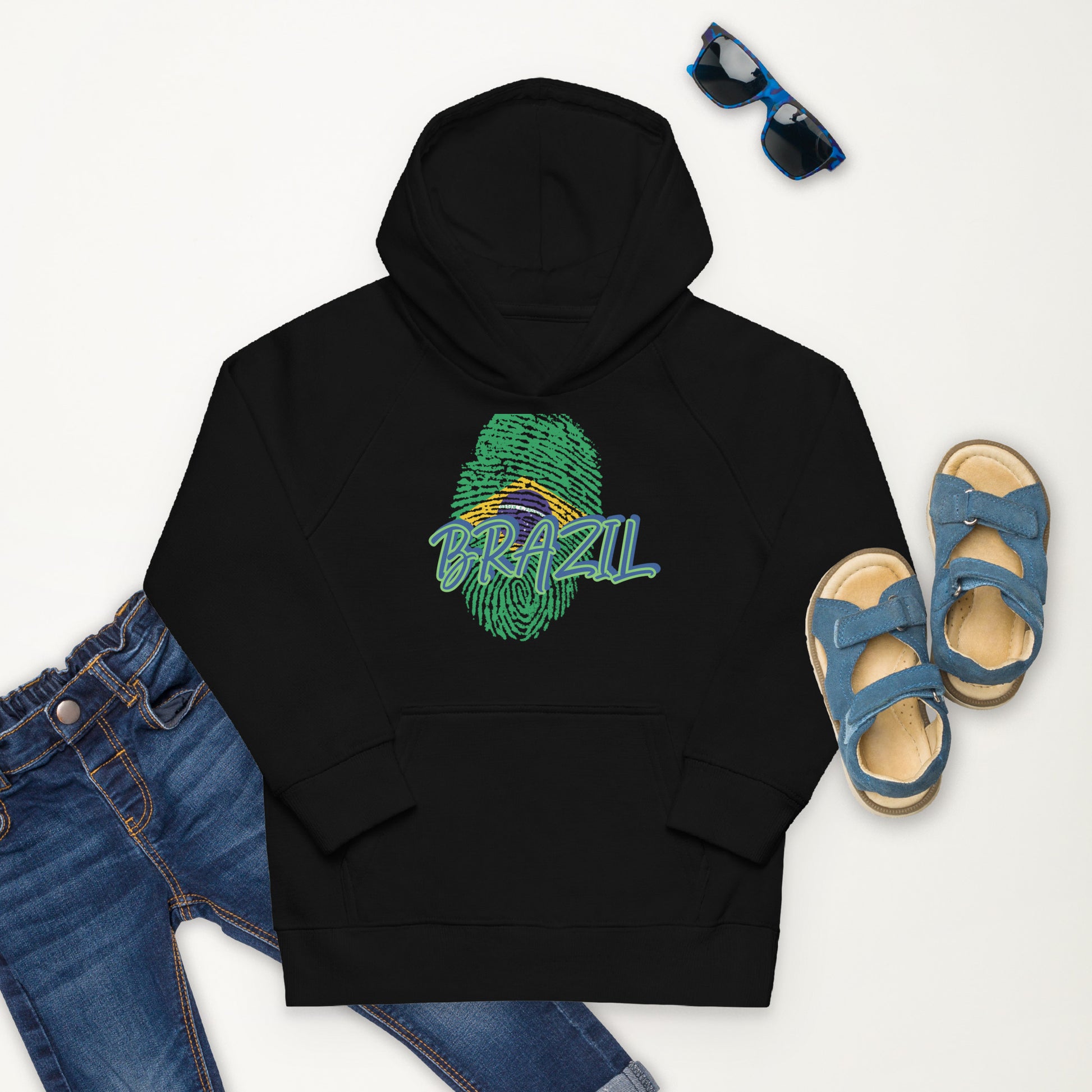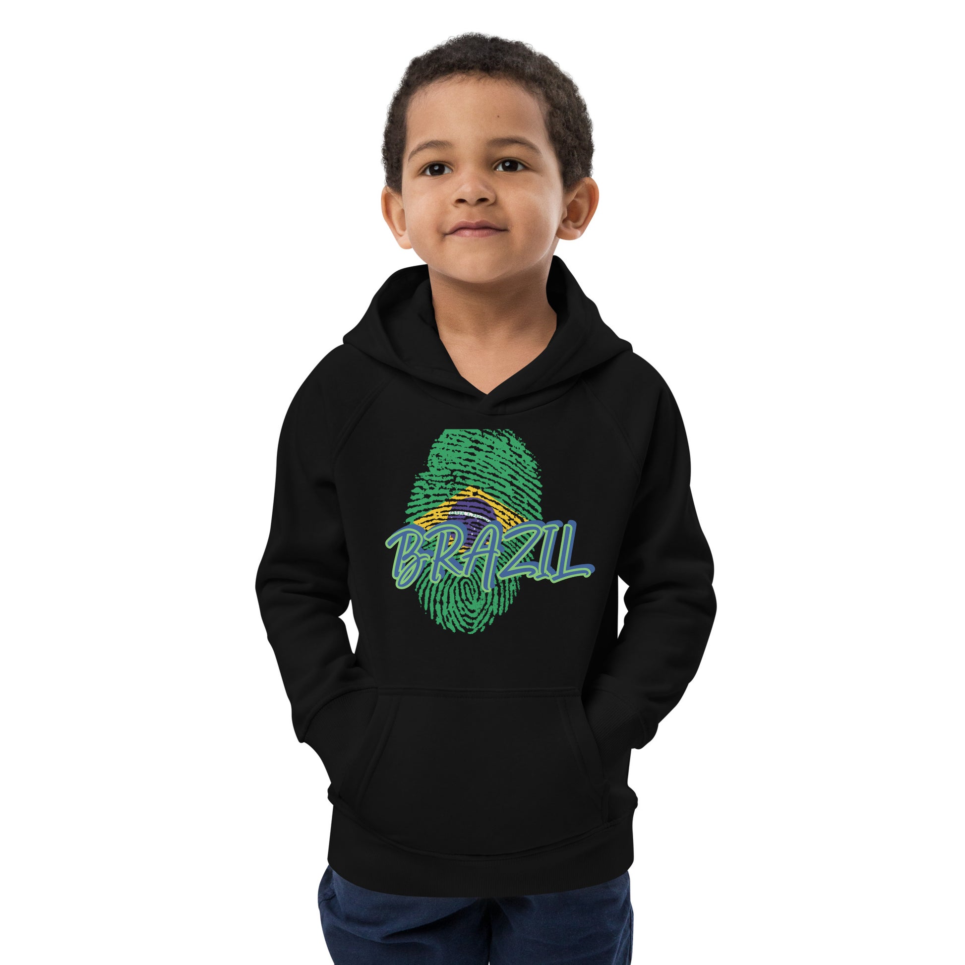 BRAZIL BOUTIQUE -BRAZIL THEME Kids eco hoodie IN BLACK