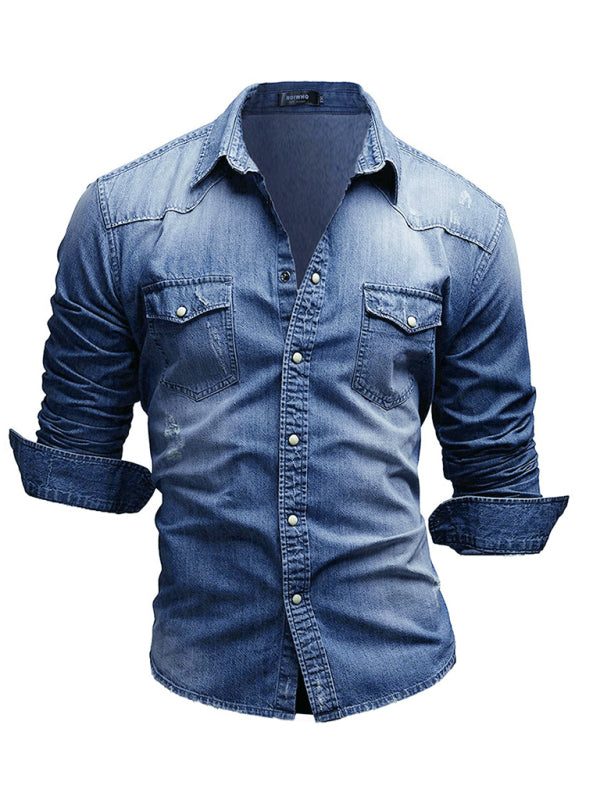 Casual Men's Double Pocket Men's Casual Long Sleeve Denim Shirt Jacket