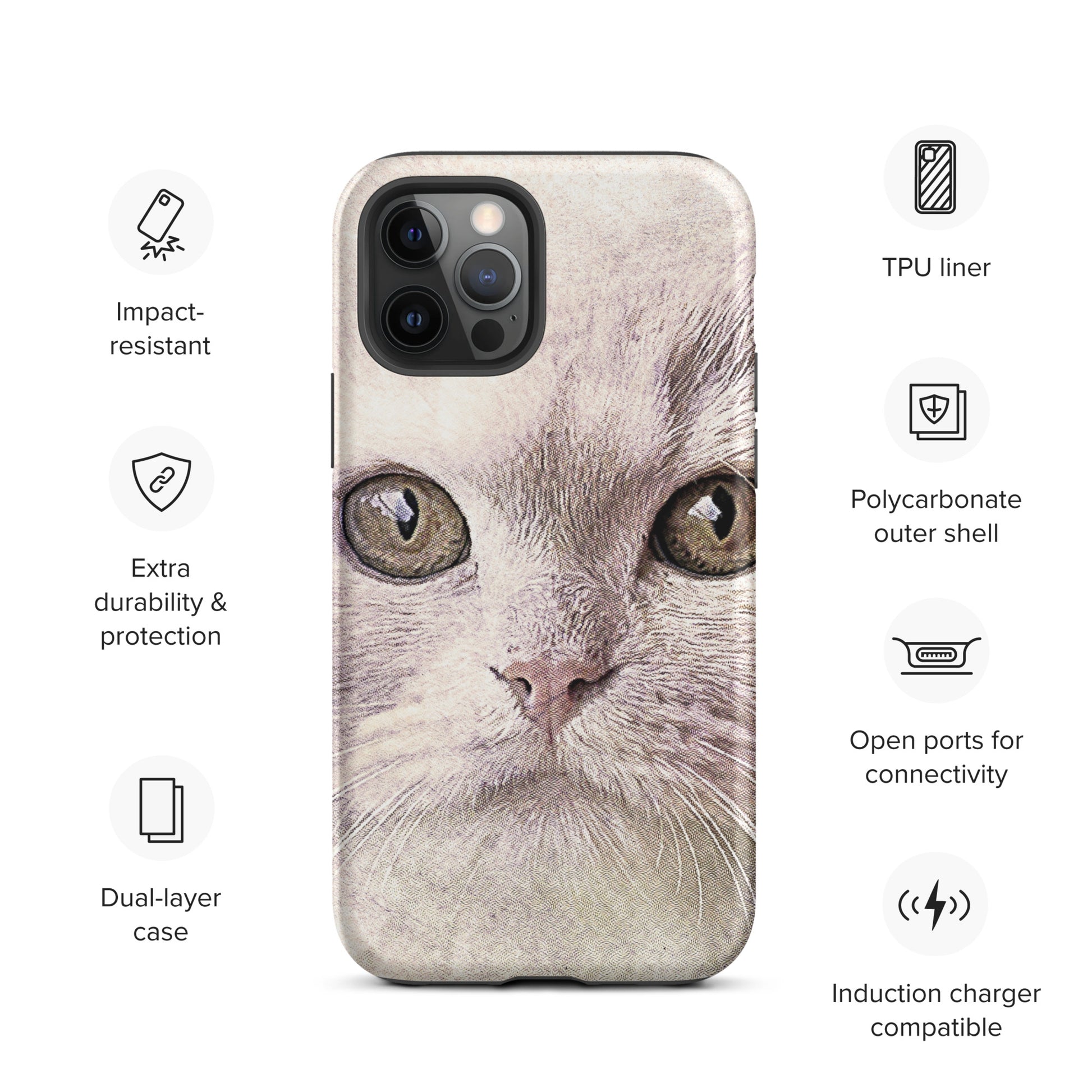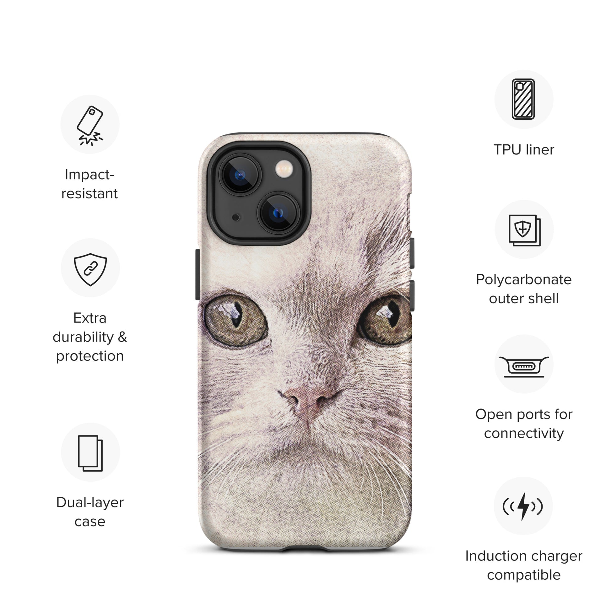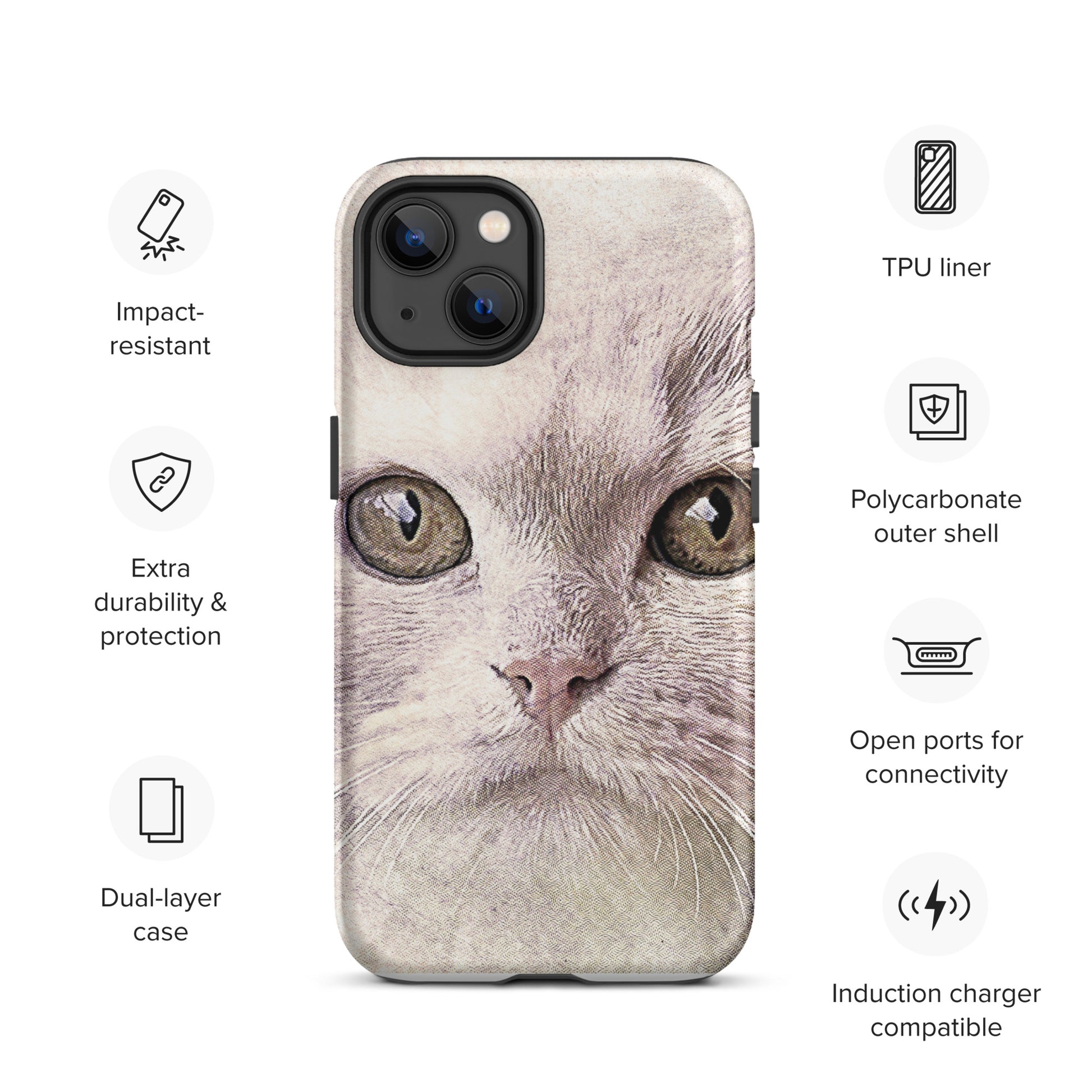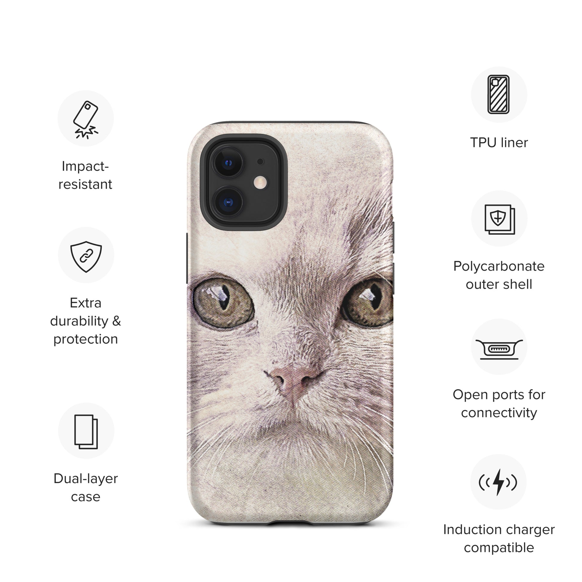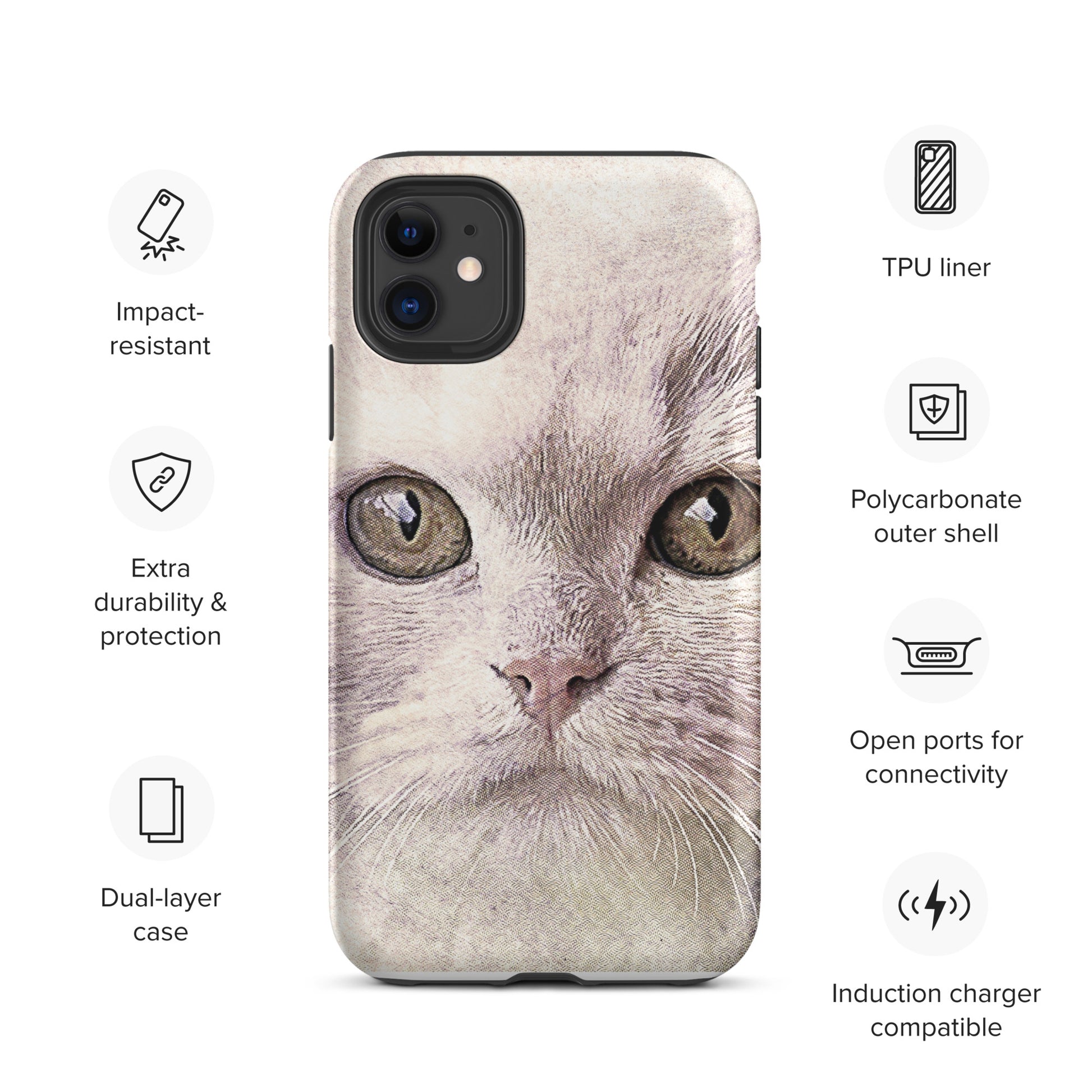 CAT BOUTIQUE-WHITE FLUFFY FACE CAT Tough iPhone case