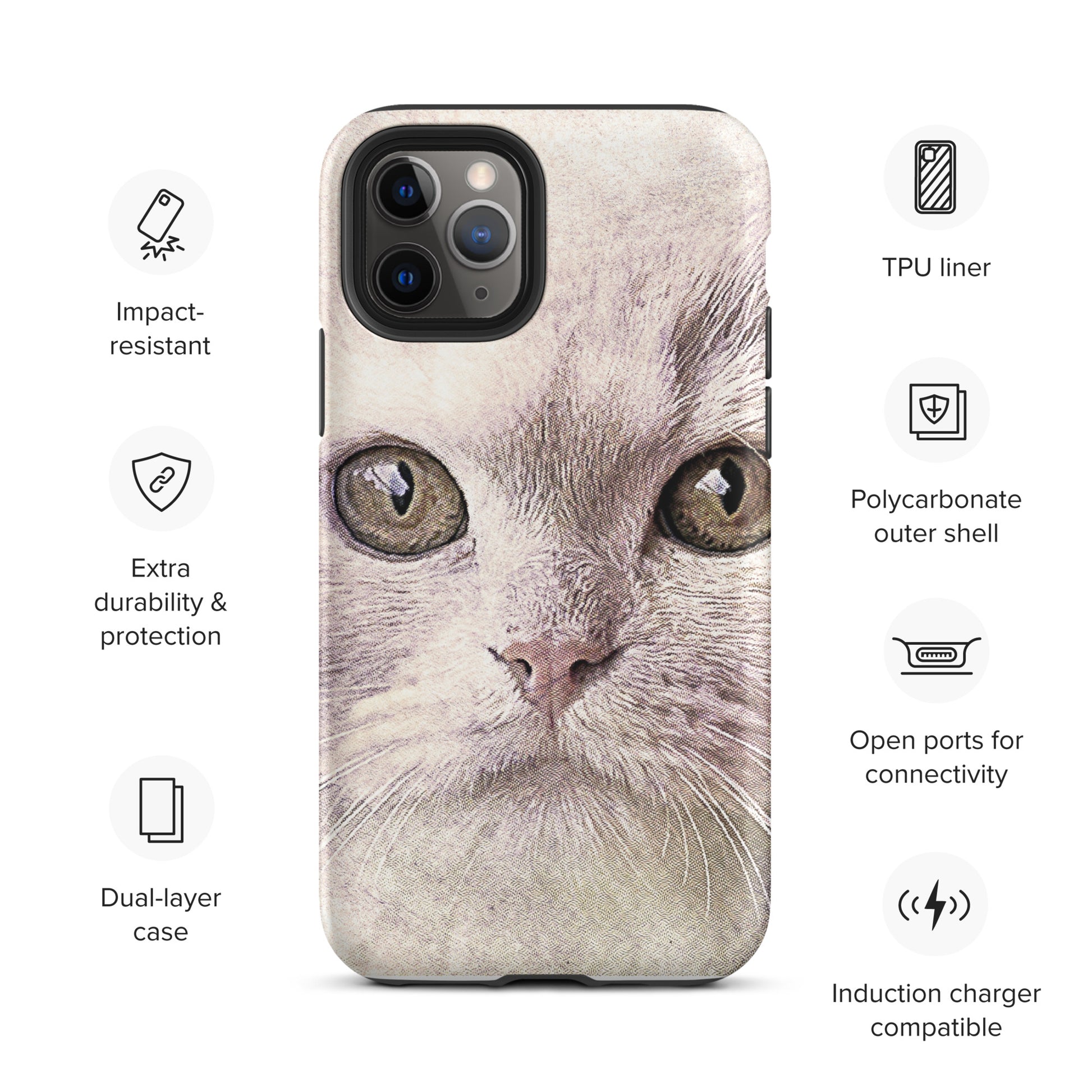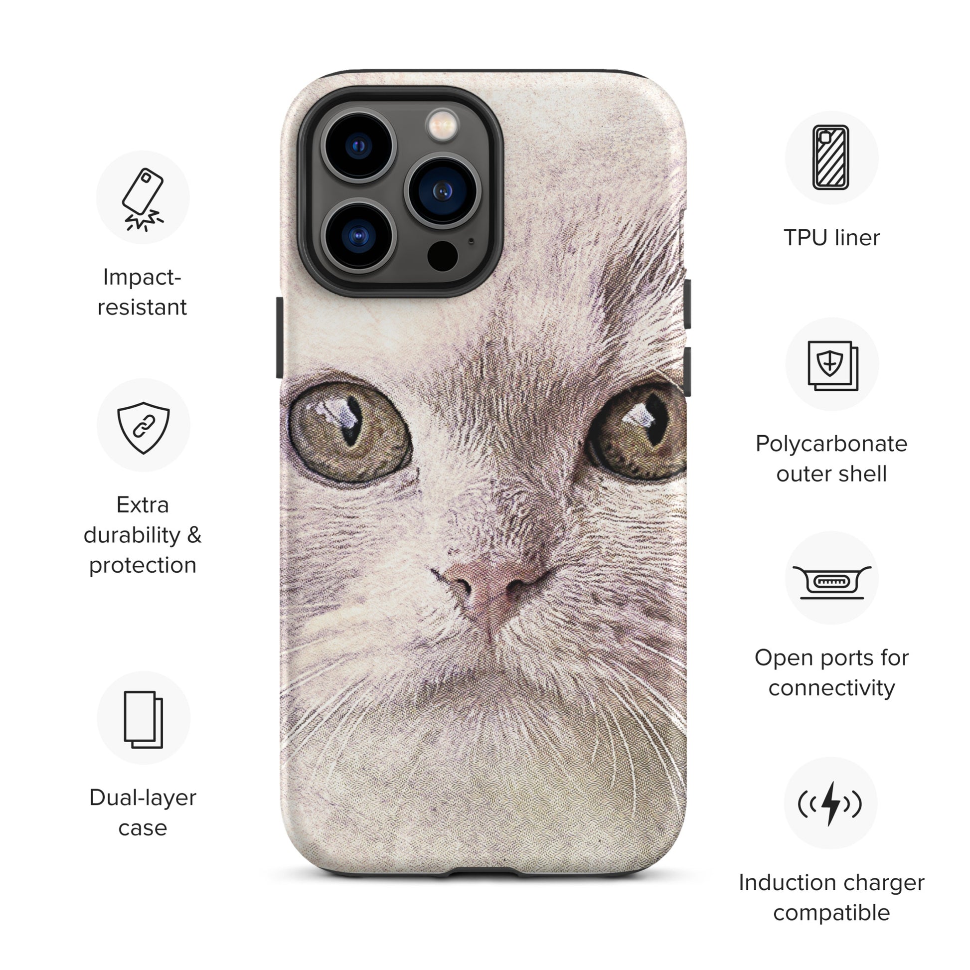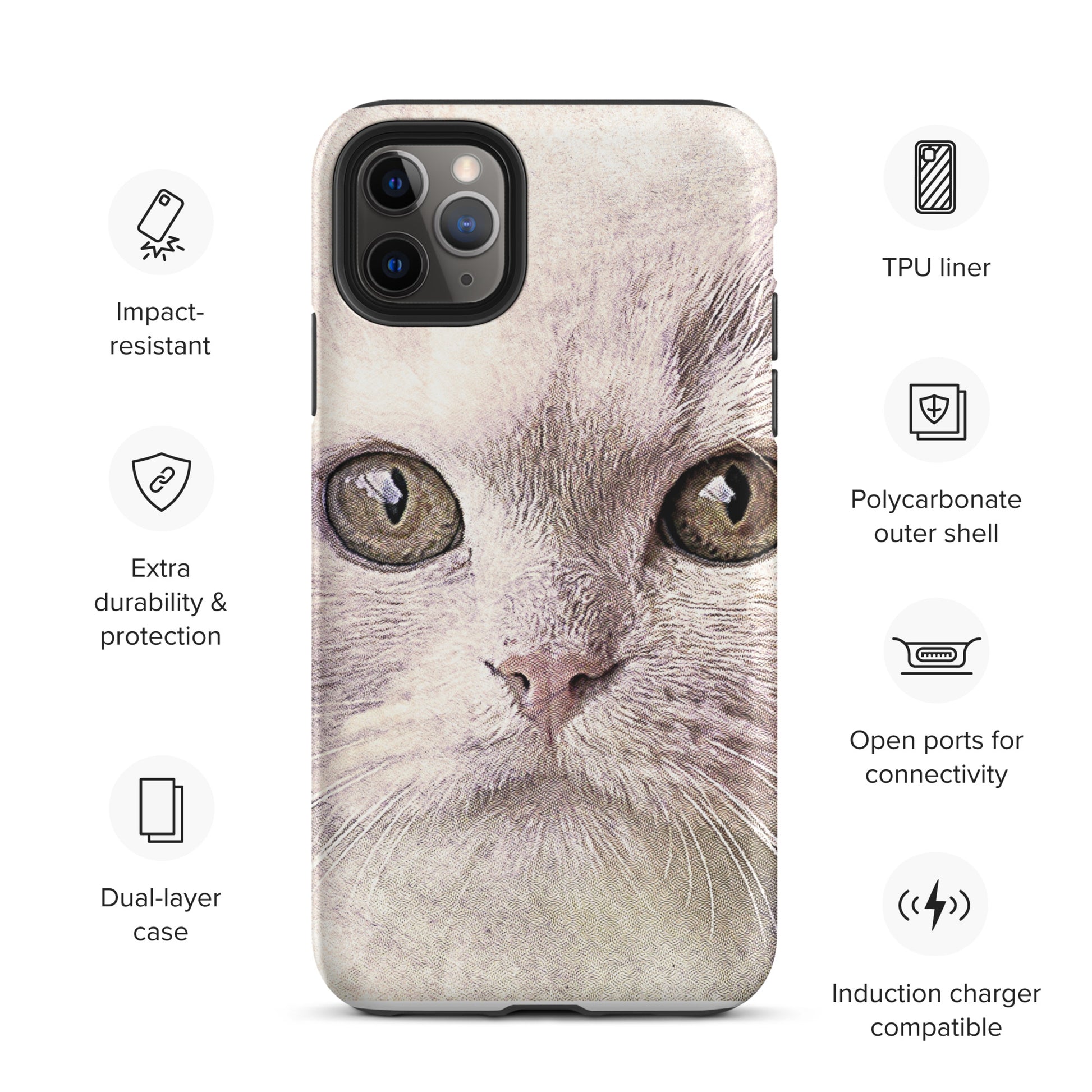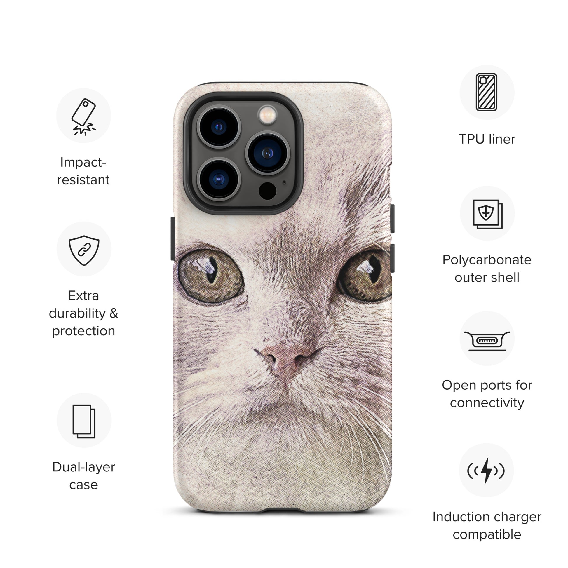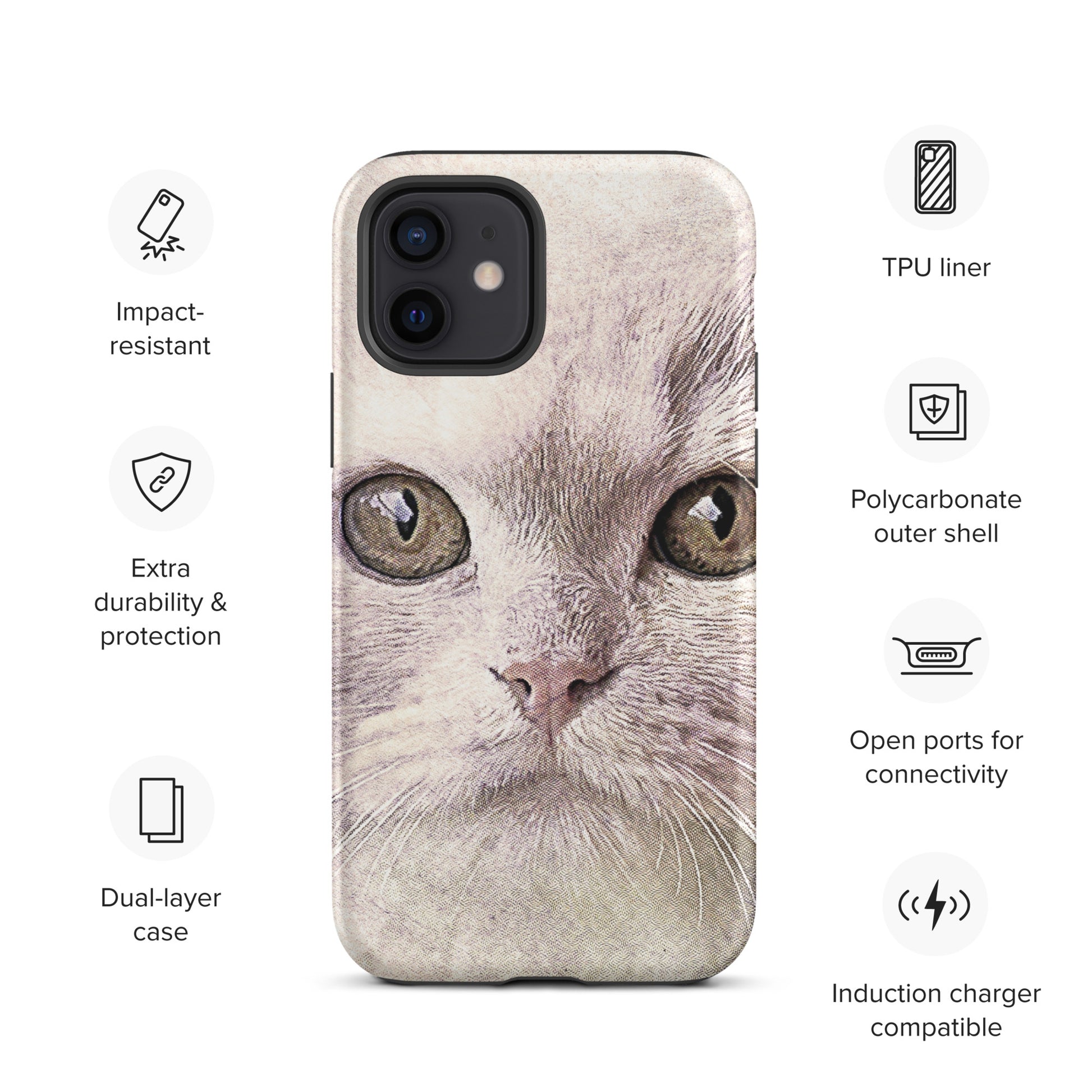 CAT BOUTIQUE-WHITE FLUFFY FACE CAT Tough iPhone case