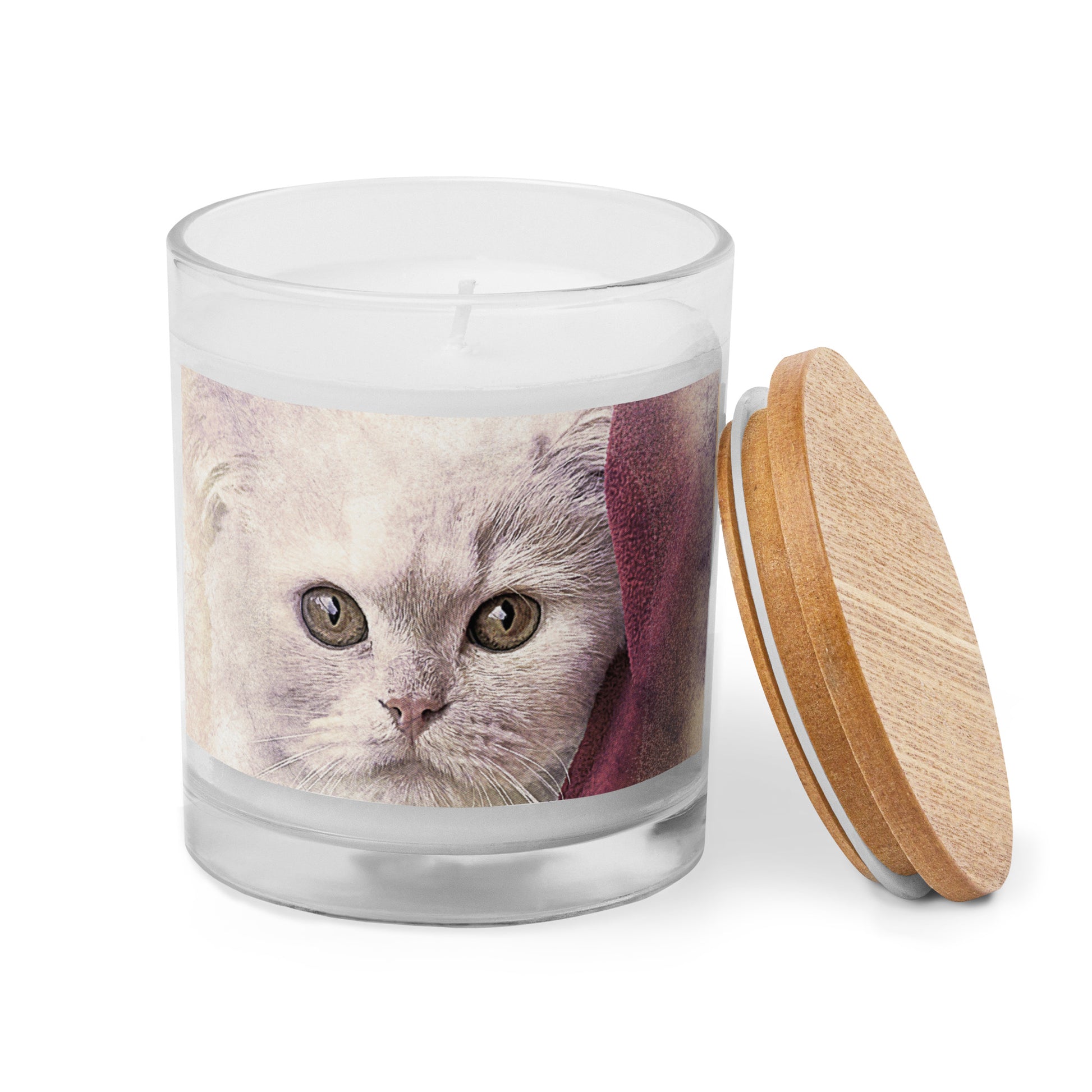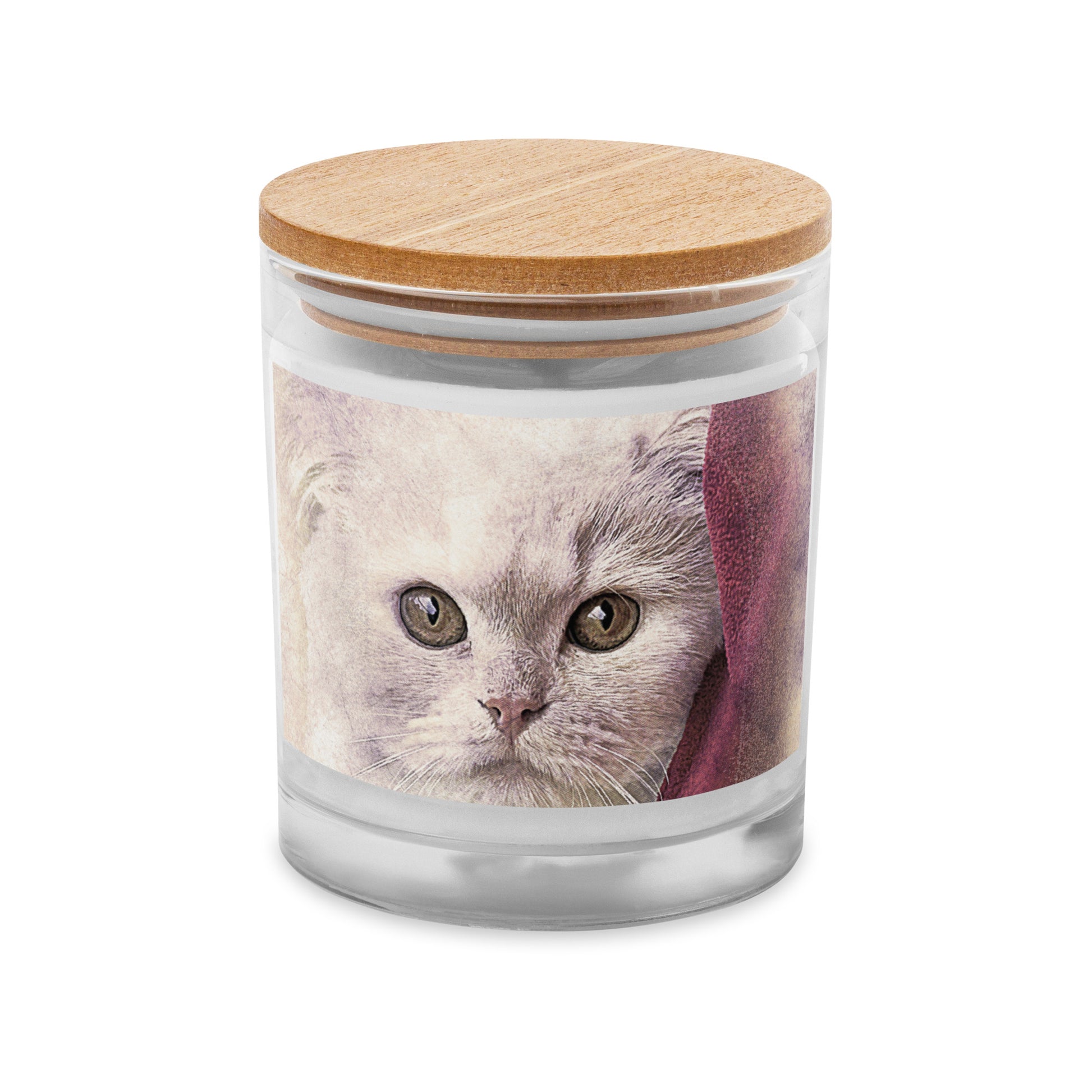 CAT WITH PINK BLANKET Glass jar candle