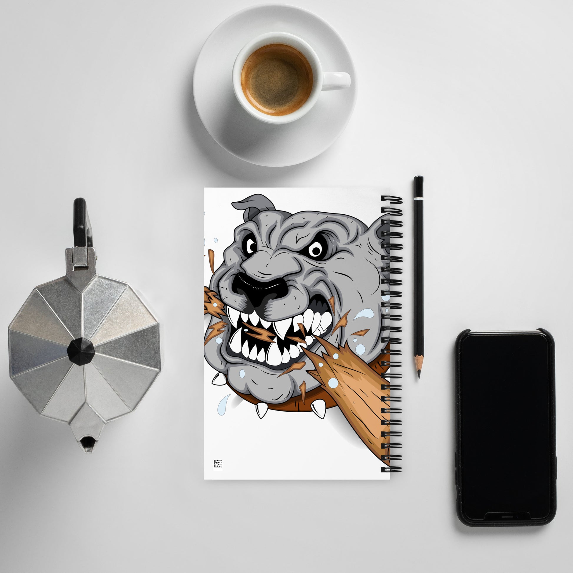 CRUNCH TIME! BULL DOG CRUNCHING A BAT PICTURE Spiral notebook