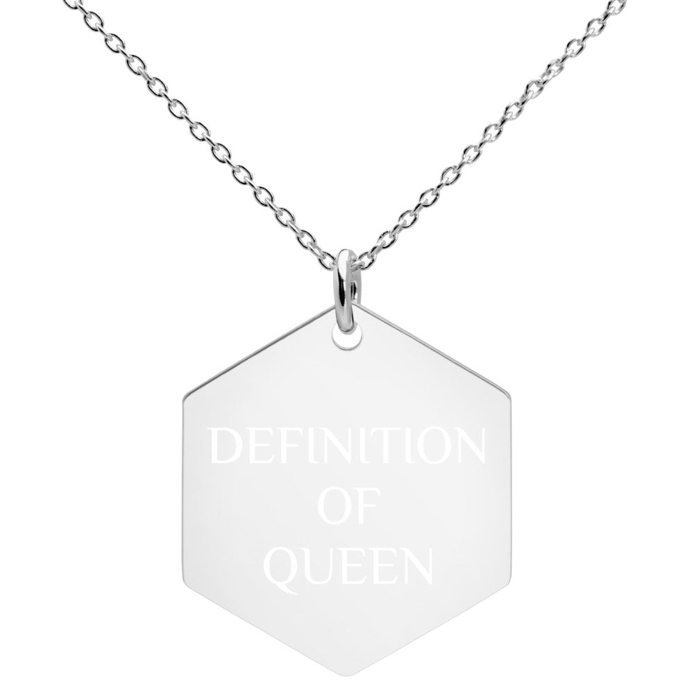 DEFINITION OF QUEEN Engraved Silver Hexagon Necklace