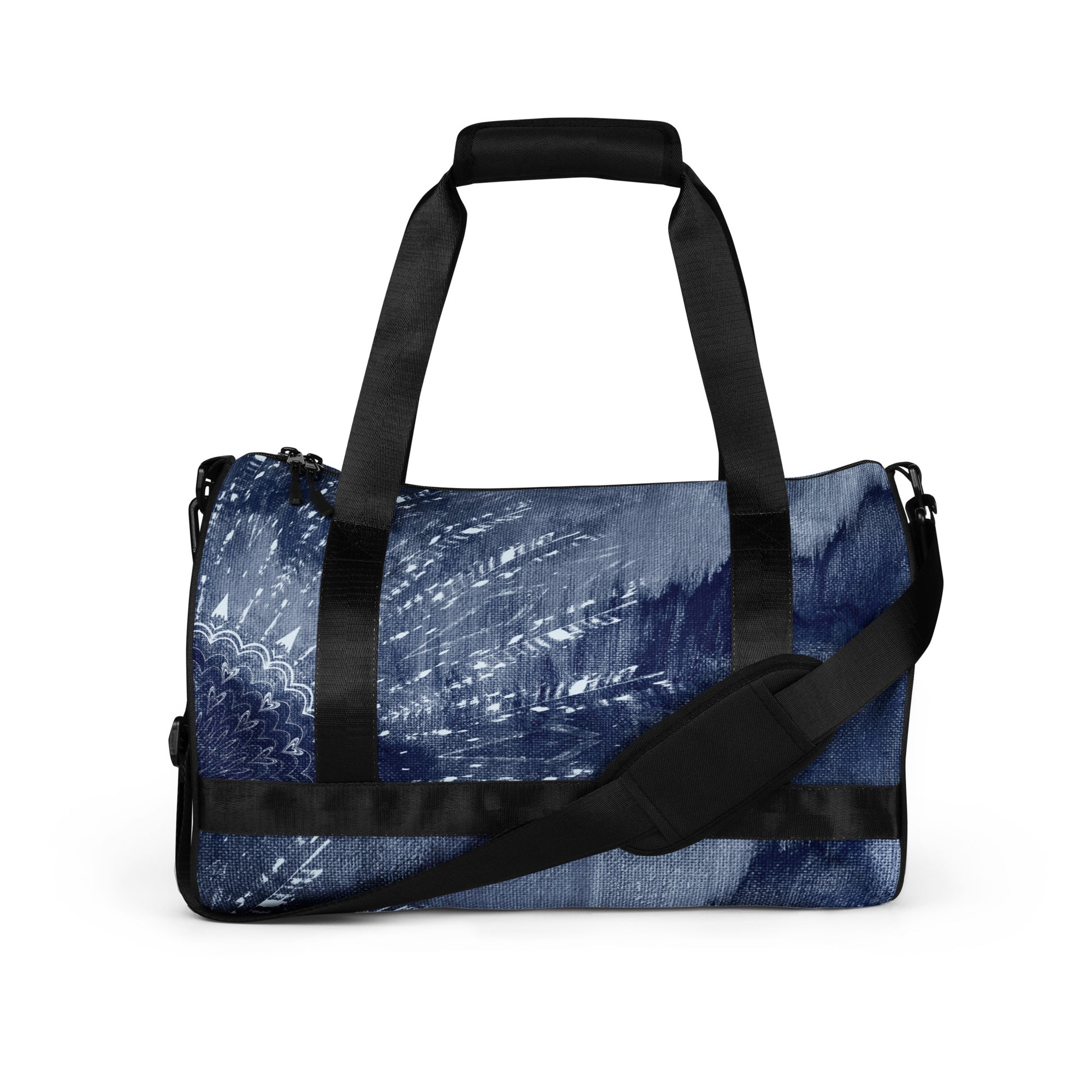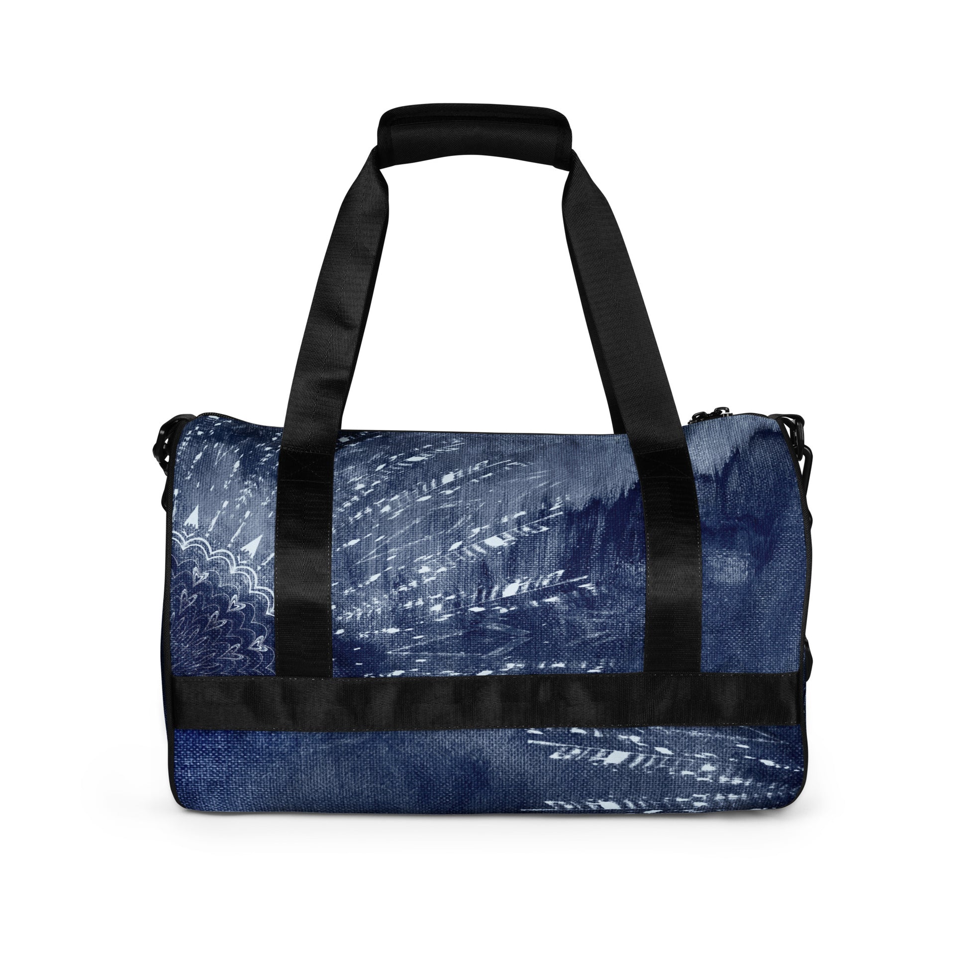 Ready to get your fitness on? Add some punch to pumping iron with this all-over print gym bag. Made from 100% polyester and sturdy, water-resistant fabric, this bag is fun meets function. And it’s got pockets!