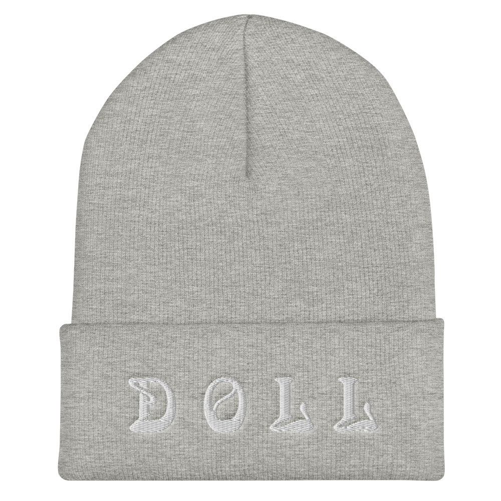 DOLL- BLACK Cuffed Beanie WITH WHITE STITCH
