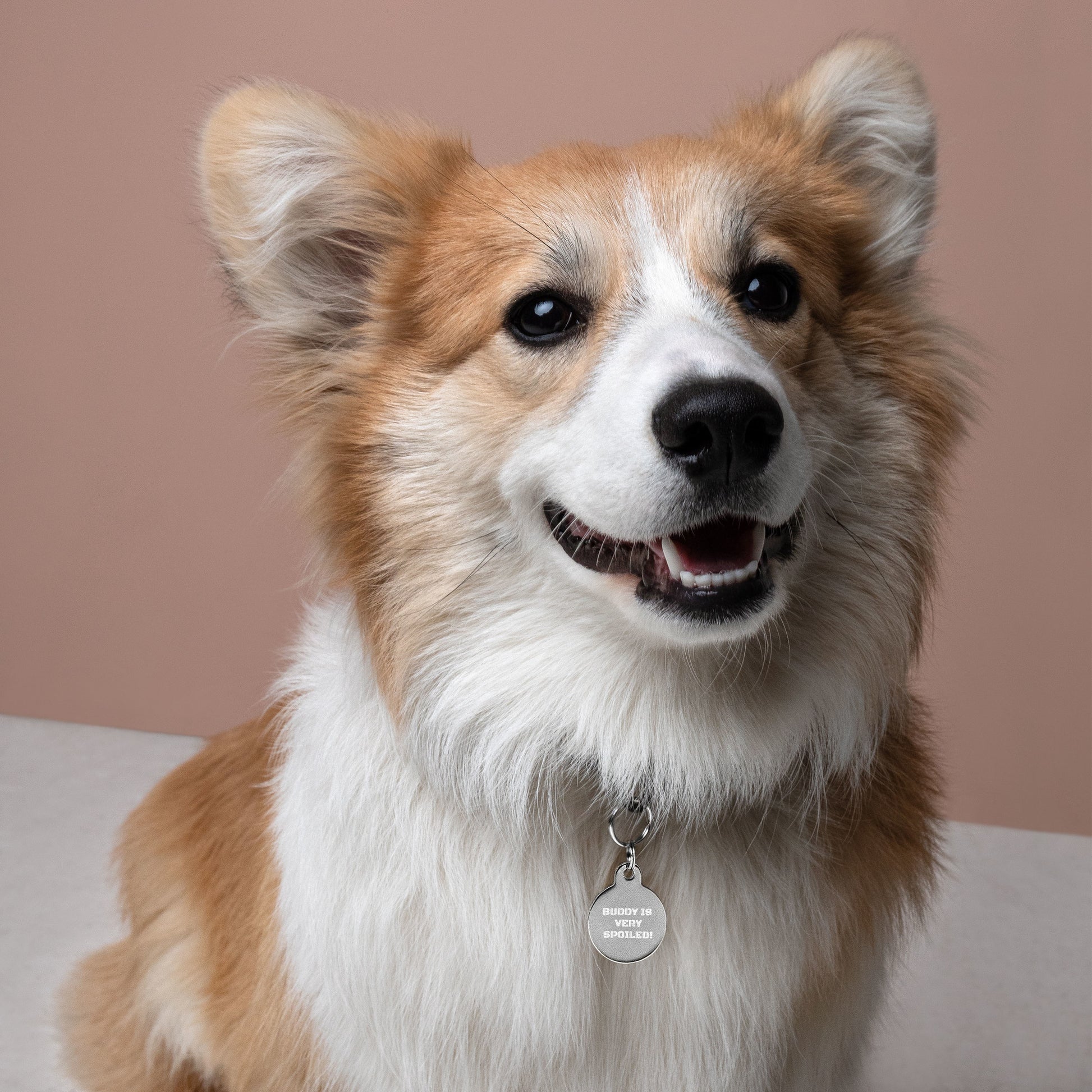 SPOILED DOG BOUTIQUE- BUDDY IS VERY SPOILED Engraved pet ID tag or key chain