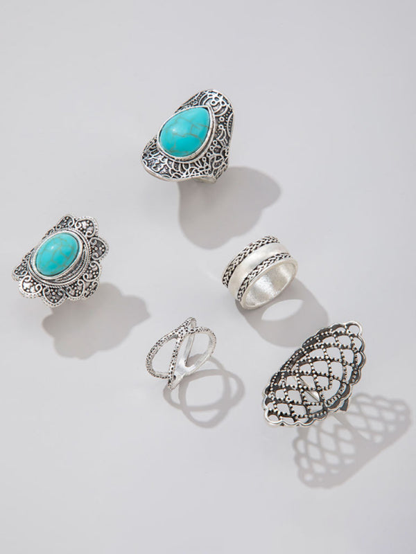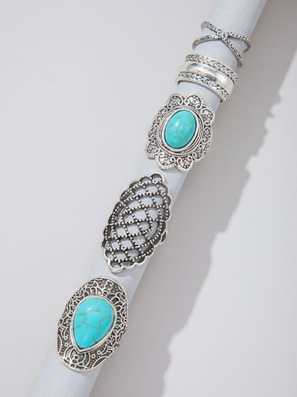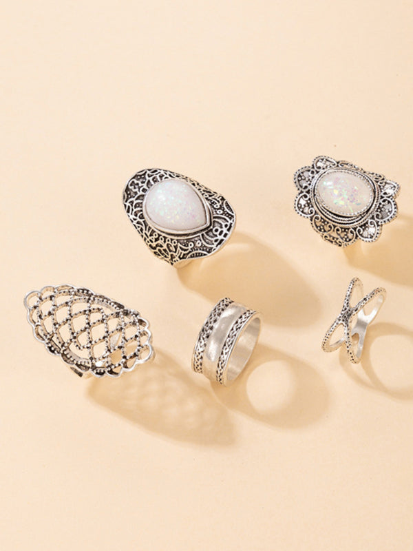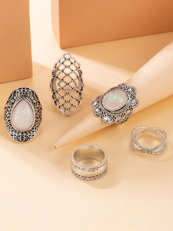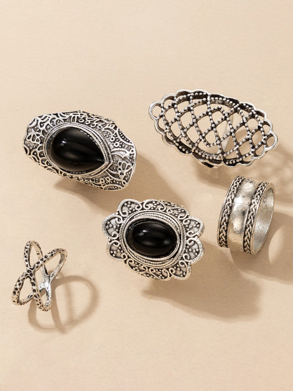 Exaggerated Personality Retro Drip Oil Cross Hollow Wide Brimming Ring Set of 5