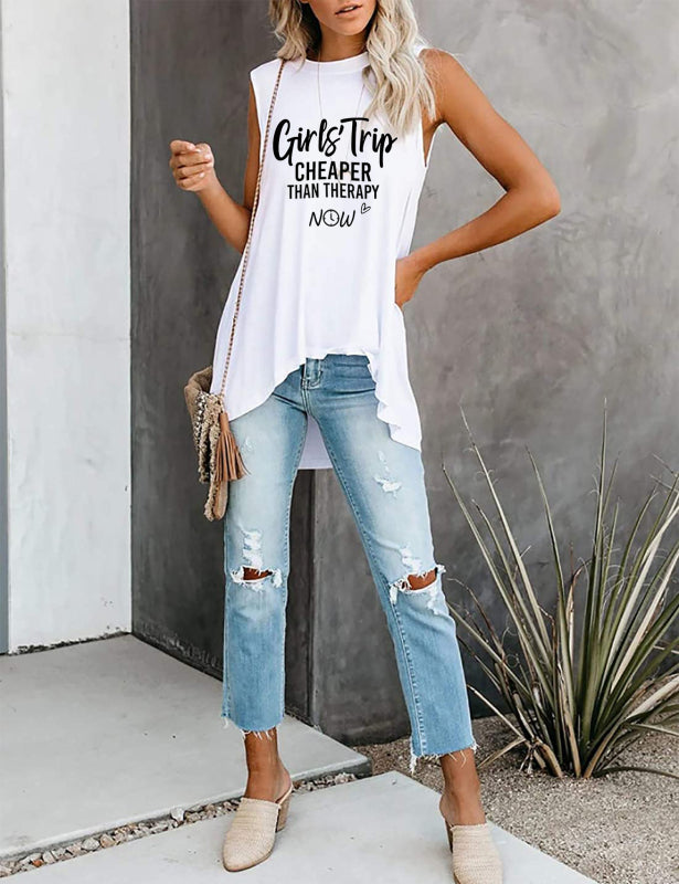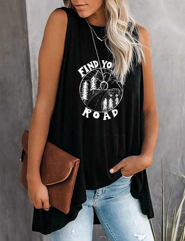 Fashion All-Match Casual Ladies Sleeveless Printed T-Shirt