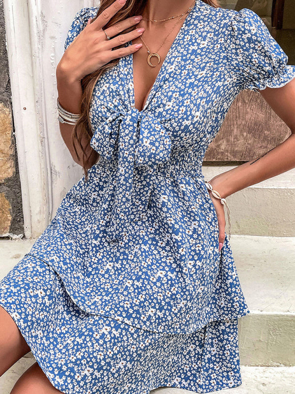 Fashion Women's Bow Knot Blue Elegant Dress Women's Summer