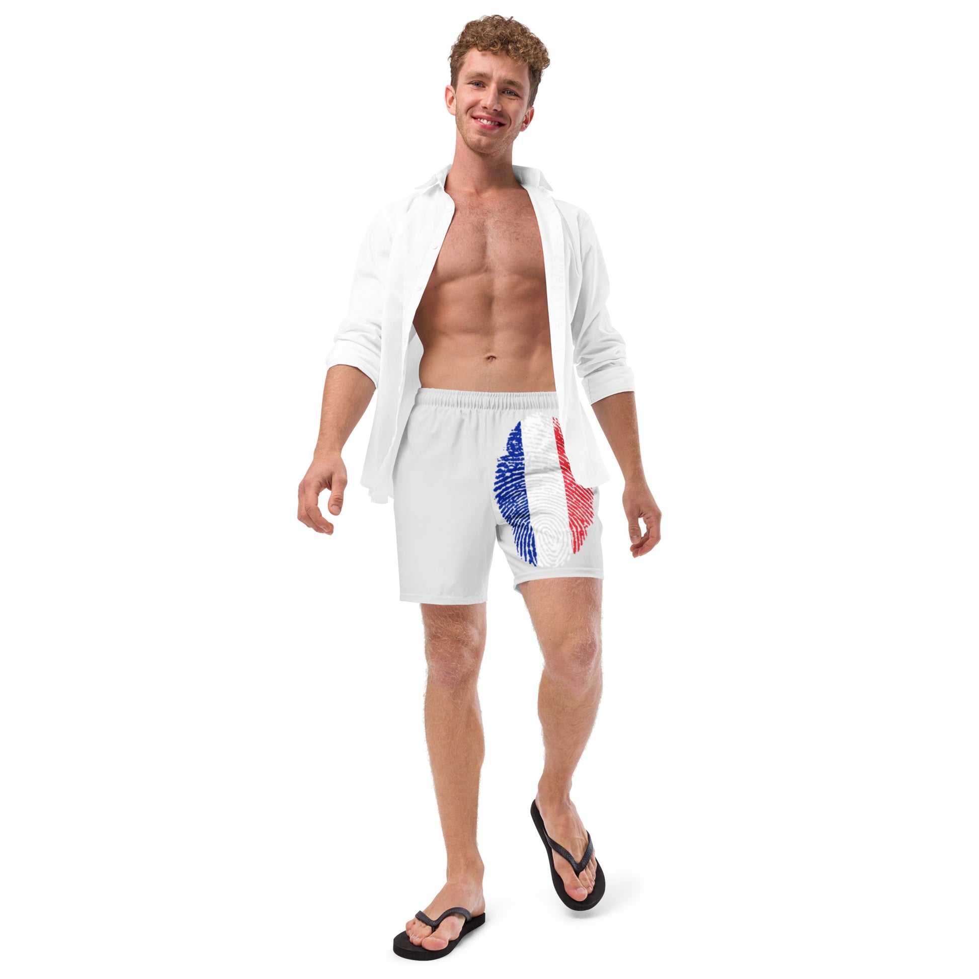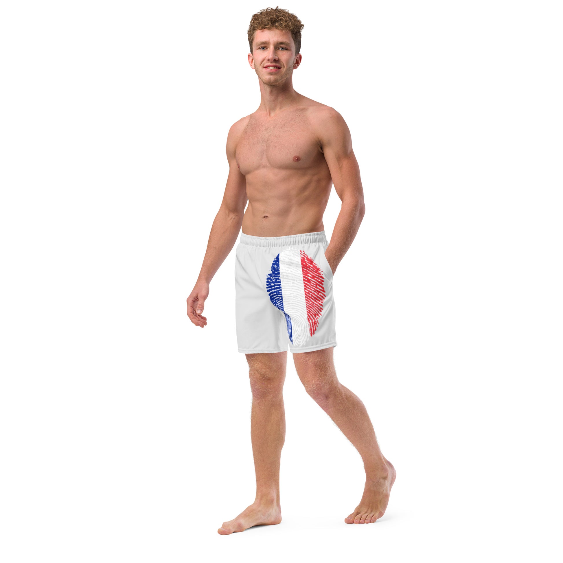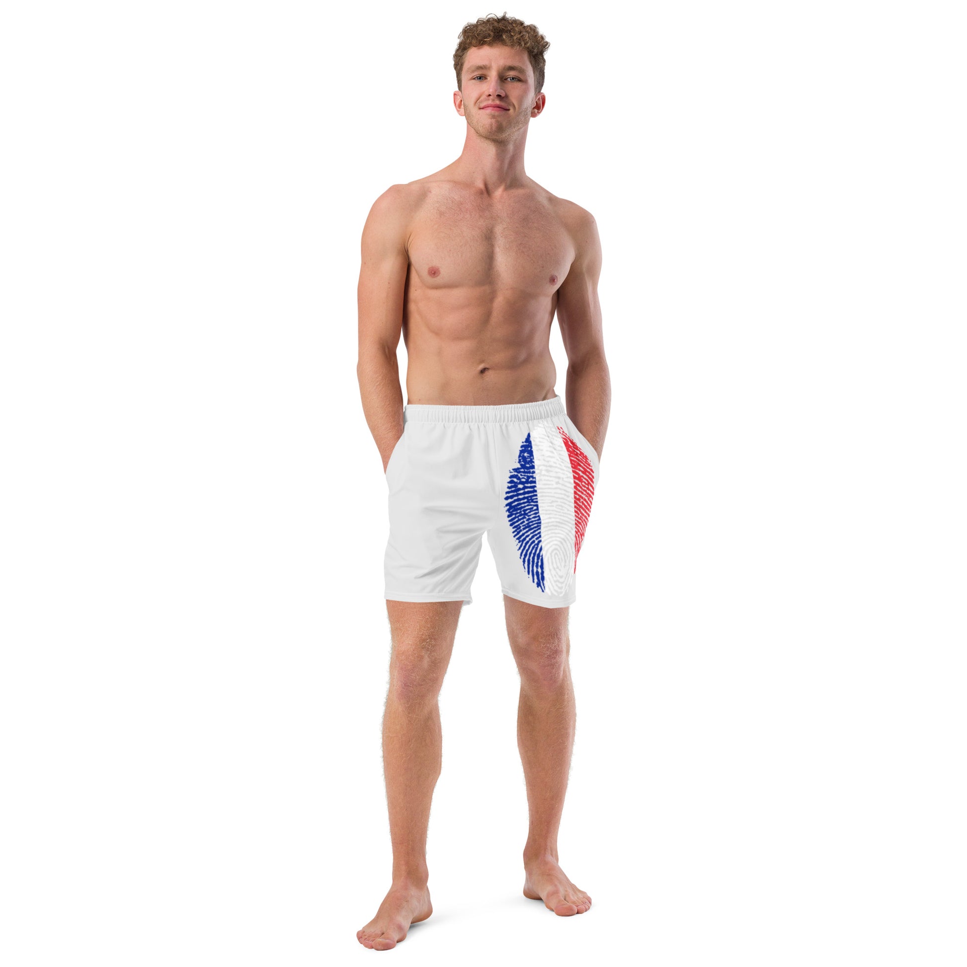 FRANCE BOUTIQUE Men's swim trunks- FRANCE FLAG WITH WORDS- FRENCH BOY