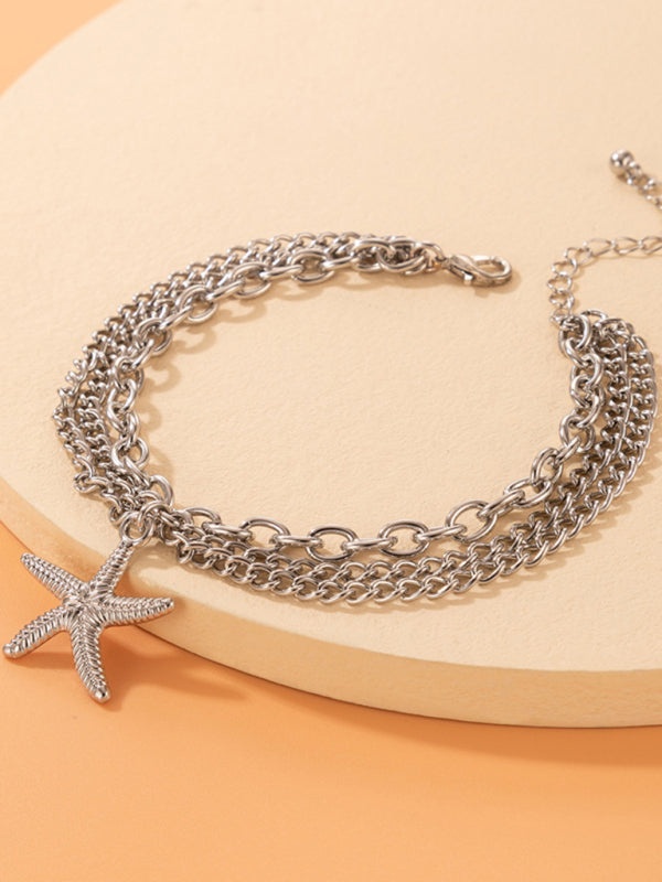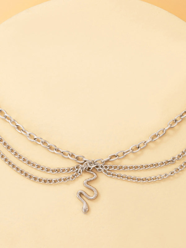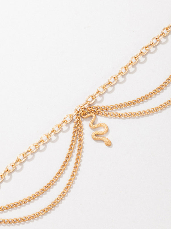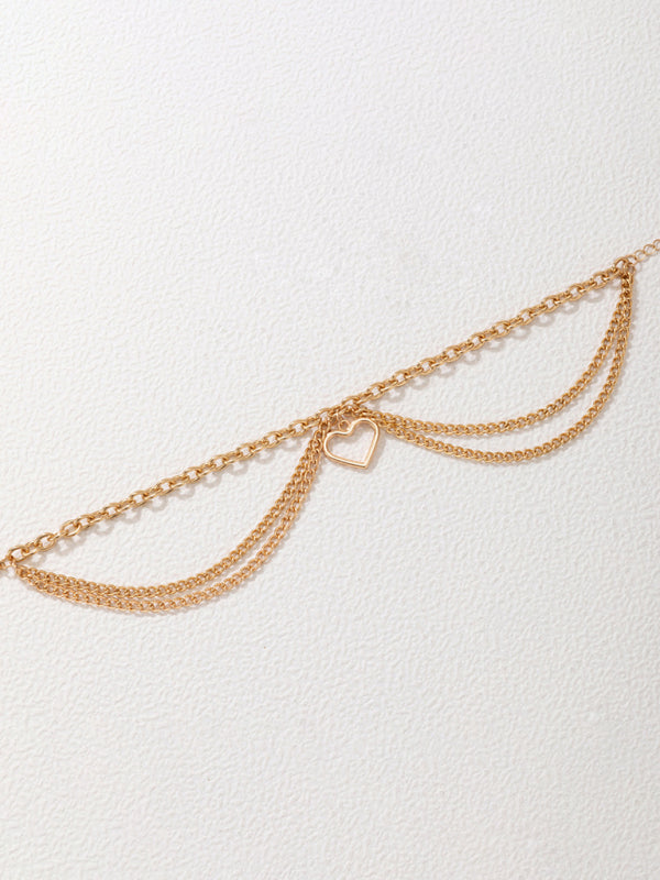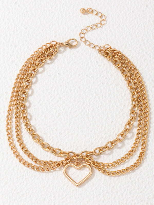 Gold heart-shaped chain anklet tassel snake-shaped pendant three-layer anklet for women