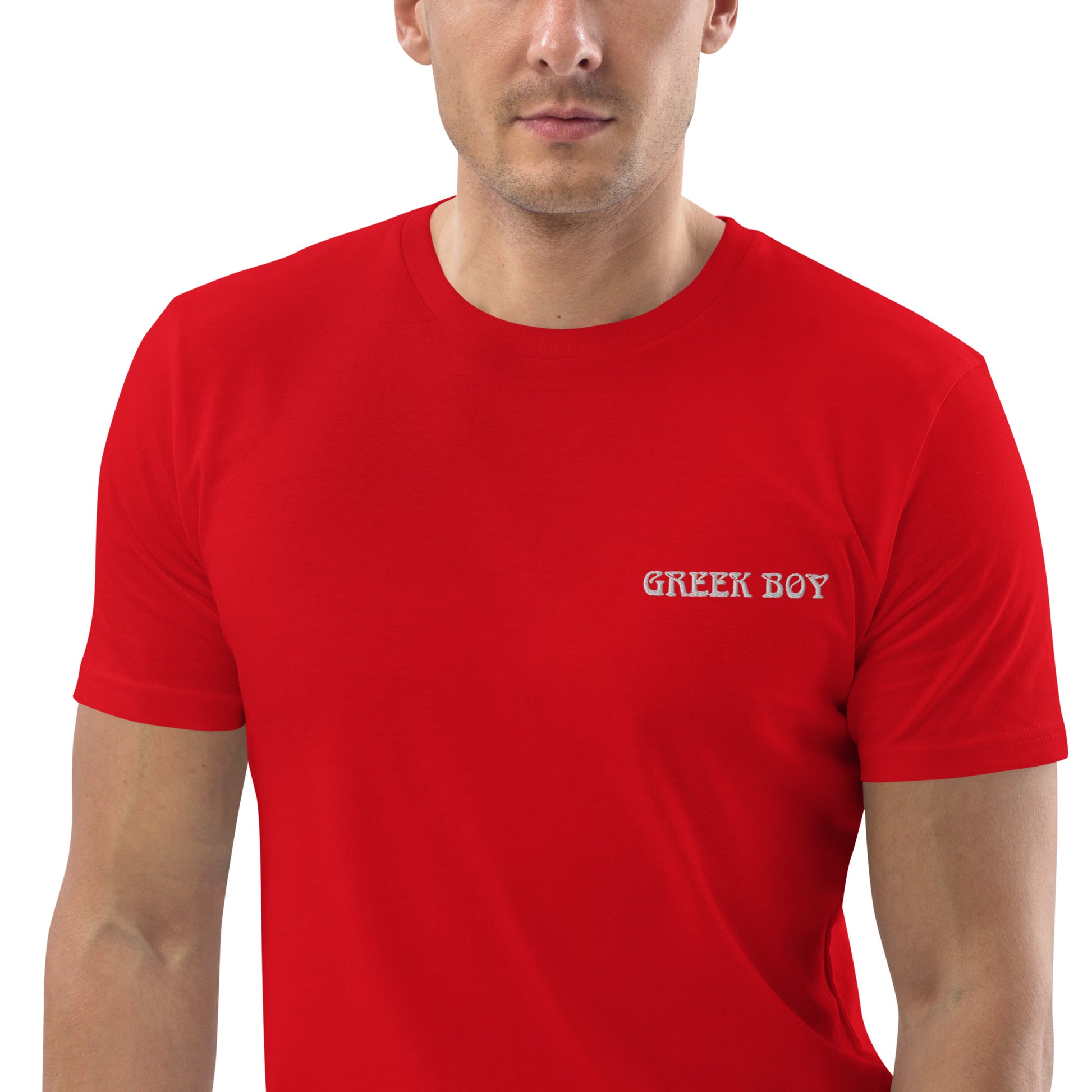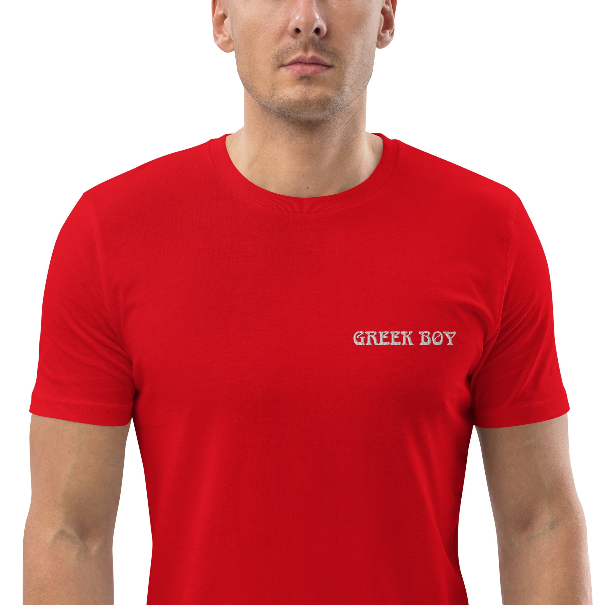 GREEK BOY EMBROIDERY WORD Unisex organic cotton t-shirt