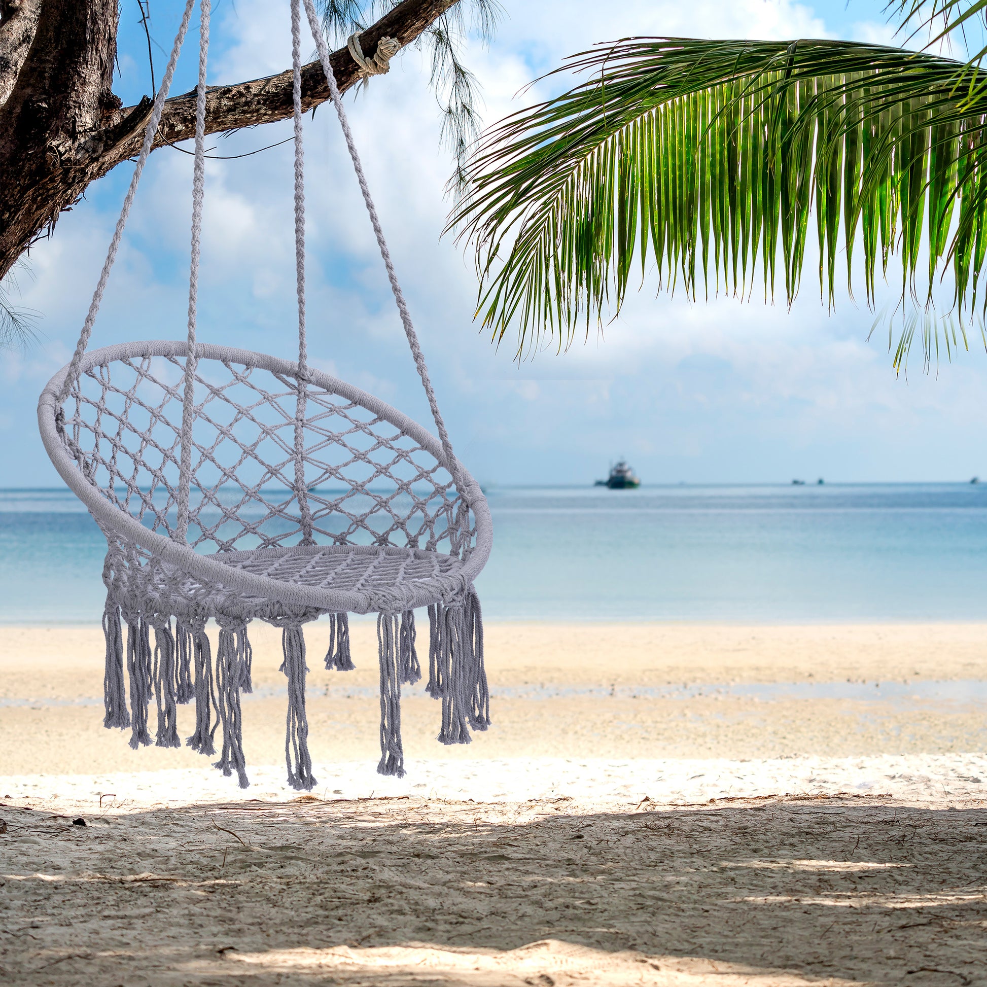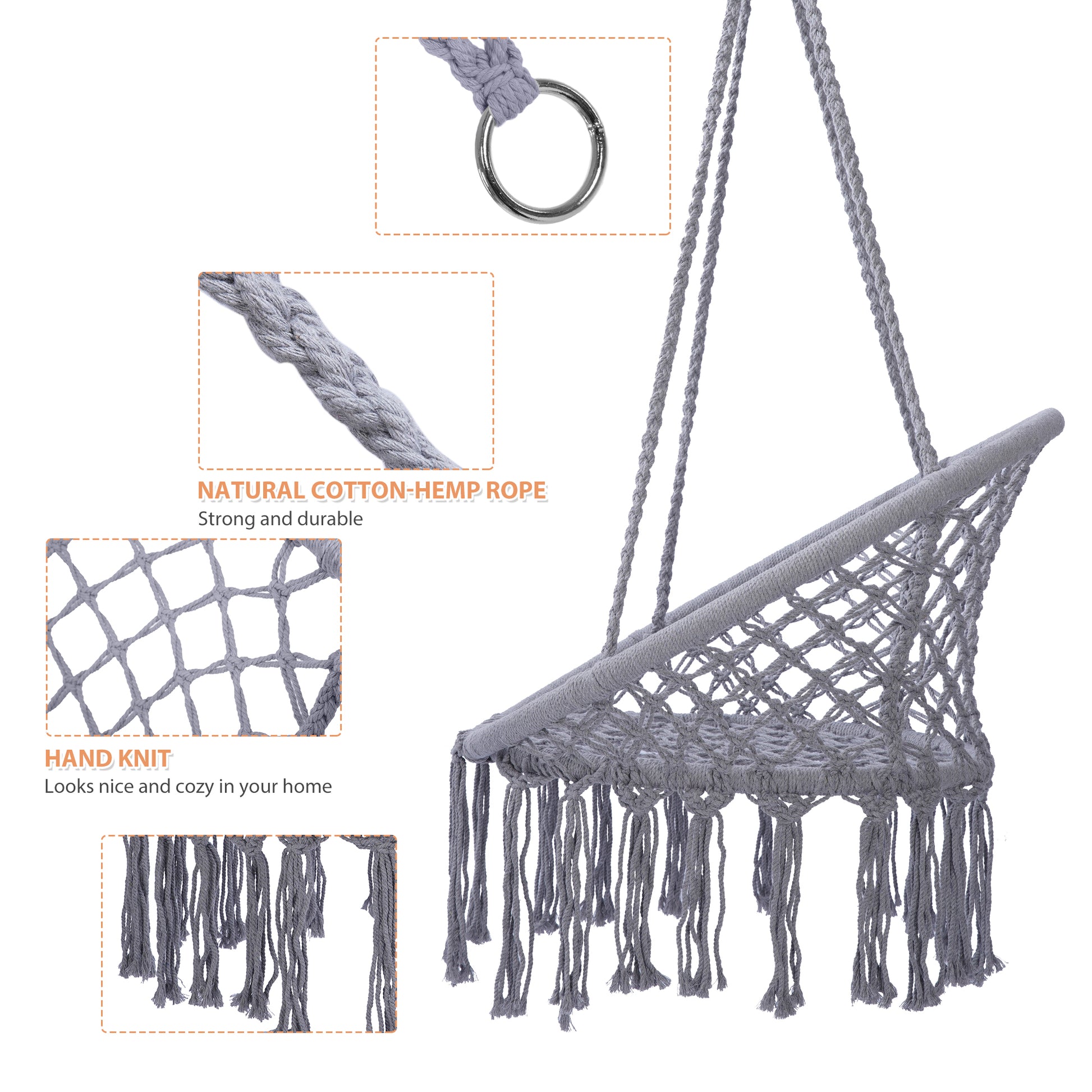 Hammock Chair Macrame Swing Max 330 Lbs Hanging Cotton Rope Hammock Swing Chair for Indoor and Outdoor