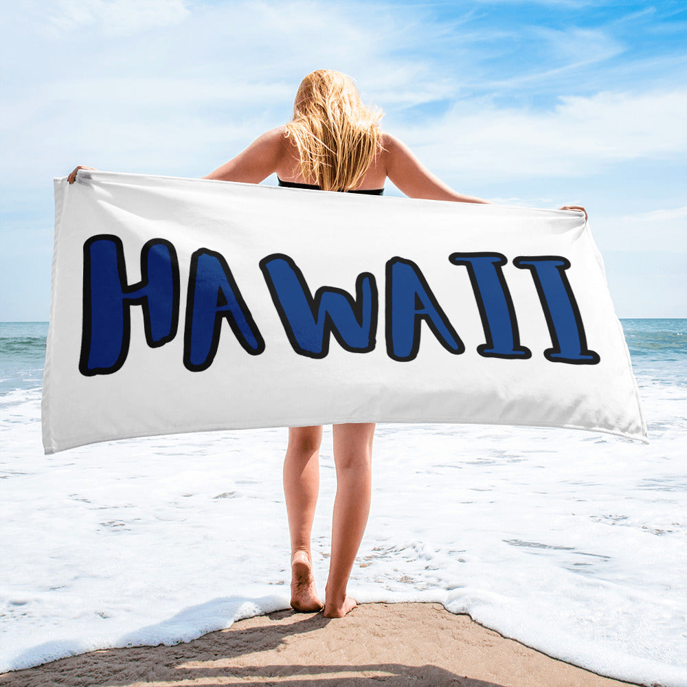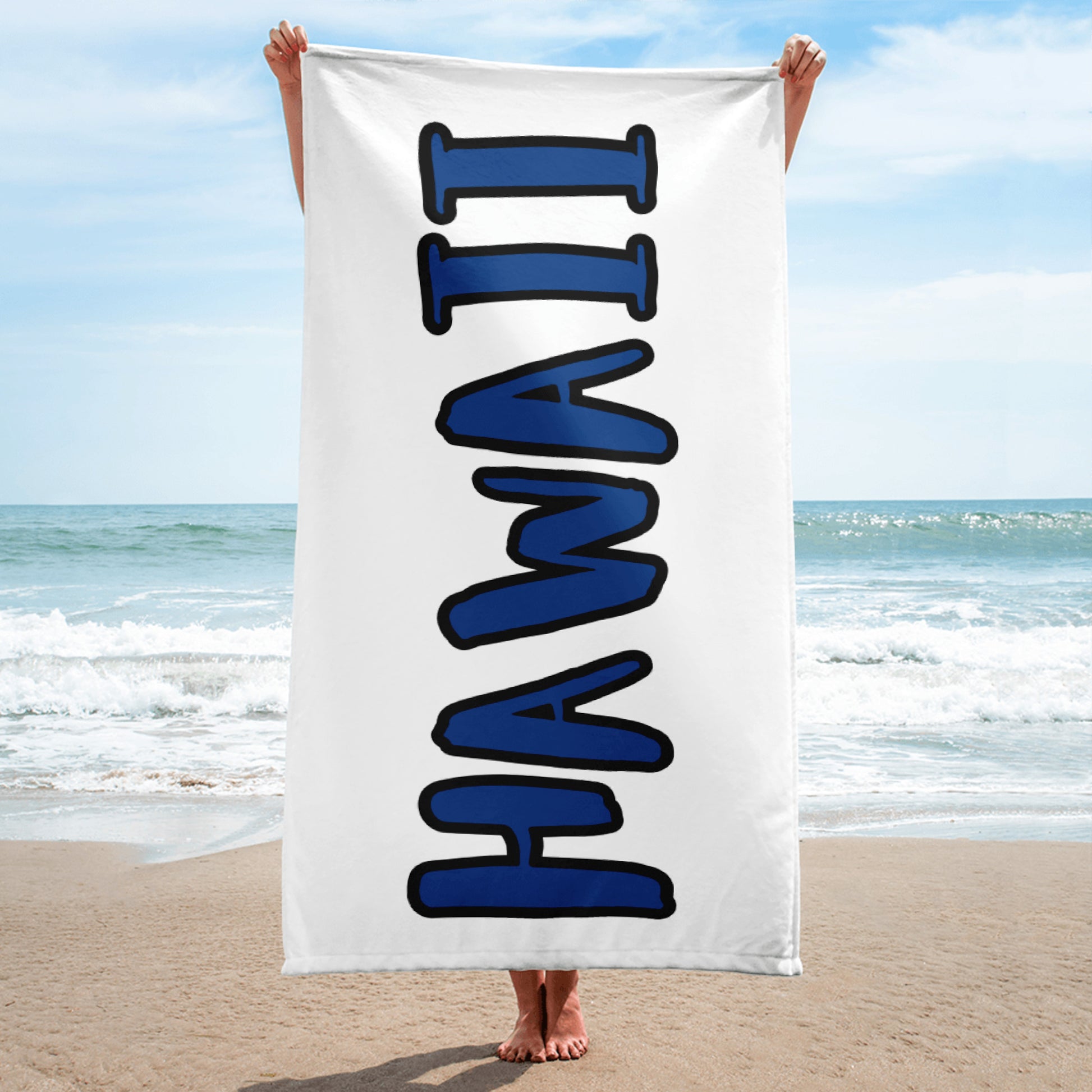 HAWAII----BLUE WRITING WITH BLACK TRIM ON WHITE Towel