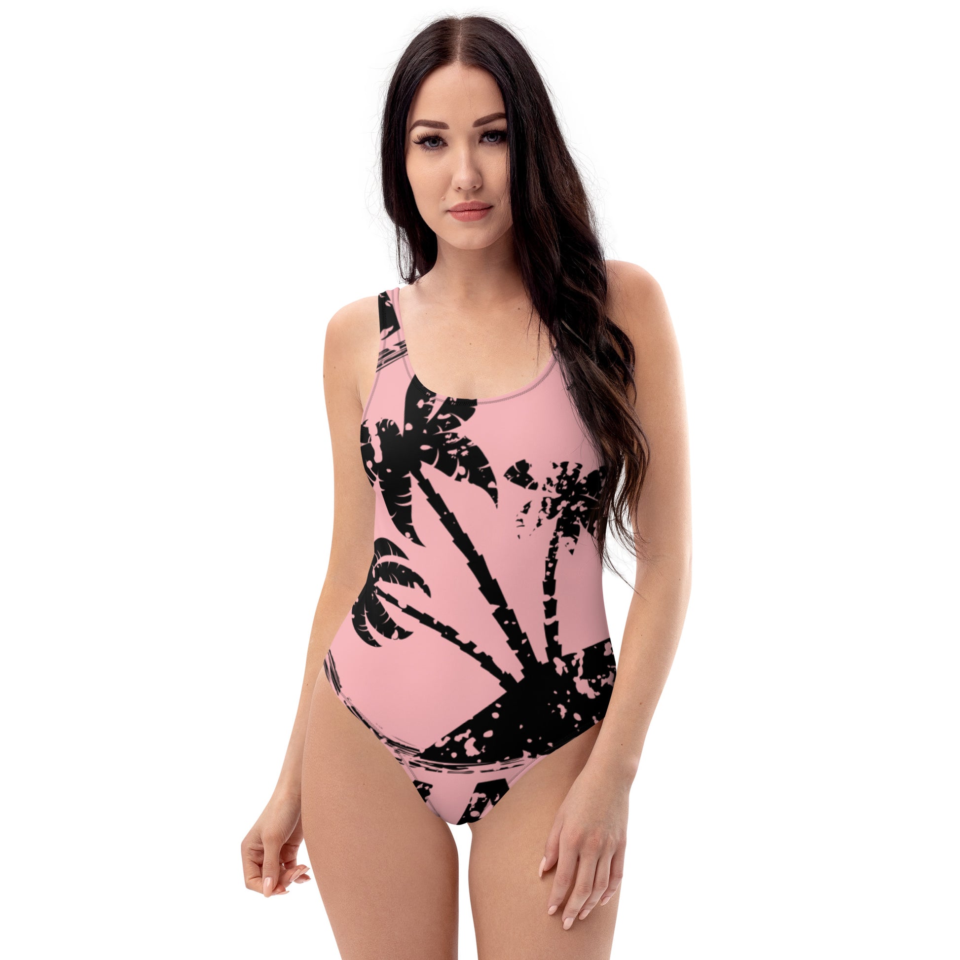 hawaii stamp on back and hawaii big art stamp on front -pink One-Piece Swimsuit