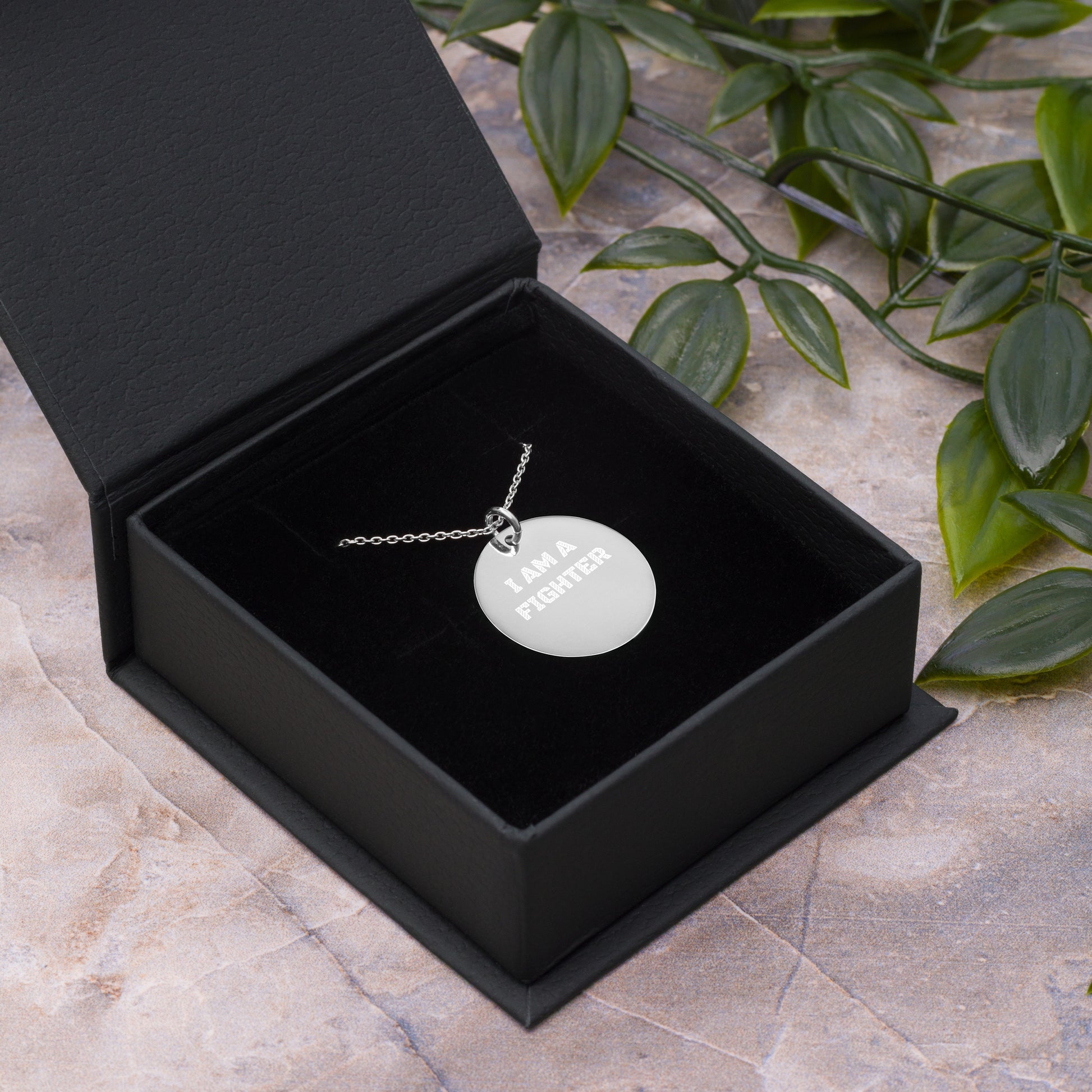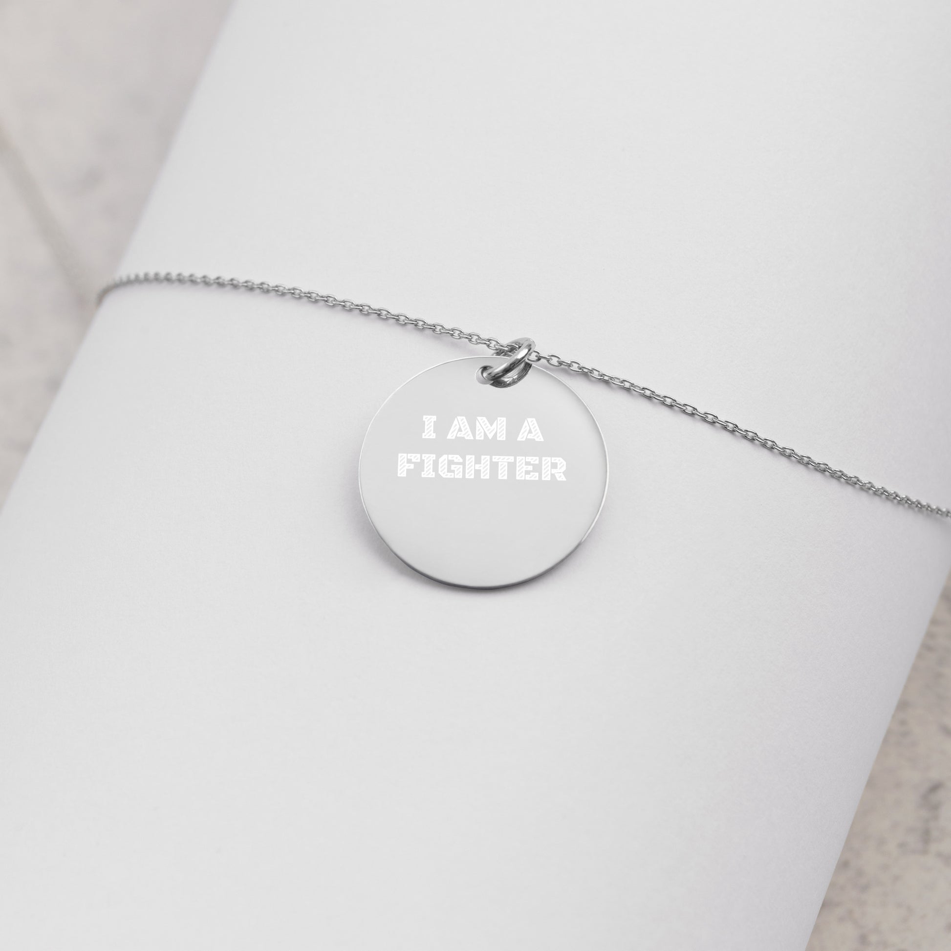 I AM A FIGHTER Engraved Silver Disc Necklace
