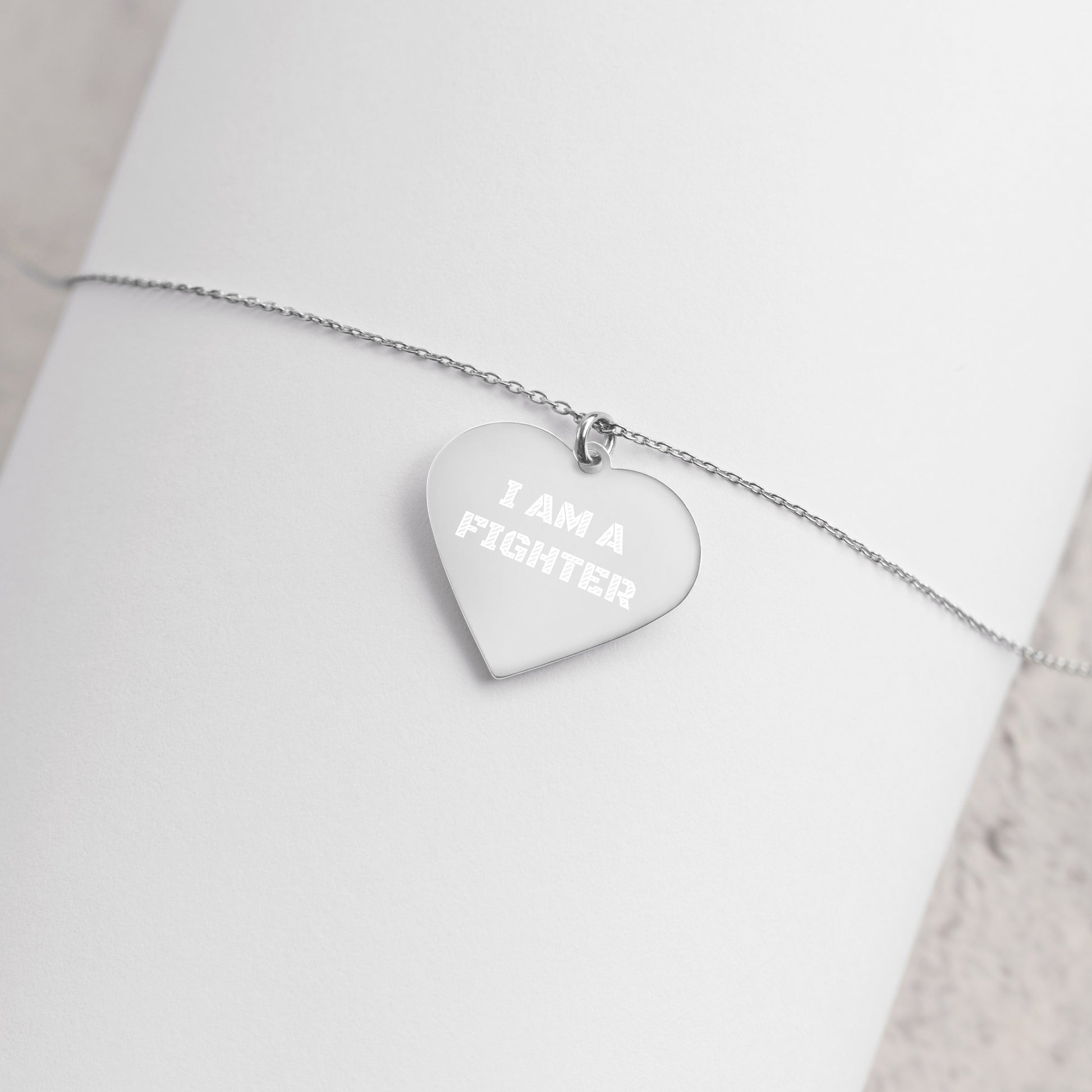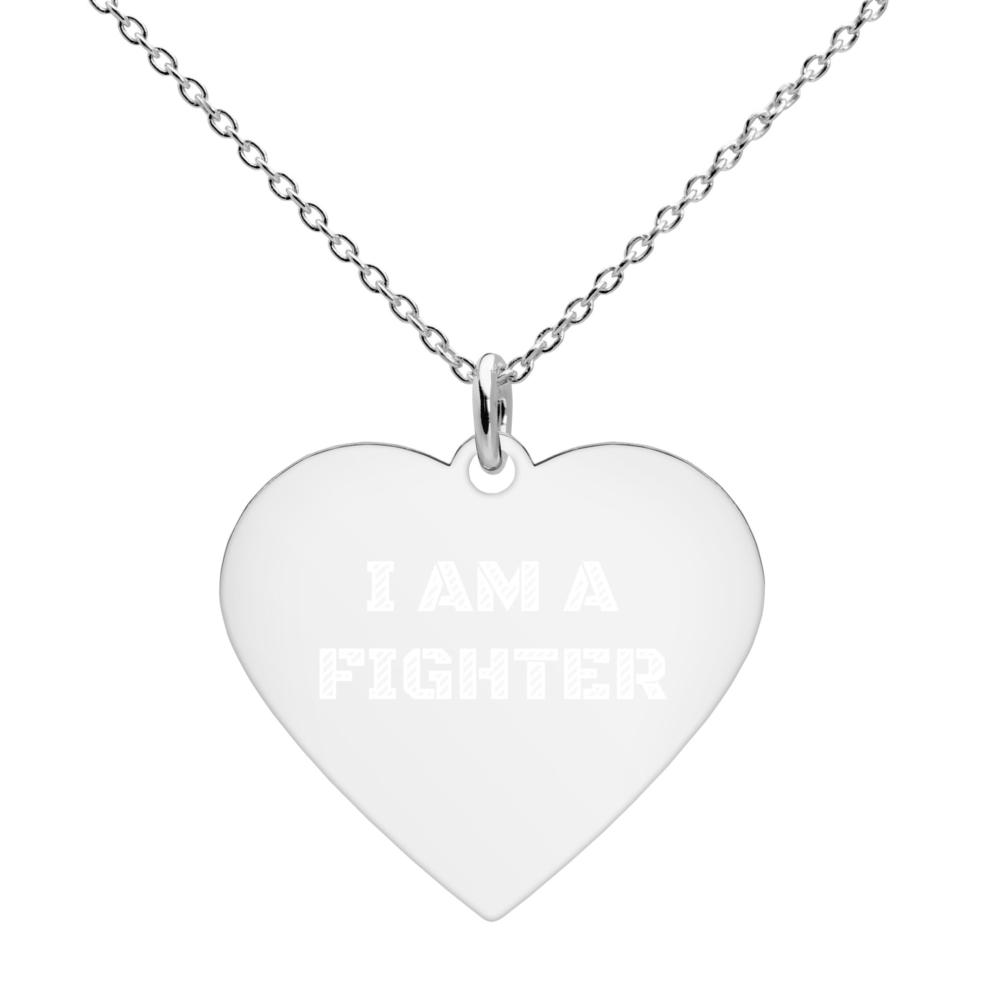 I AM A FIGHTER Engraved Silver Heart Necklace