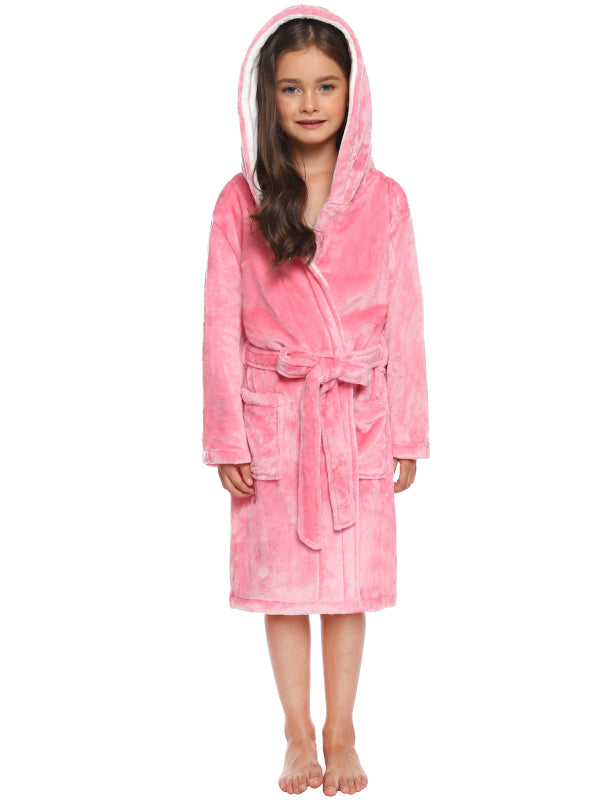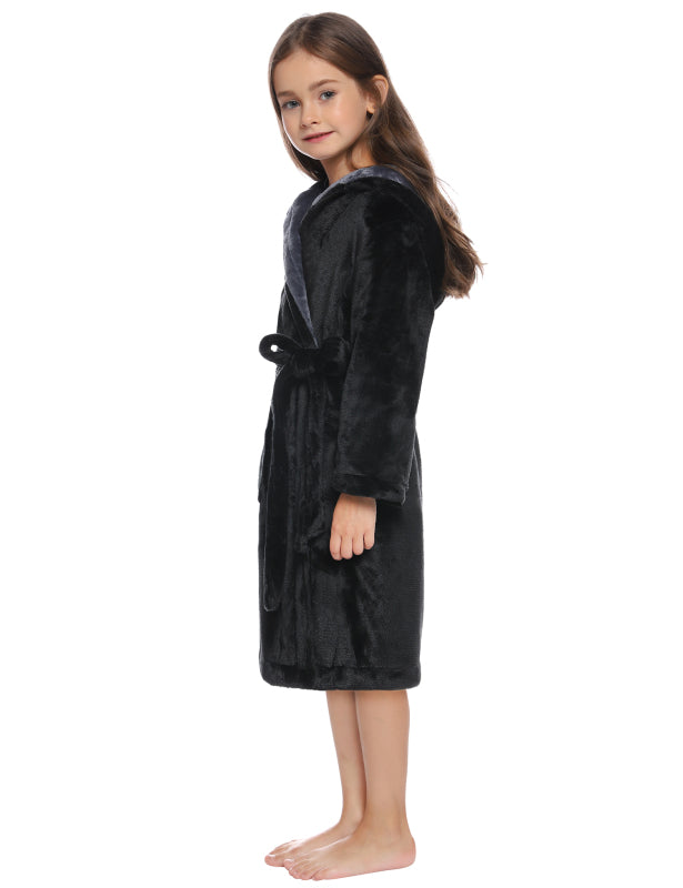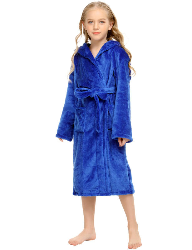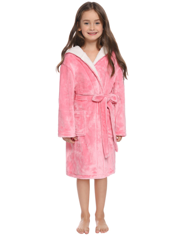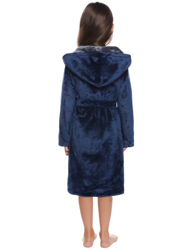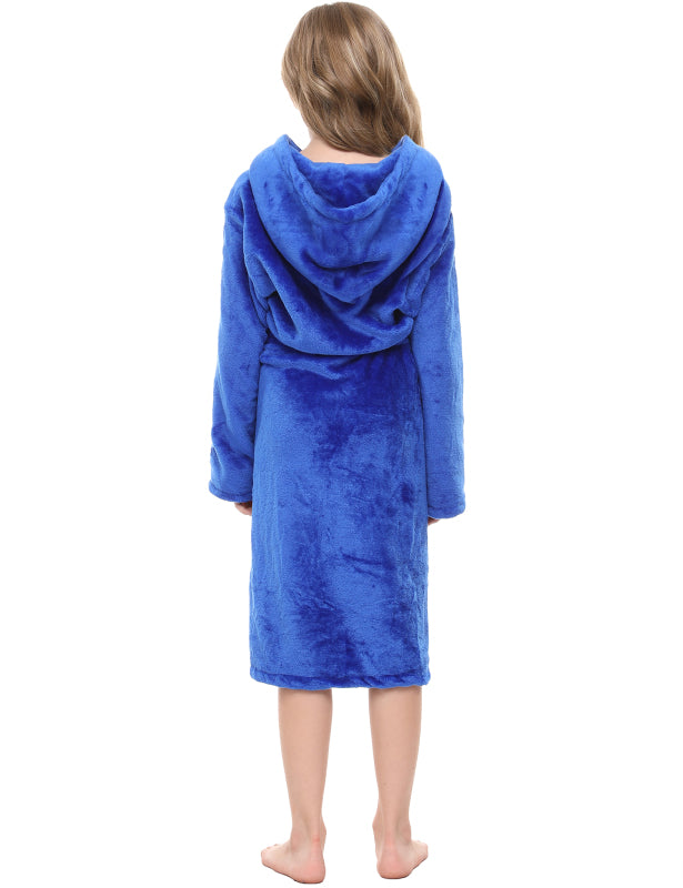 Kid’s Combo Color Hooded Plush Robe With Pockets