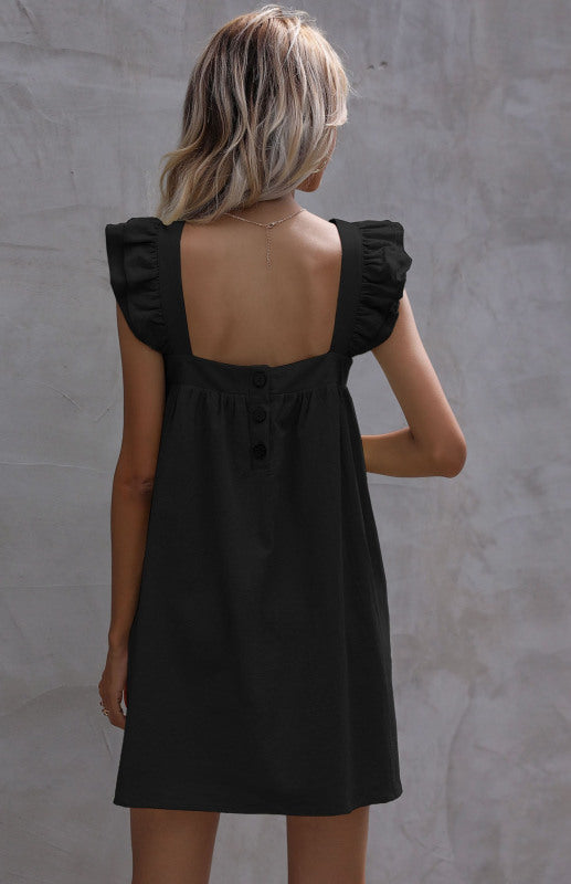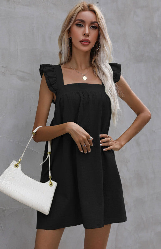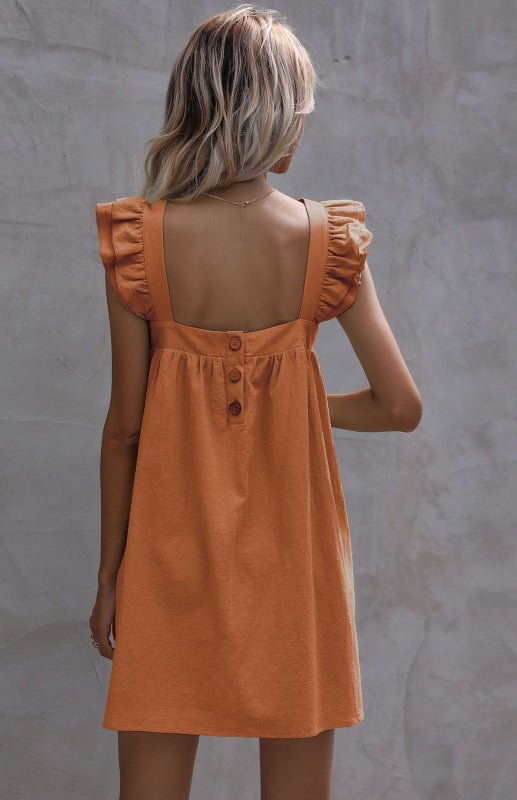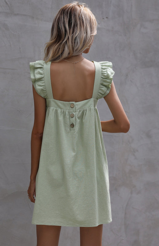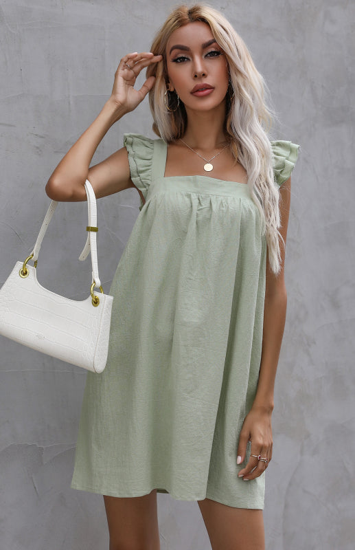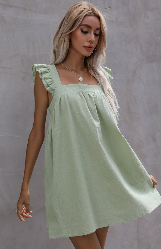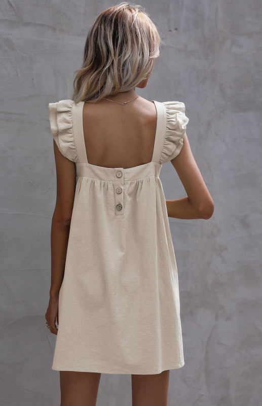 Ladies Loose Short Skirt Ruffle Vest Cotton Linen Dress