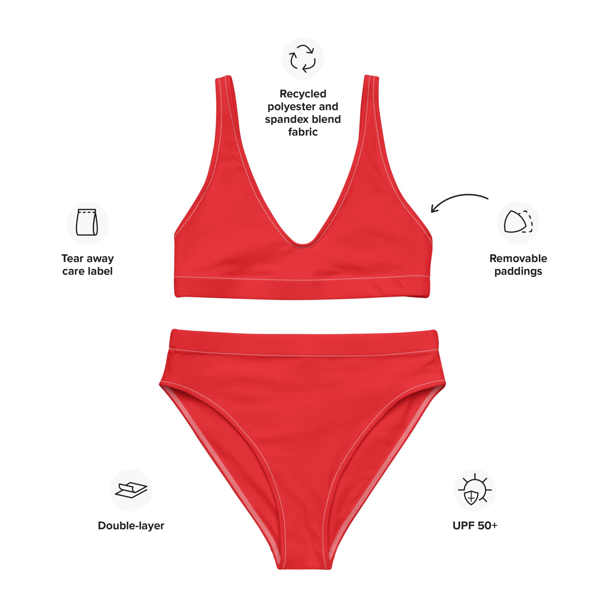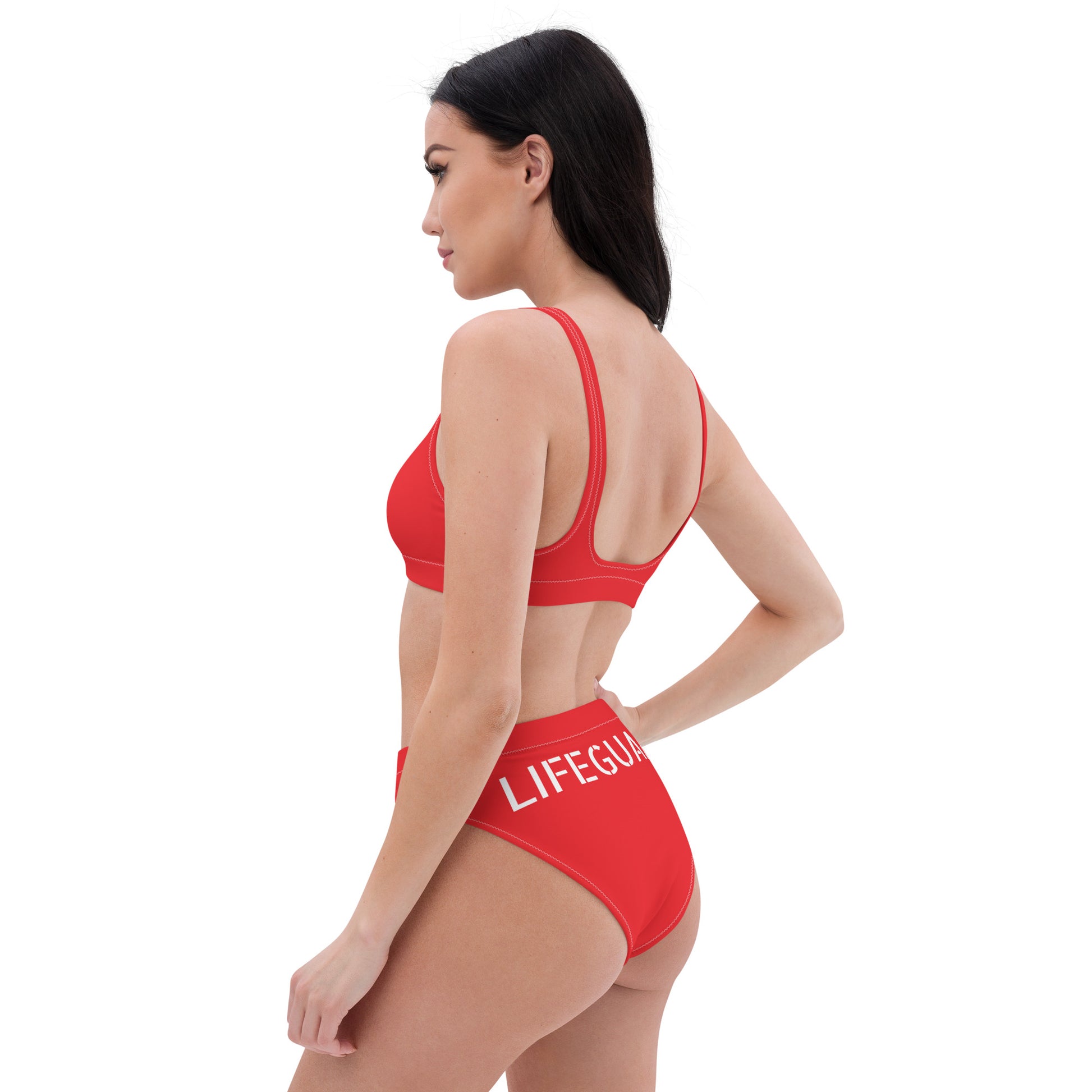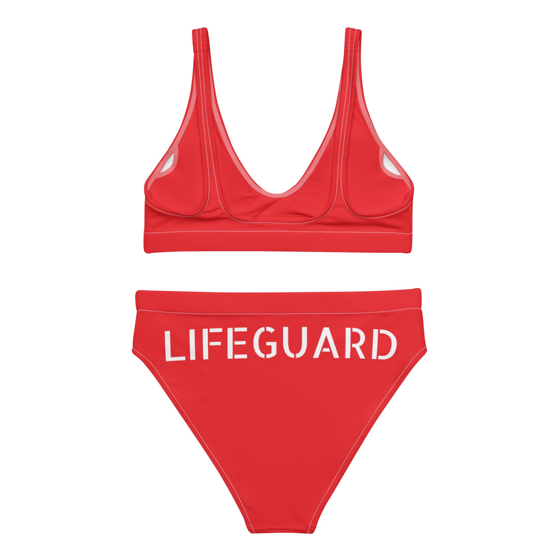 LIFEGUARD----RED BIKINI---Recycled high-waisted bikini