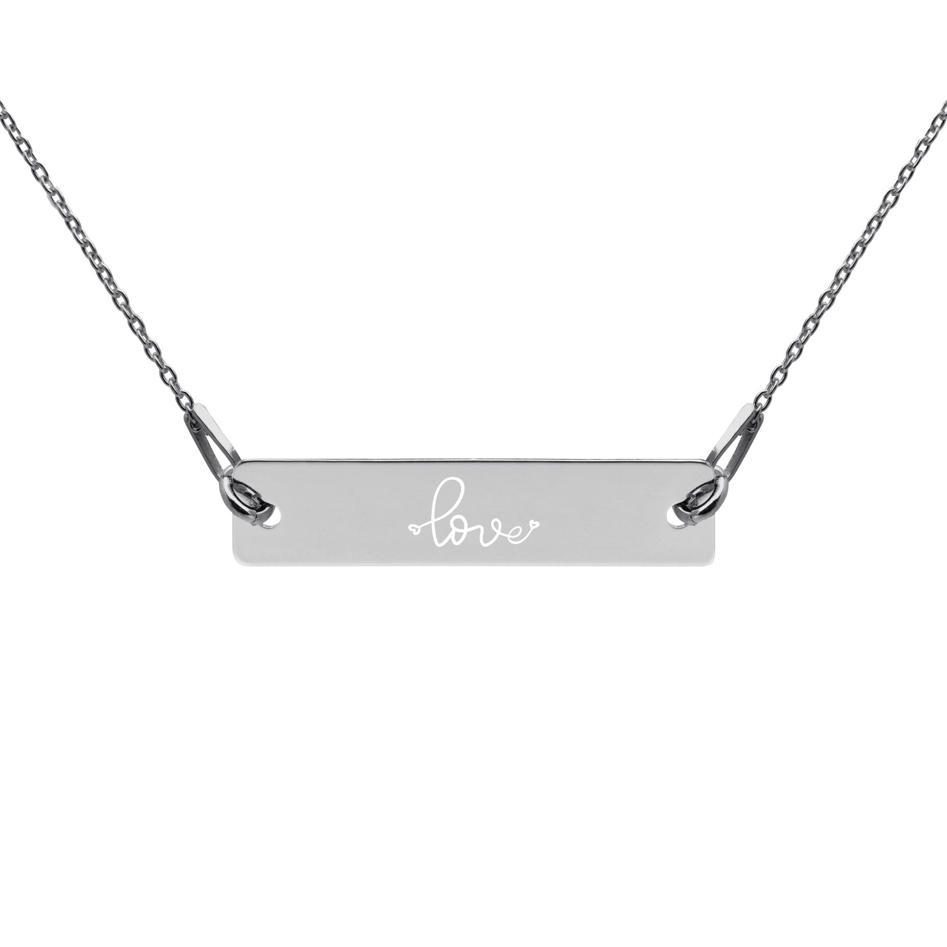 LOVE WITH MINI HEART Engraved Silver Bar Chain Necklace