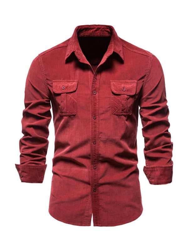 Men's corduroy slim-fit casual long-sleeve shirt