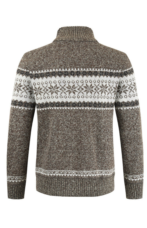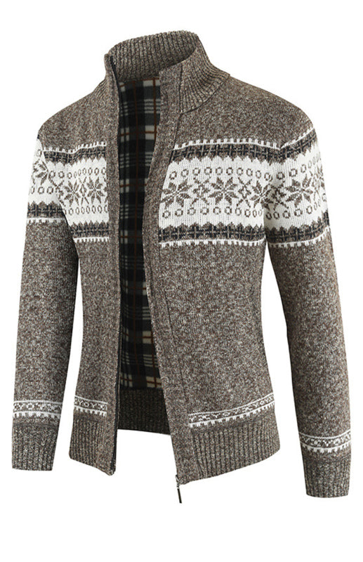 Men's New Sweater Cardigan Colorblock Standing Collar Sweater