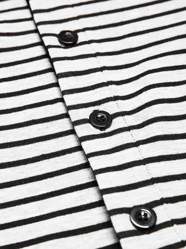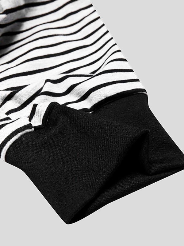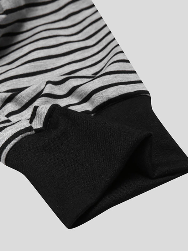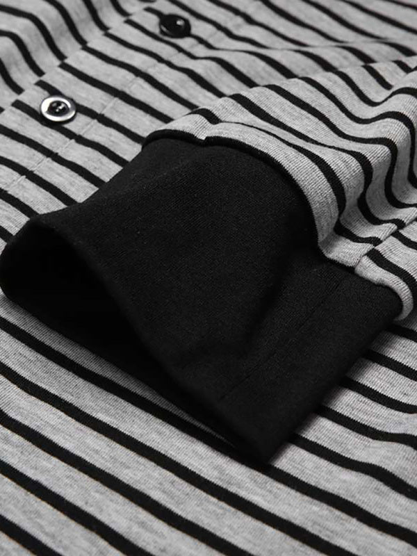Men's Slim Striped Print Crew Neck Button Long Sleeve Trousers One Piece Pajama