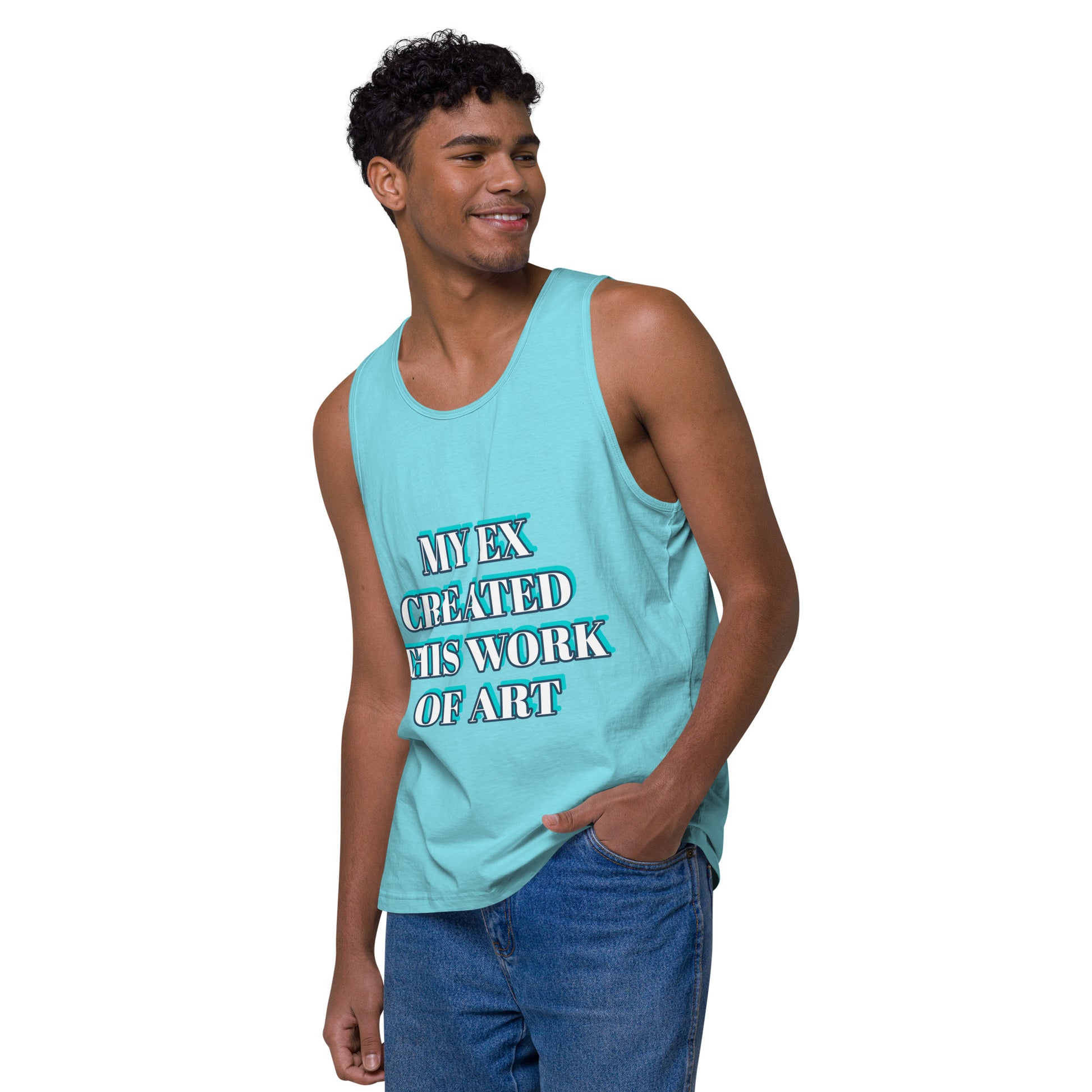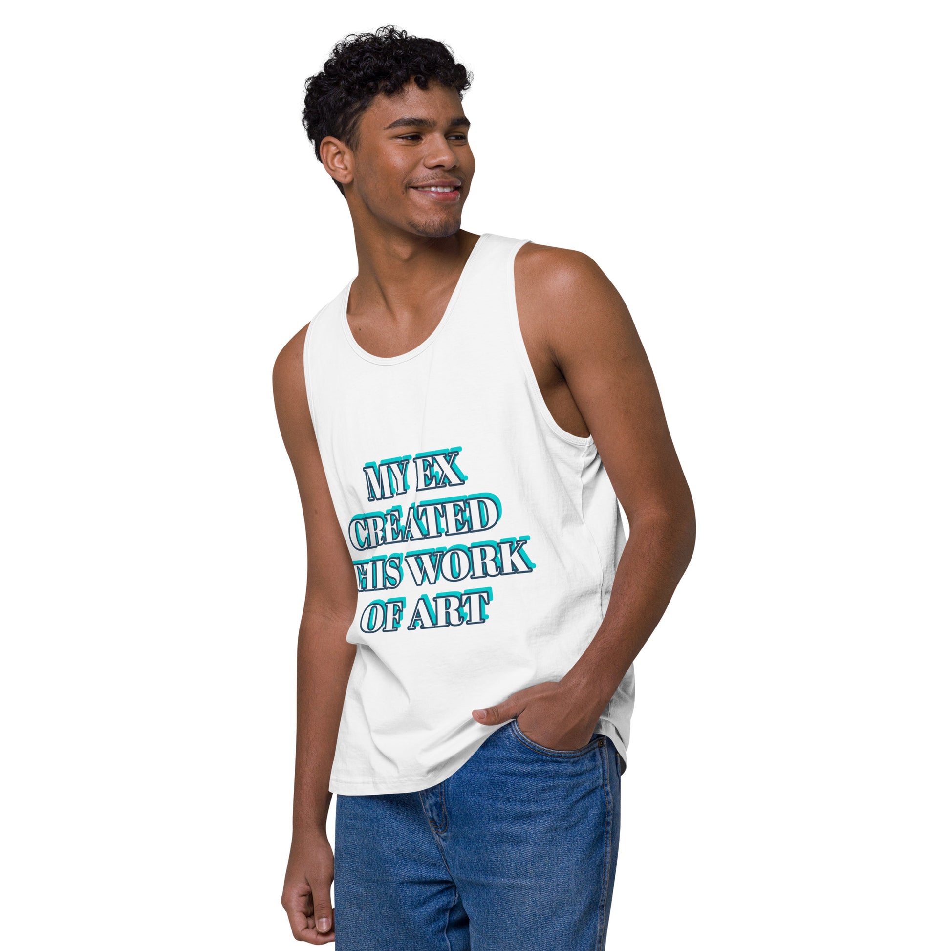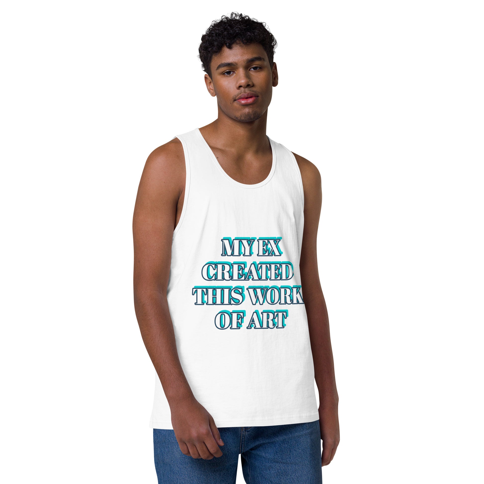 MY EX CREATED THIS PIECE OF ART - WHITE OR BABY BLUE Men’s premium tank top