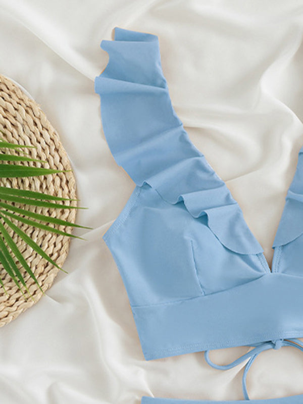 New women's lace V-neck ruffled high-waist split swimsuit bikini