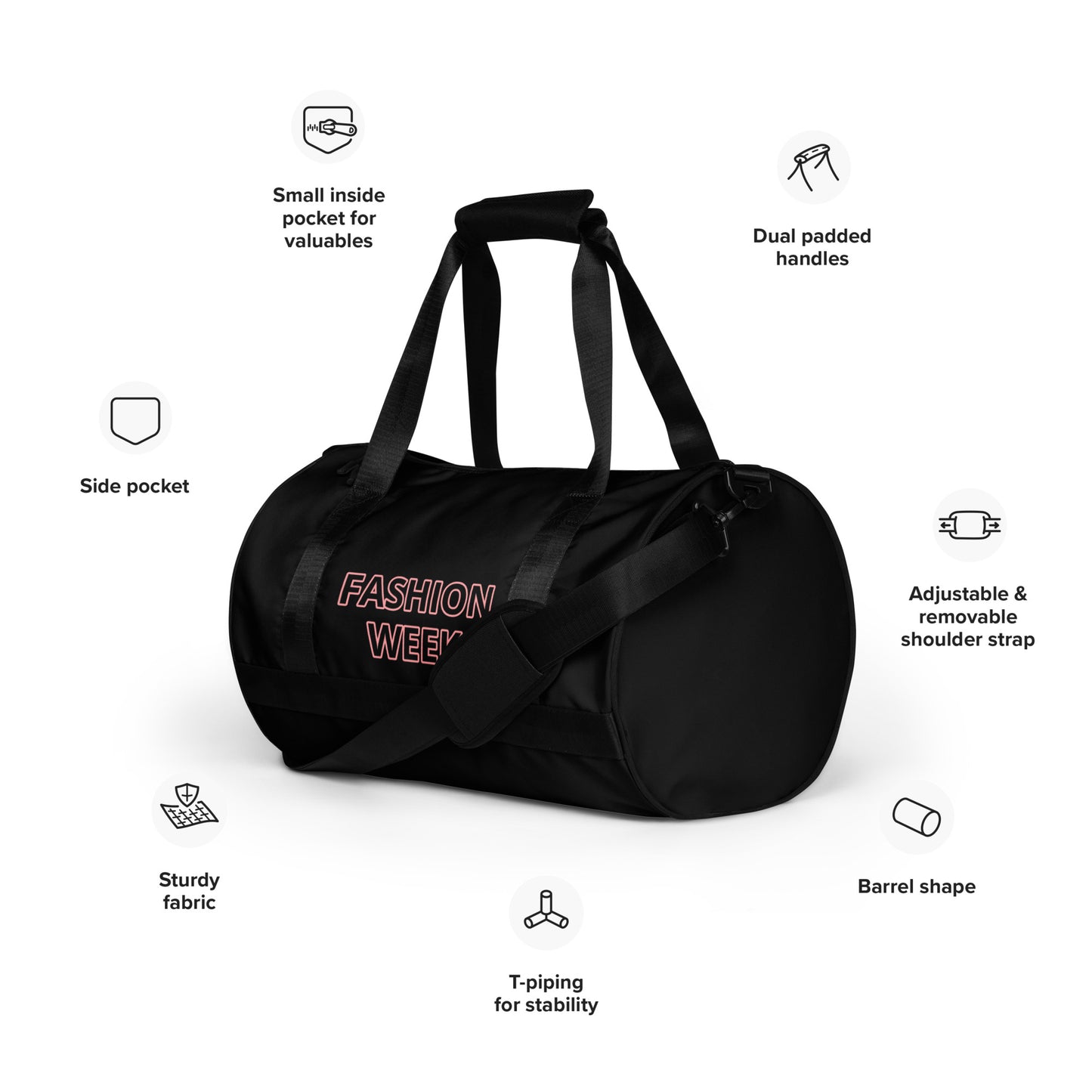 Ready to get your fitness on? Add some punch to pumping iron with this all-over print gym bag. Made from 100% polyester and sturdy, water-resistant fabric, this bag is fun meets function. And it’s got pockets!