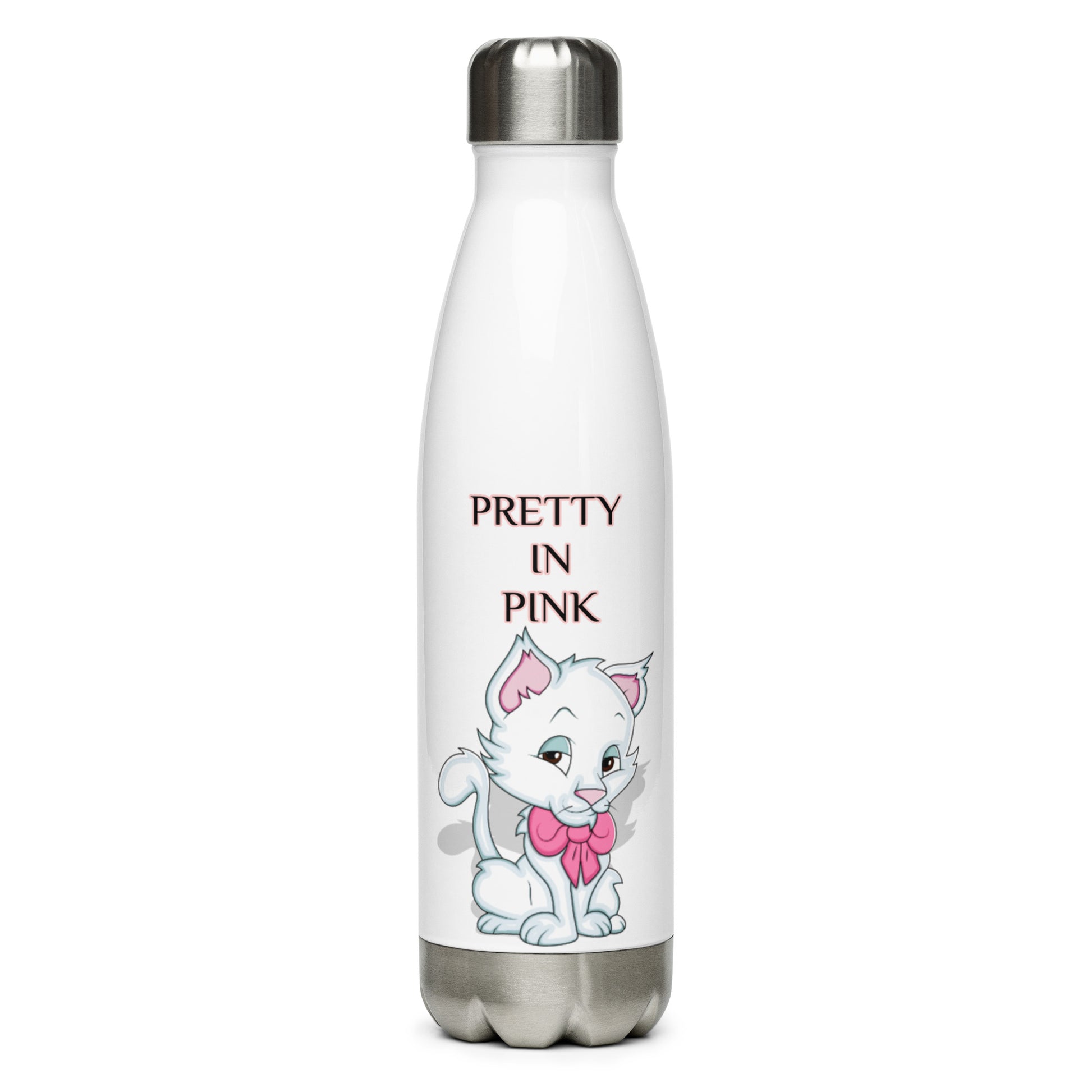 PRETTY IN PINK KITTEN WITH PINK BOW Stainless Steel Water Bottle