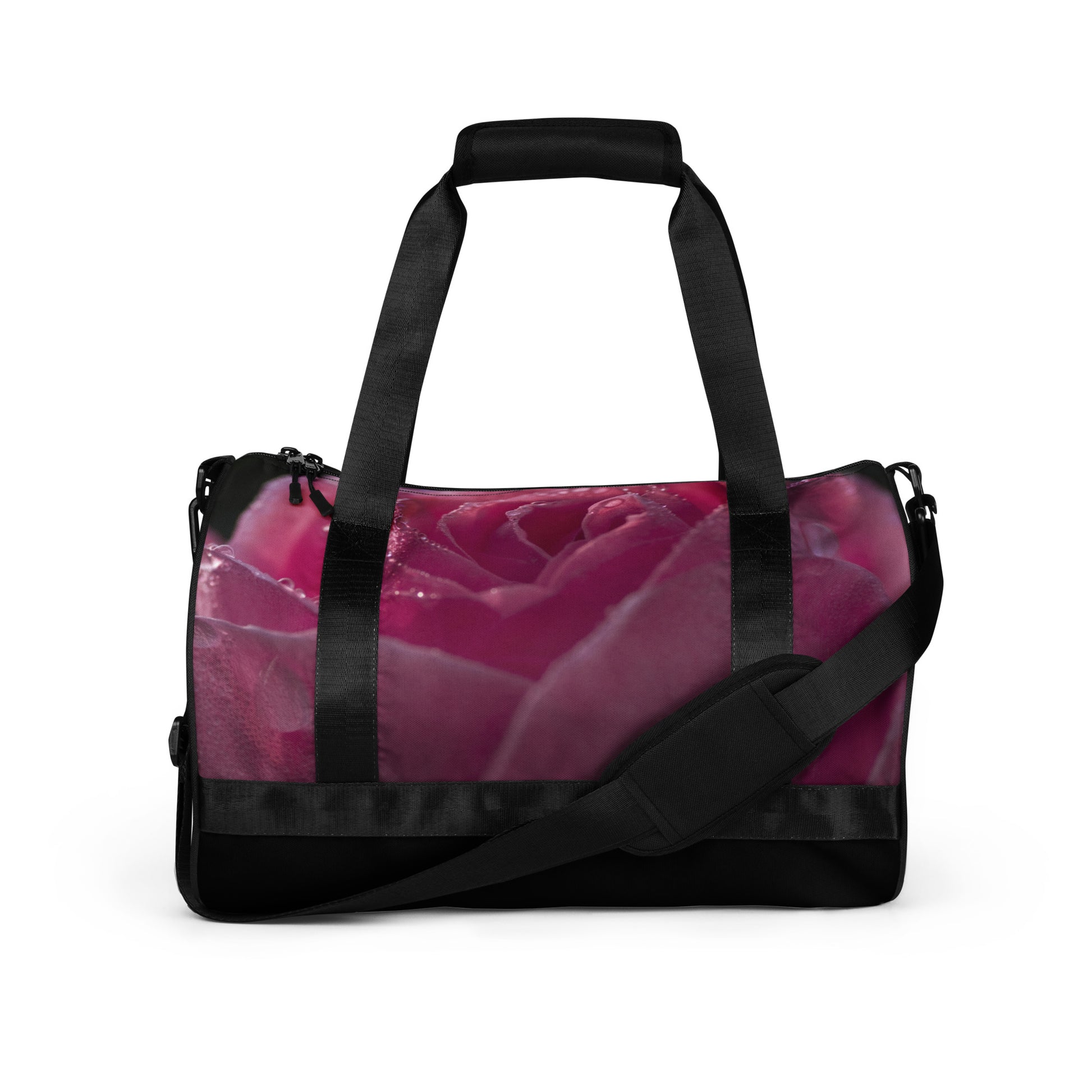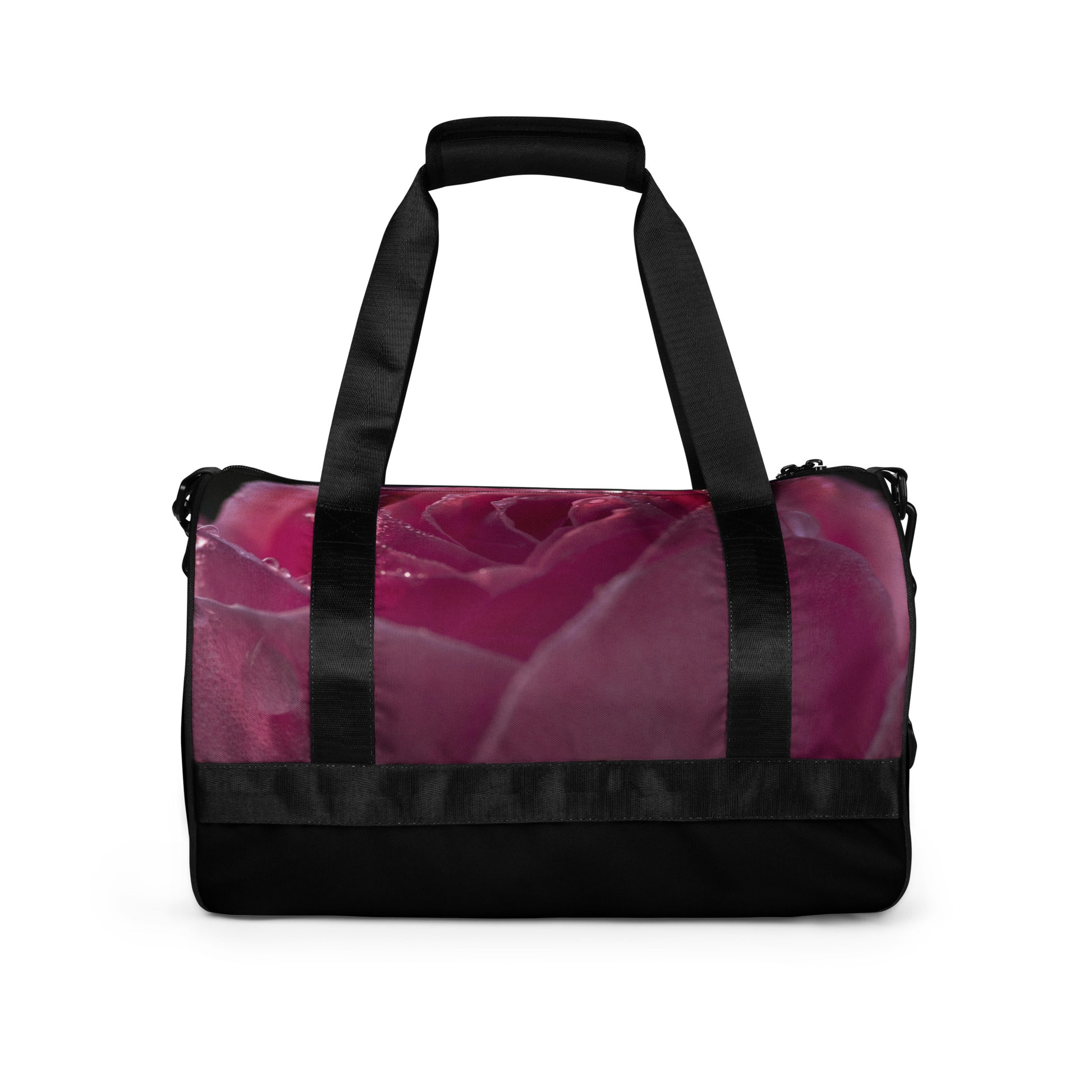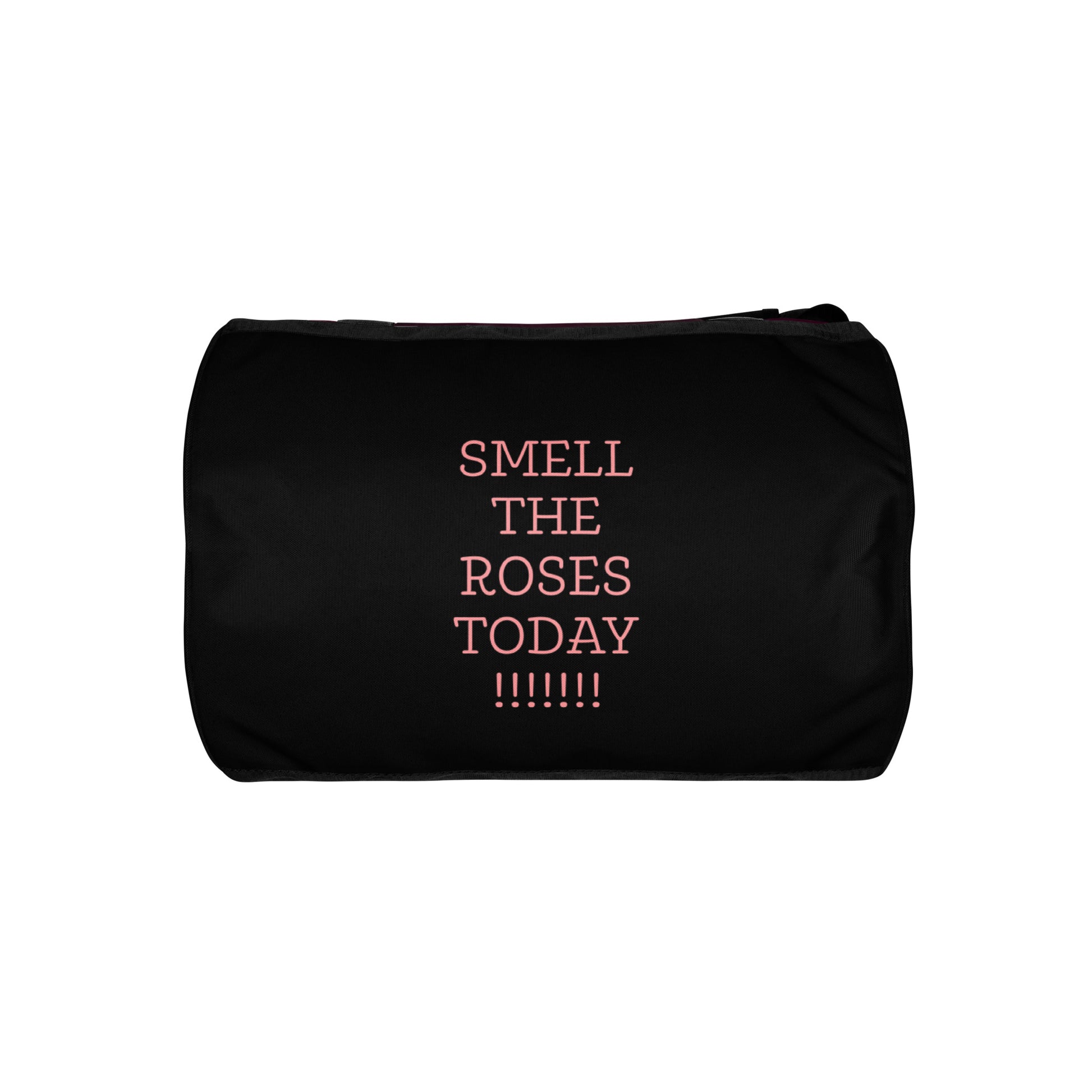 ROSE-All-over print gym bag--ON THE BOTTOM OF BAG IT SAYS STOP AND SMELL THE ROSES!