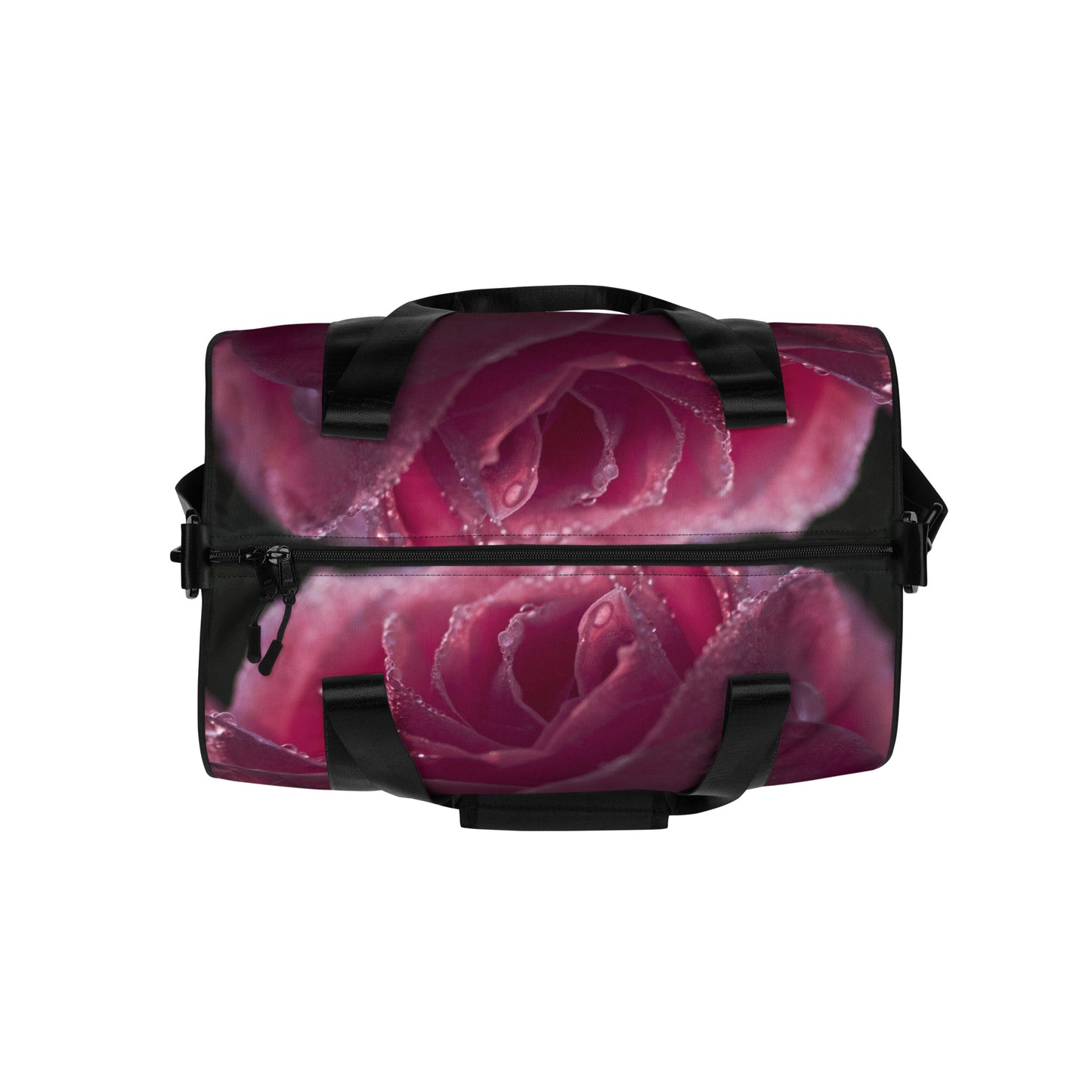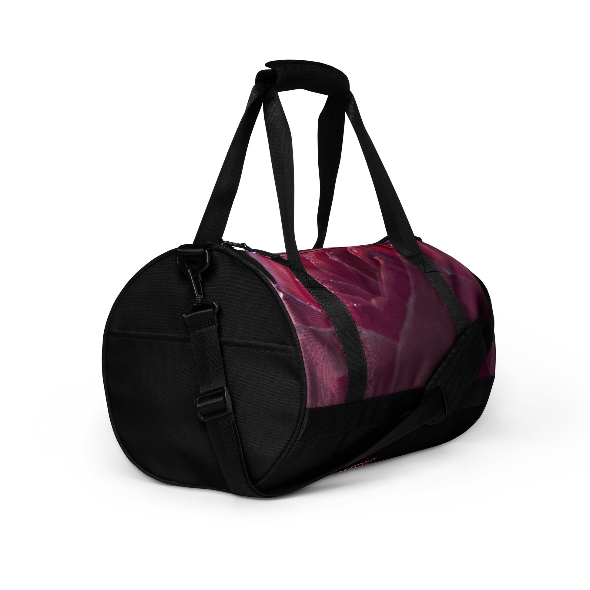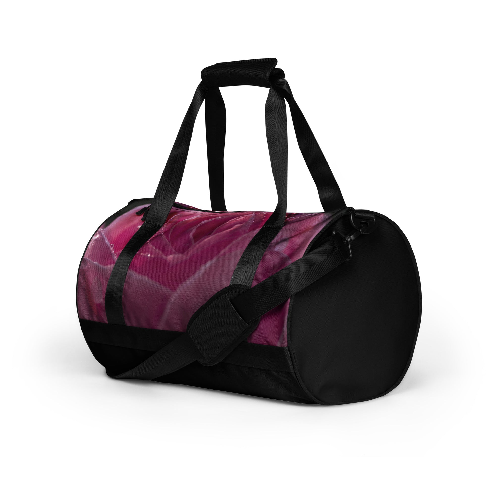 ROSE-All-over print gym bag--ON THE BOTTOM OF BAG IT SAYS STOP AND SMELL THE ROSES!