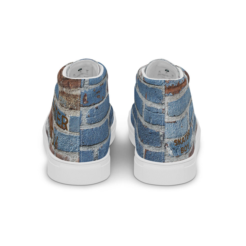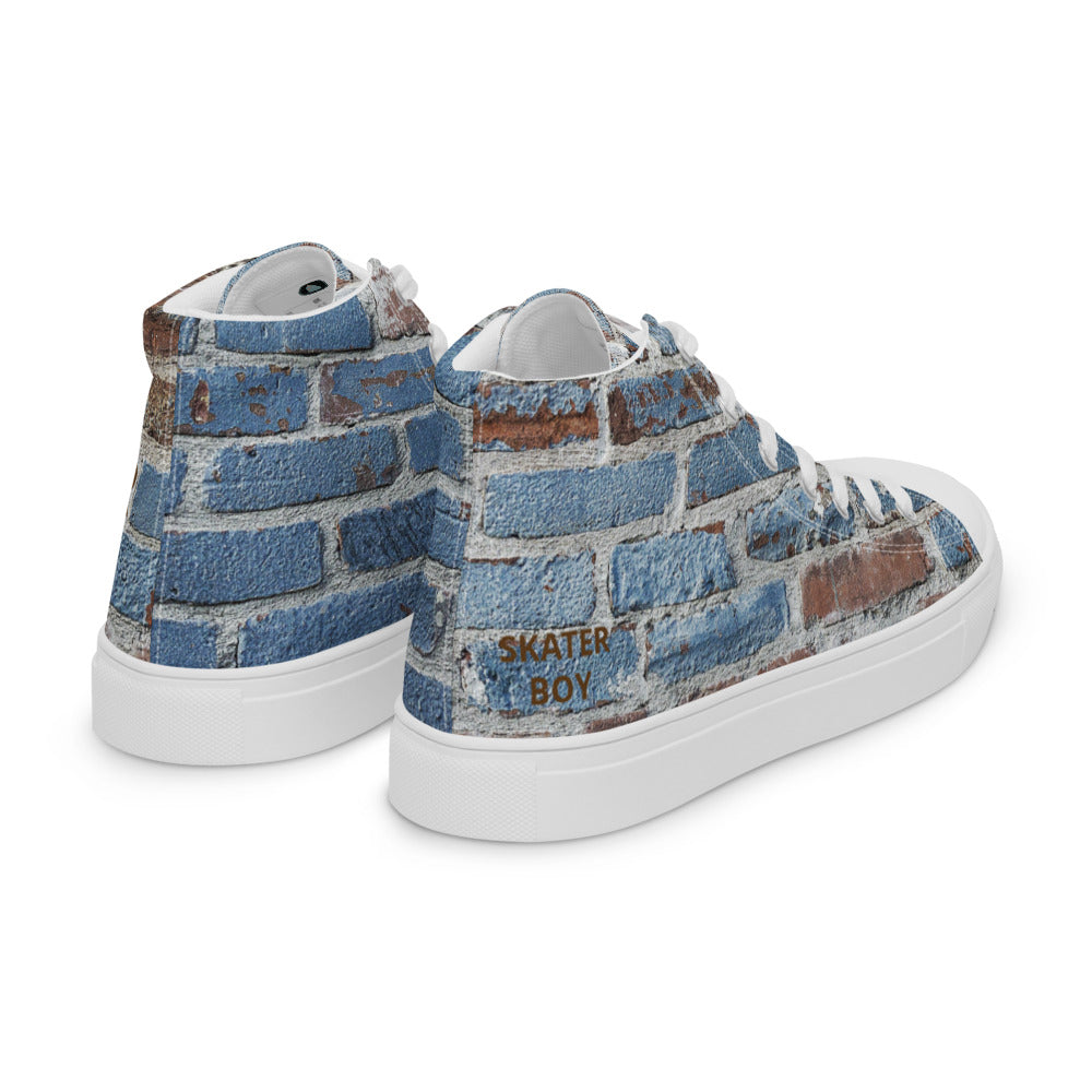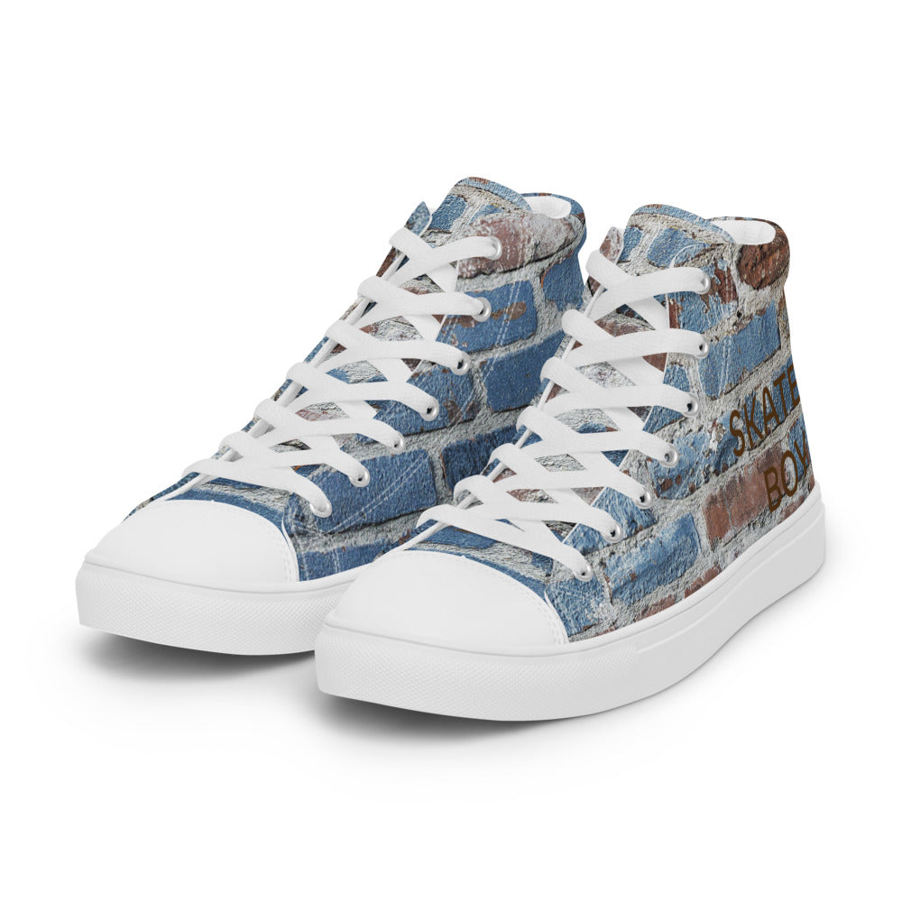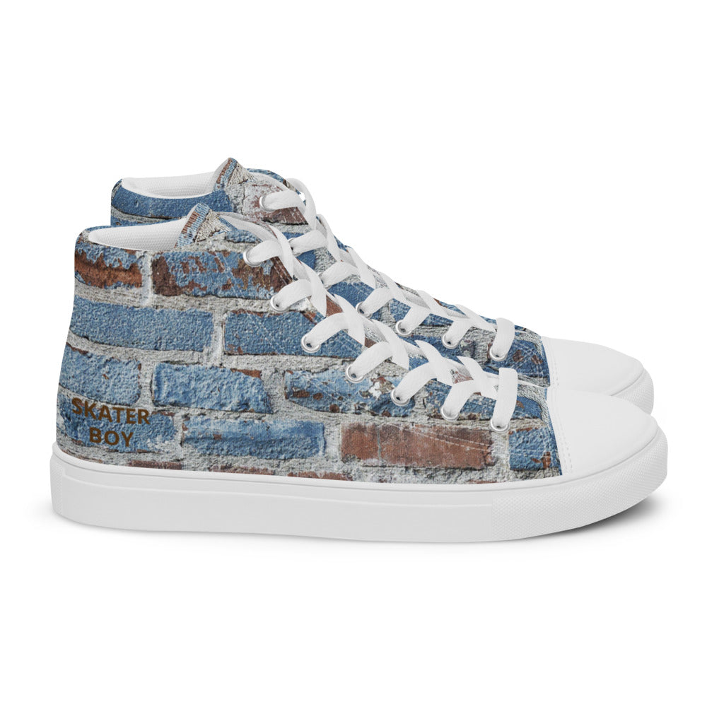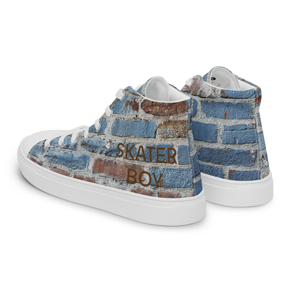 SKATER BOY-Men’s high top canvas shoes- SKATER BOY SHOWN IN LARGE ON ONE FOOT AND SKATER BOY SHOWING SMALL ON OTHER FOOT ON PURPOSE FOR THIS DESIGN :)