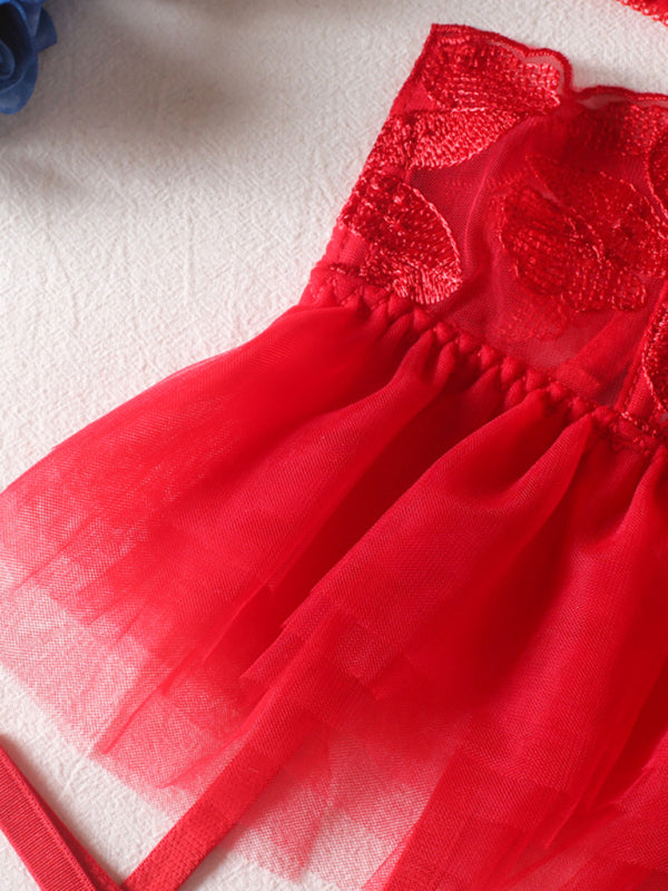 Small skirt embroidered bra garter belt three-piece sexy underwear