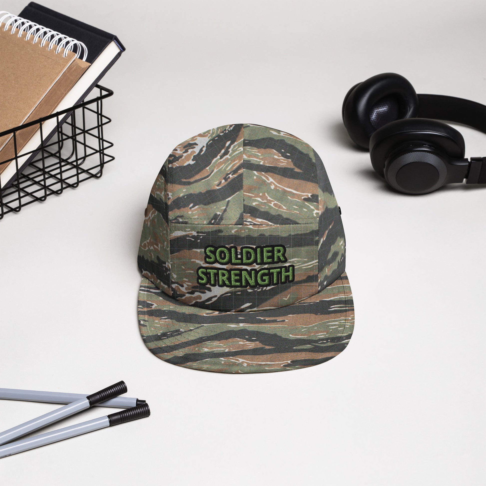 SOLDIER STRENGTH IN BLACK OR IN CAMO PRINT Five Panel Cap