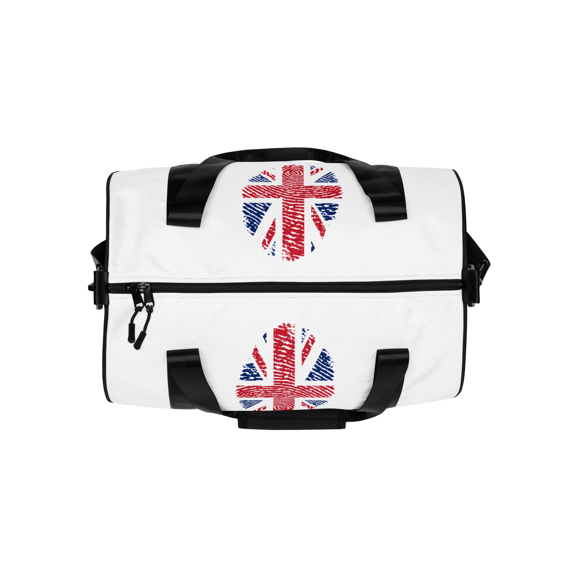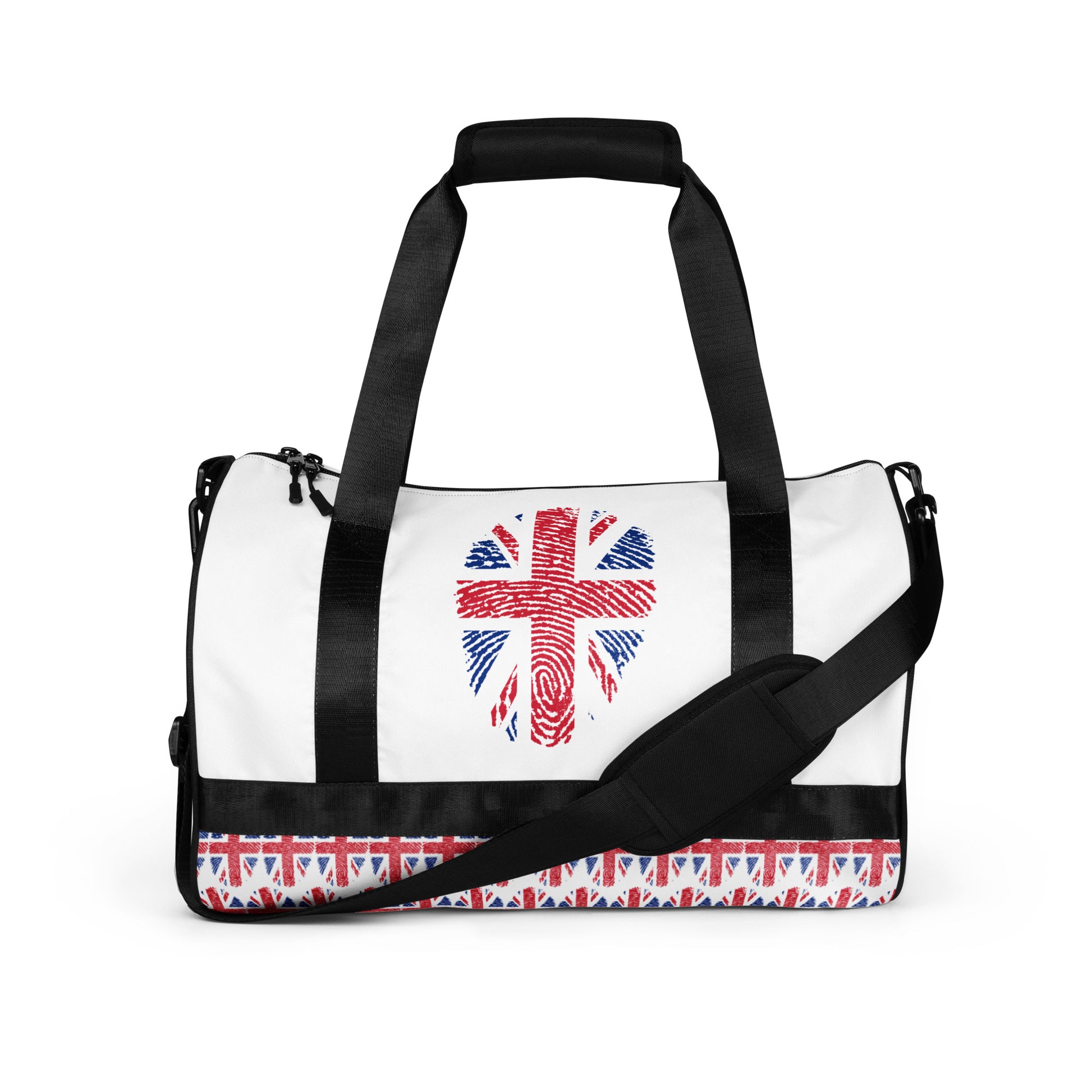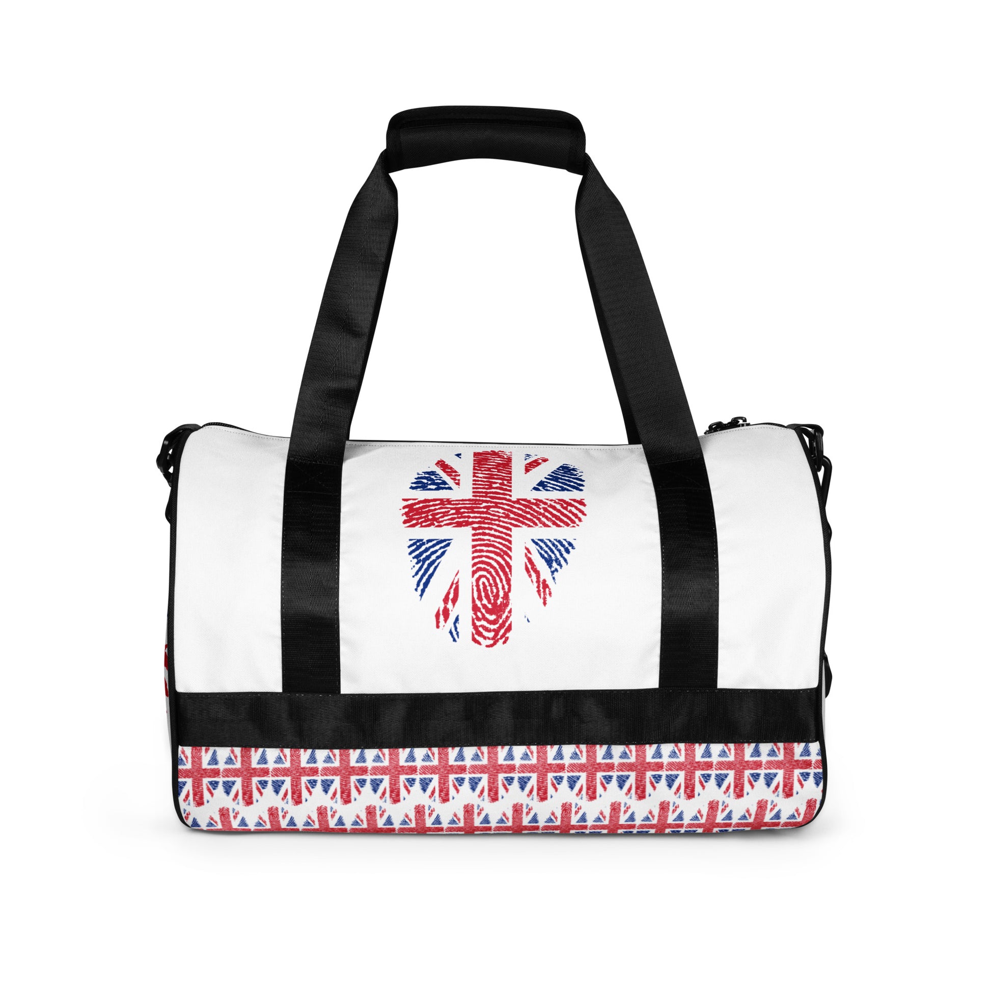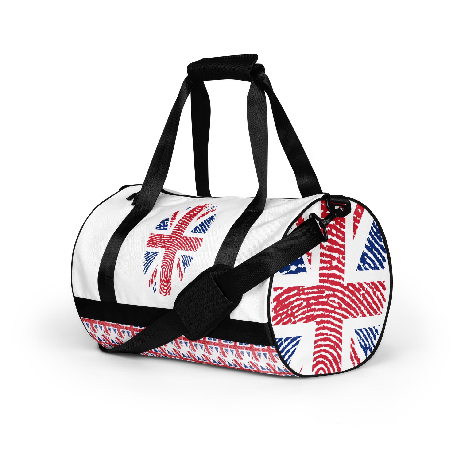 Ready to get your fitness on? Add some punch to pumping iron with this all-over print gym bag. Made from 100% polyester and sturdy, water-resistant fabric, this bag is fun meets function. And it’s got pockets!