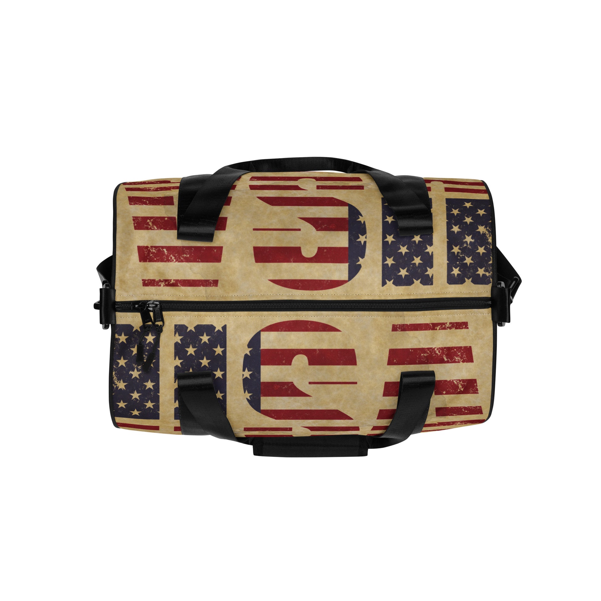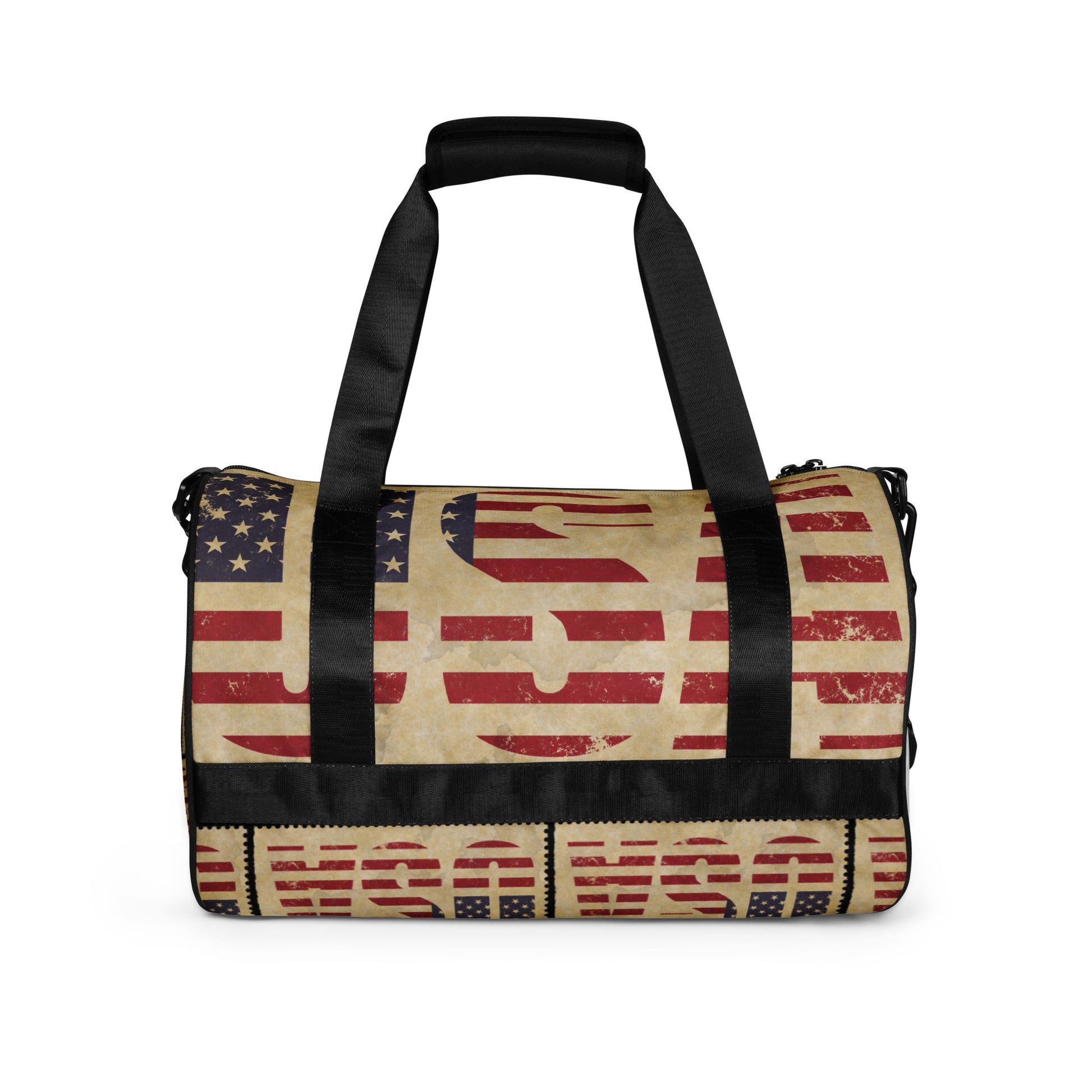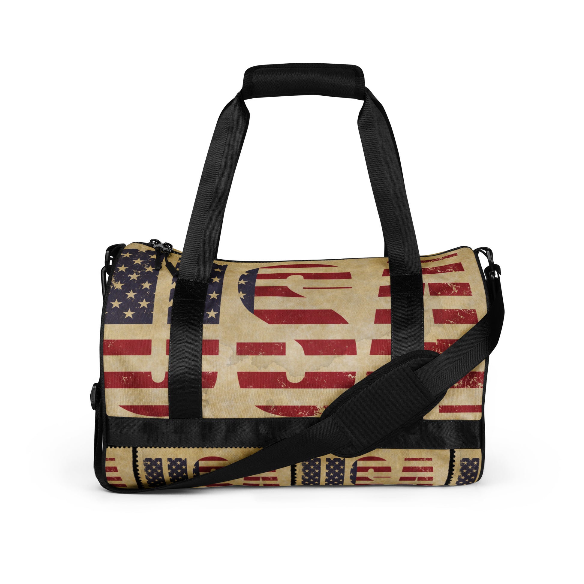 Ready to get your fitness on? Add some punch to pumping iron with this all-over print gym bag. Made from 100% polyester and sturdy, water-resistant fabric, this bag is fun meets function. And it’s got pockets!