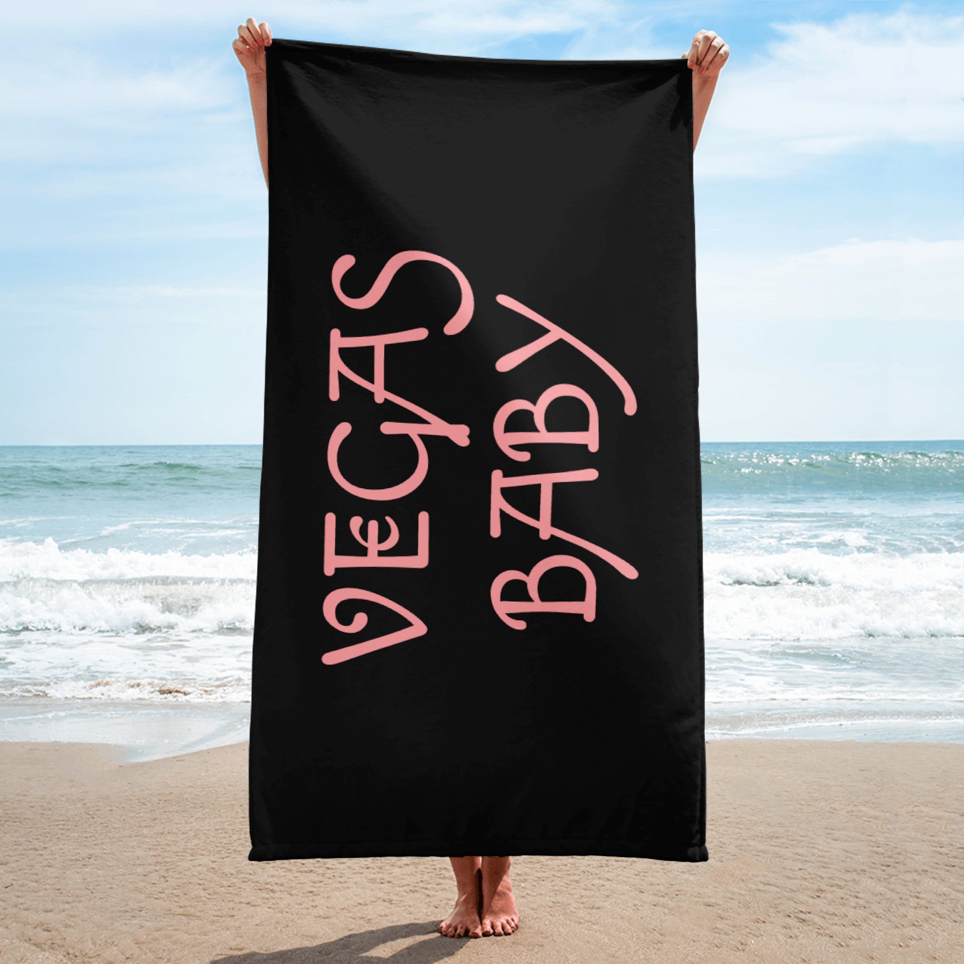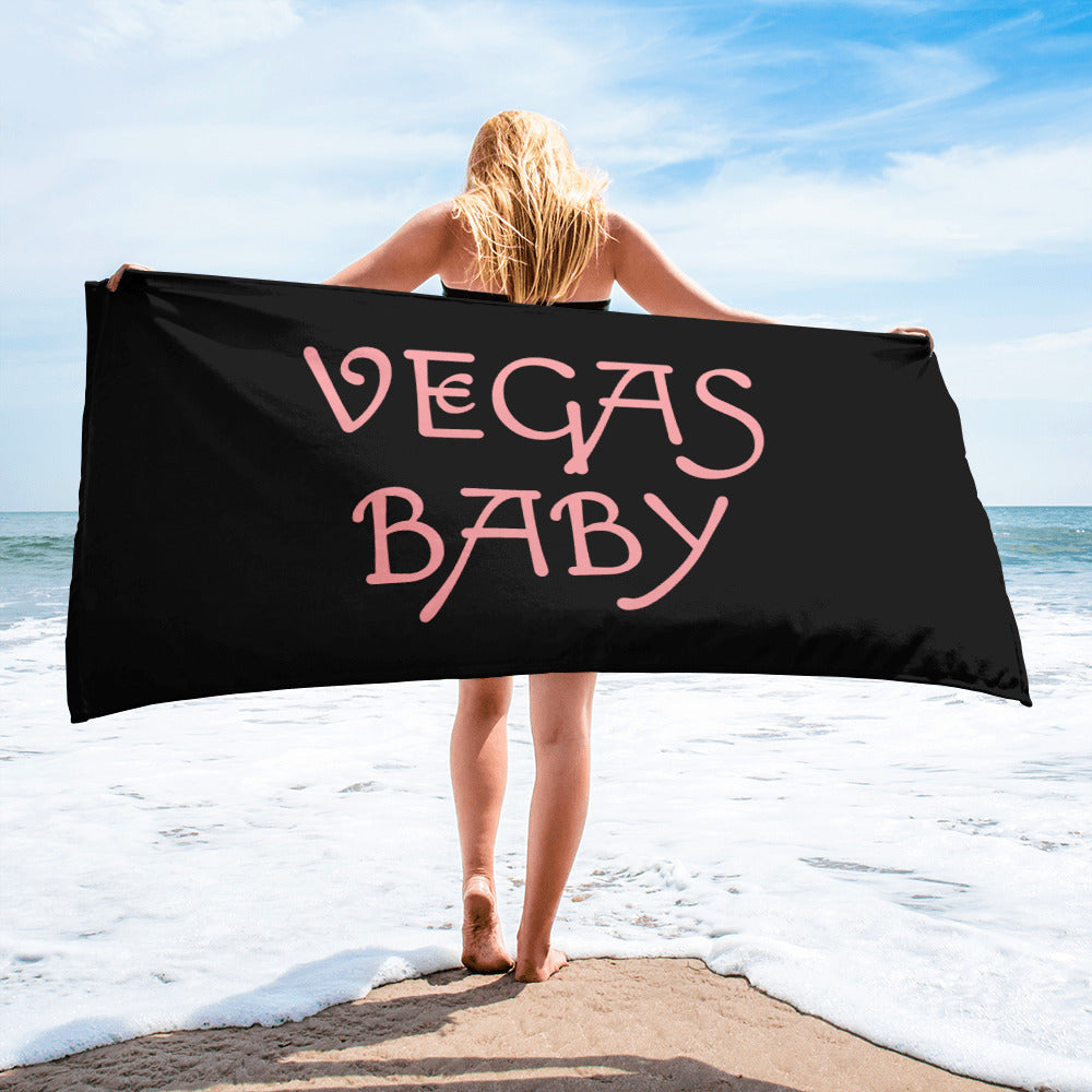 VEGAS BABY IN PINK WRITING AND BLACK Towel