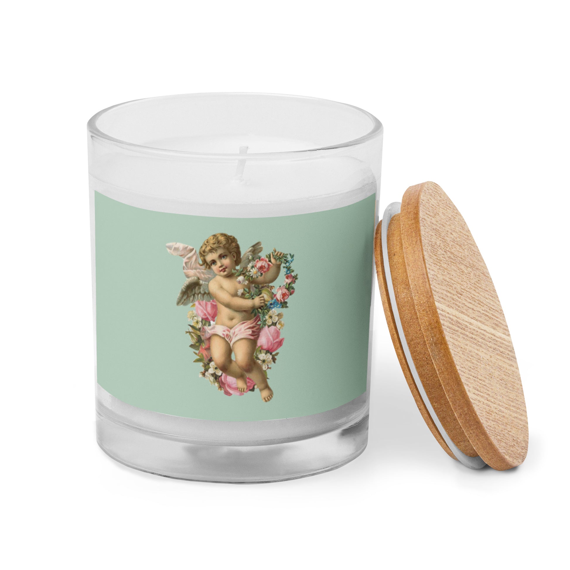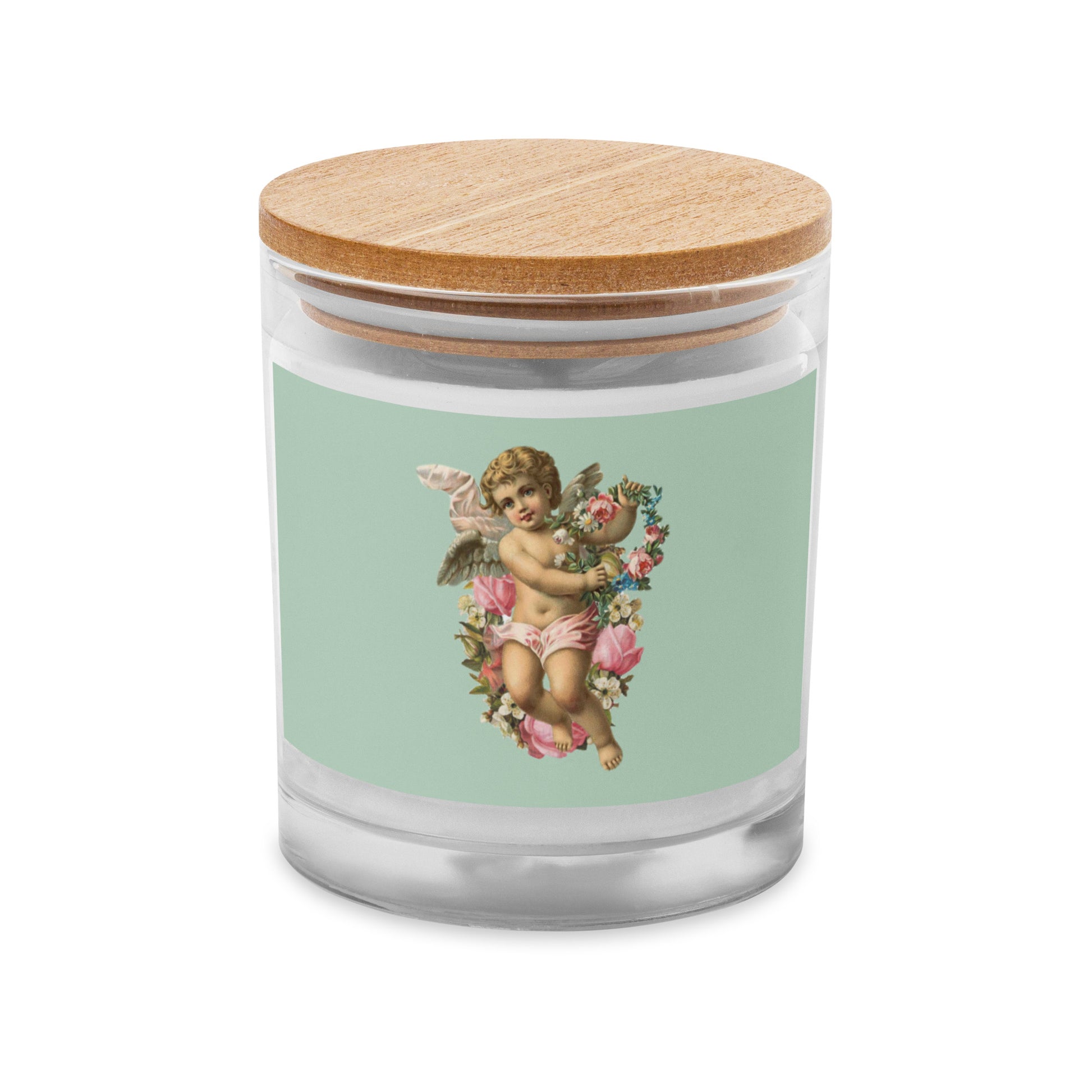 VINTAGE ANGEL WITH A BACKGROUND OF SAGE Glass jar candle